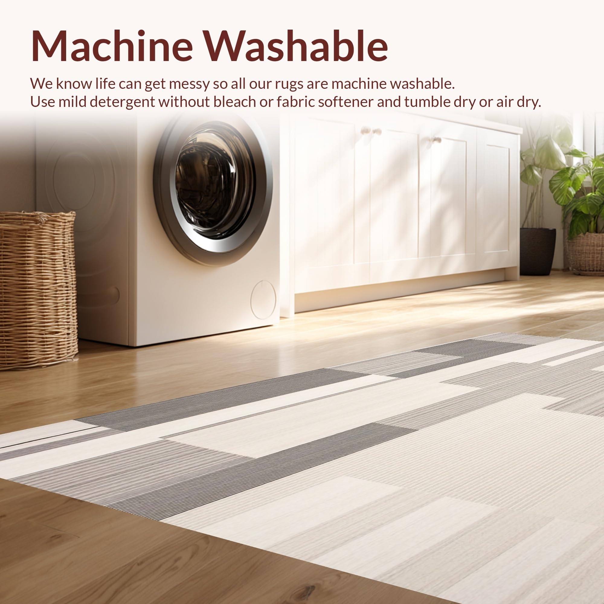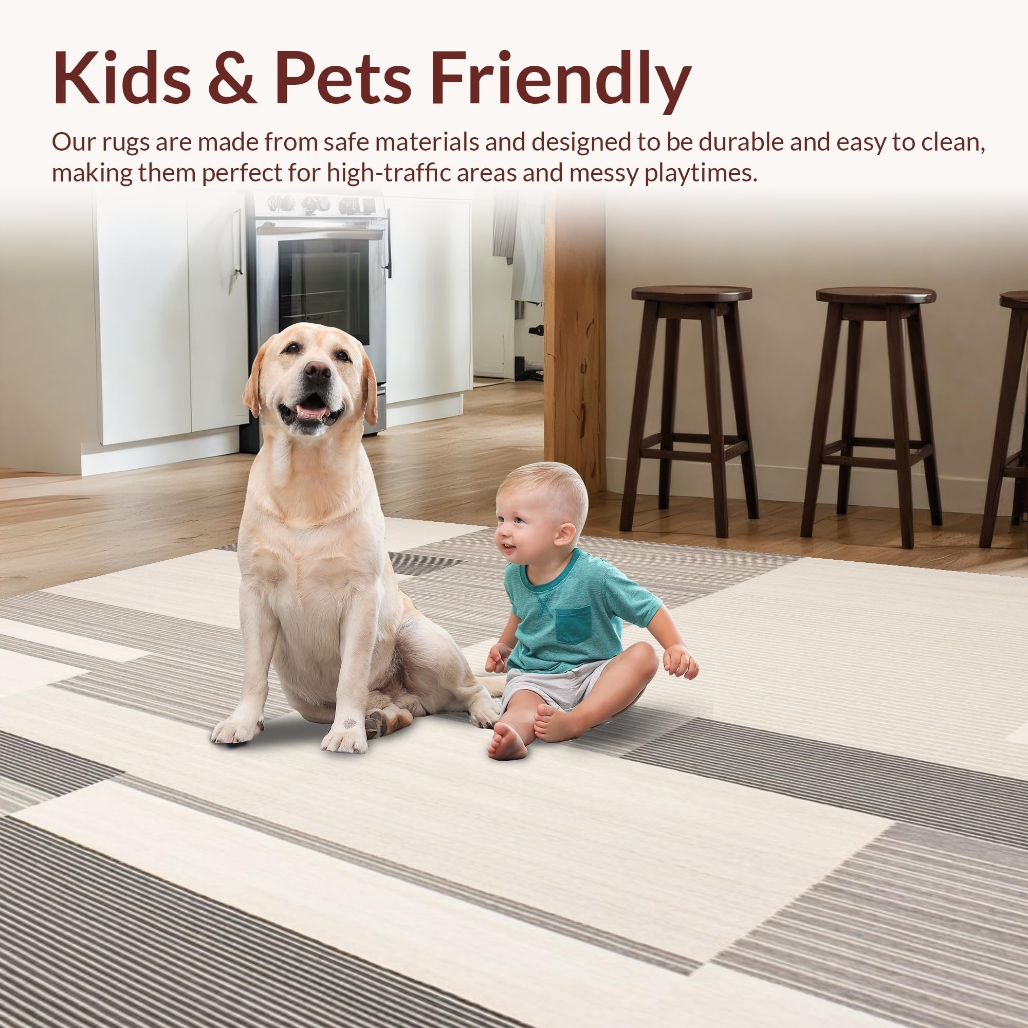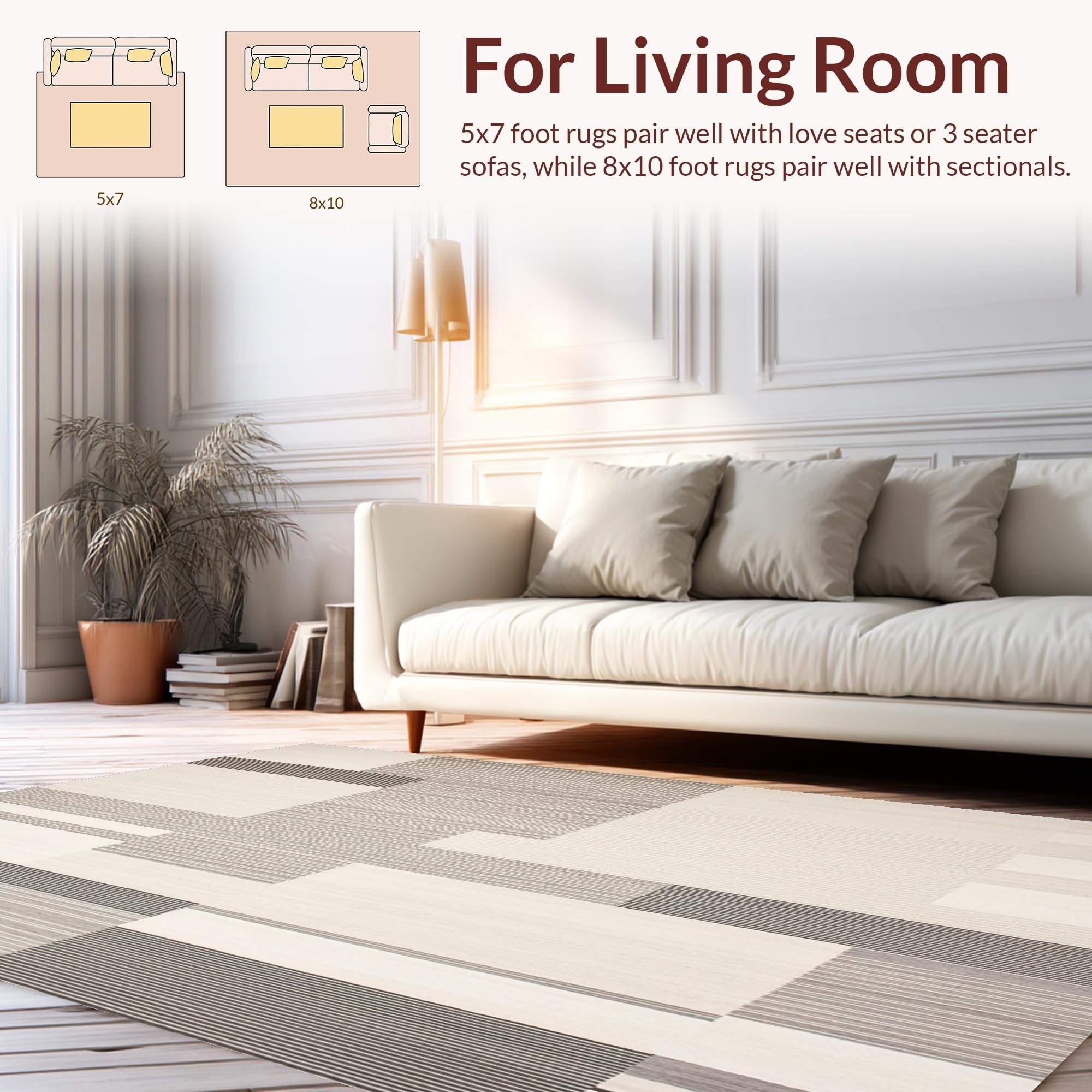 Ultra Soft Area Rug, Non Slip, Stain Resistant, Washable Area Rugs for Living Room, Bedroom, Modern Geometric Beige Linear Art(Gray) Overview: