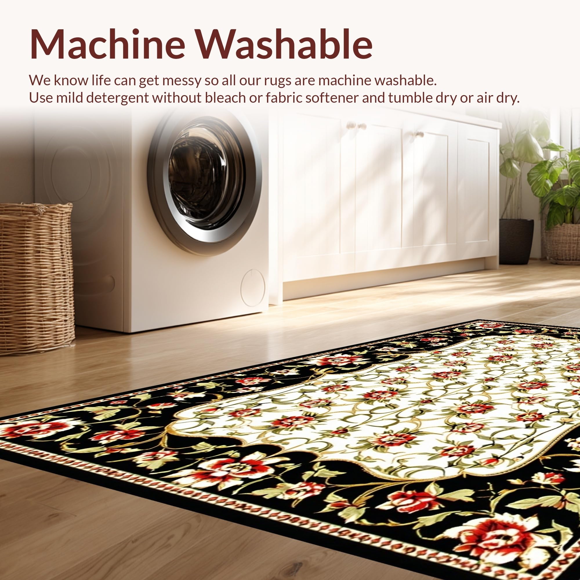 - Machine Washable: Our rugs can be easily thrown in the wash machine.