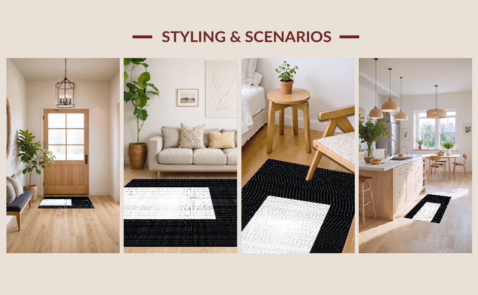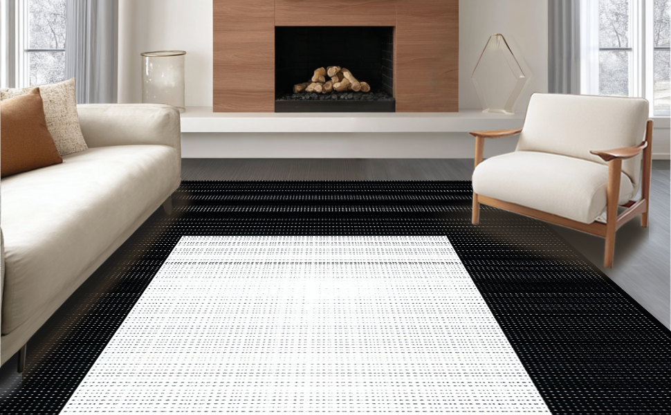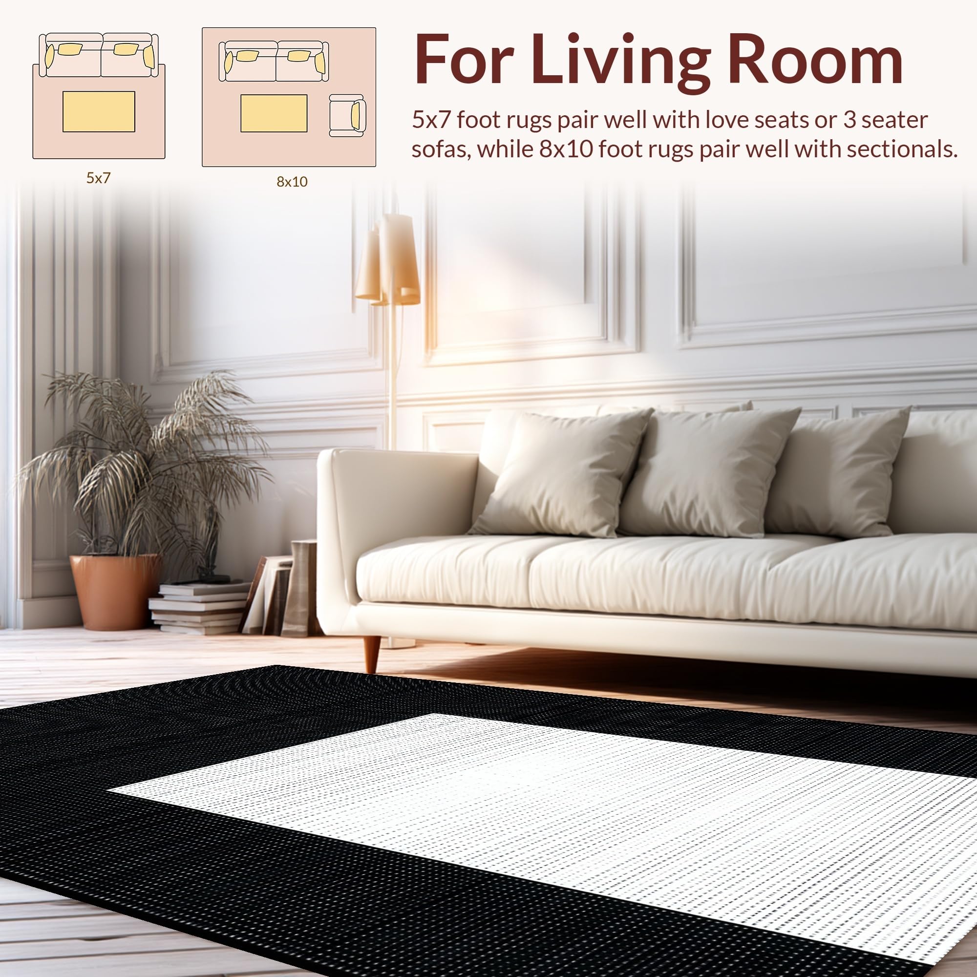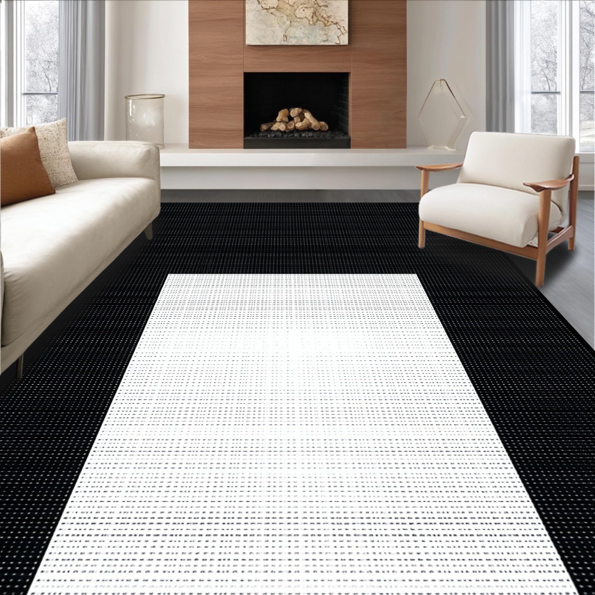 Ultra Soft Area Rug, Non Slip, Stain Resistant, Washable Area Rugs for Living Room, Bedroom, Modern Geometric Black Cream(Black) Overview:
