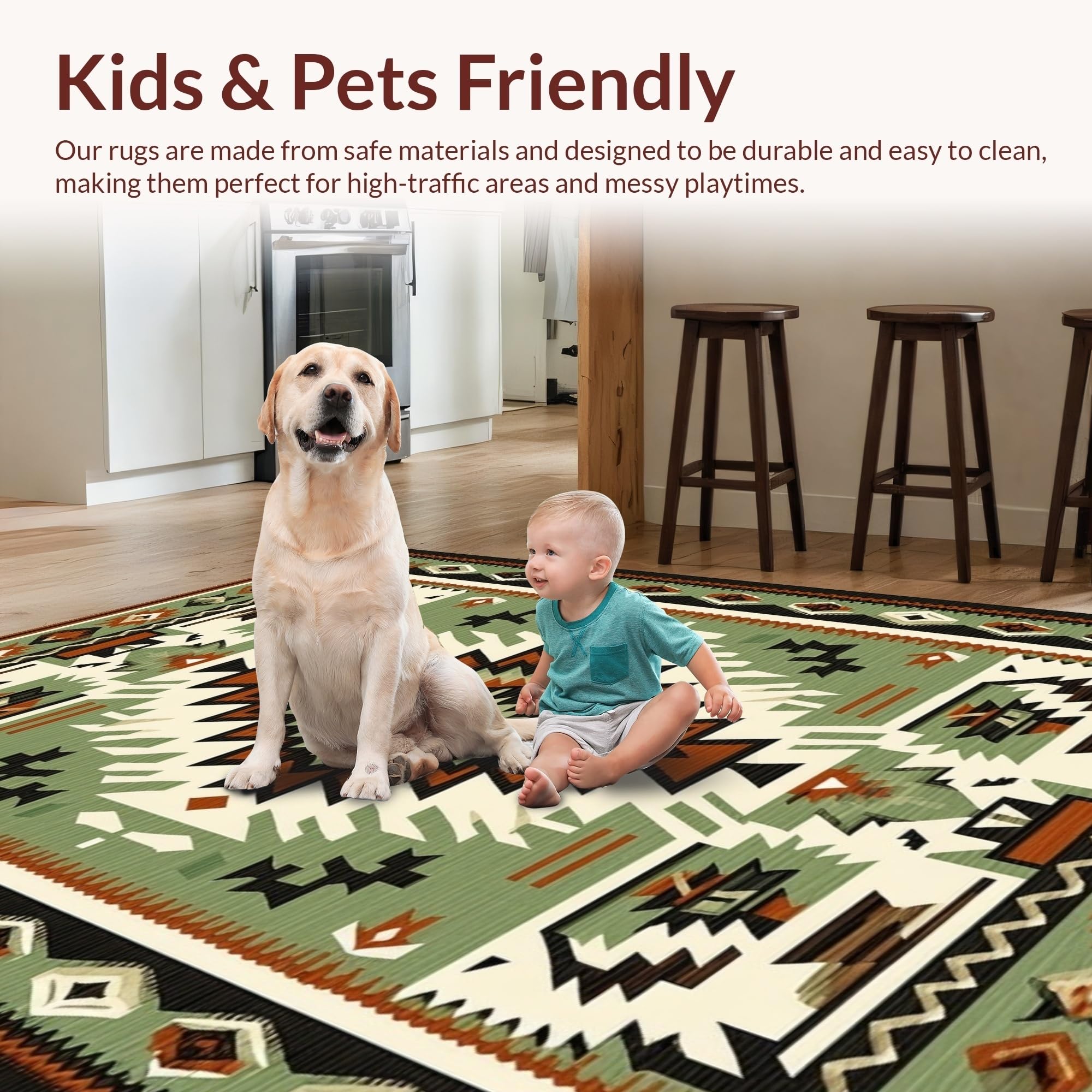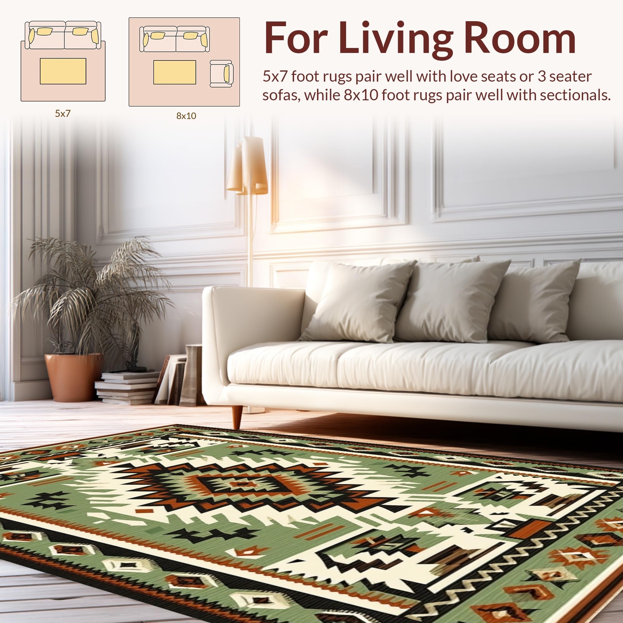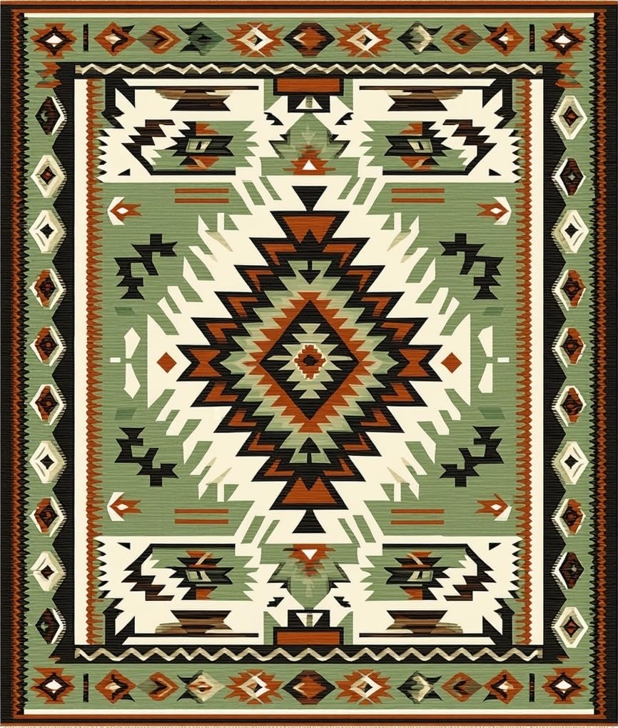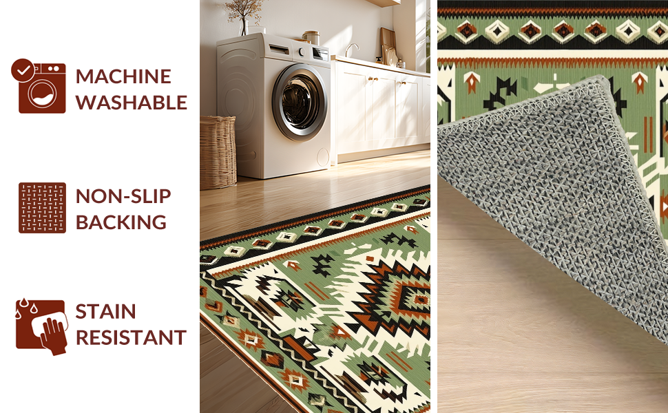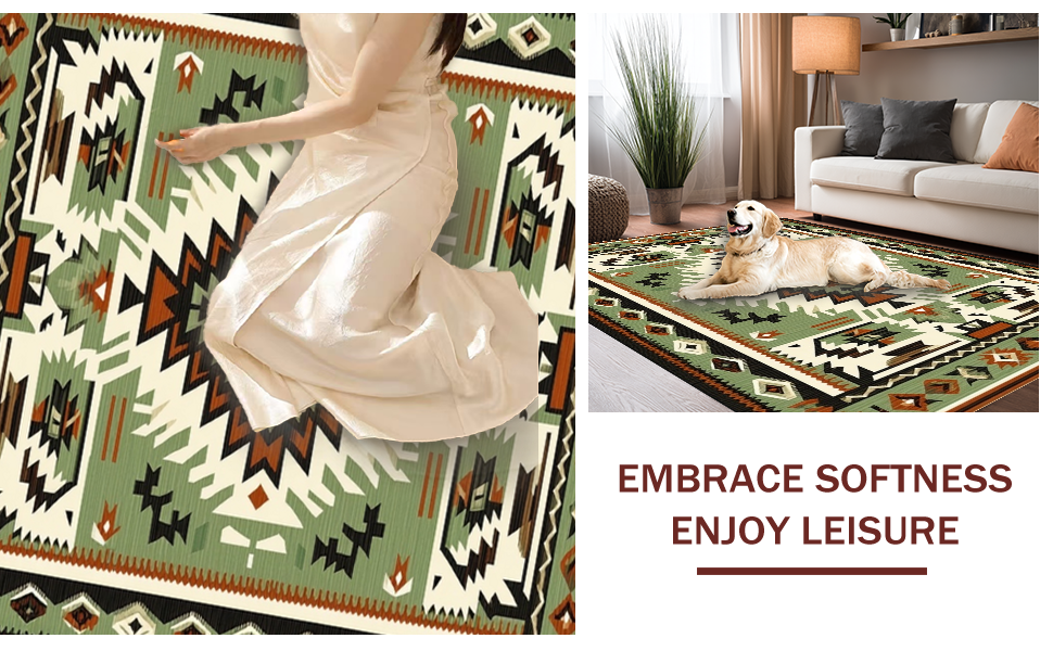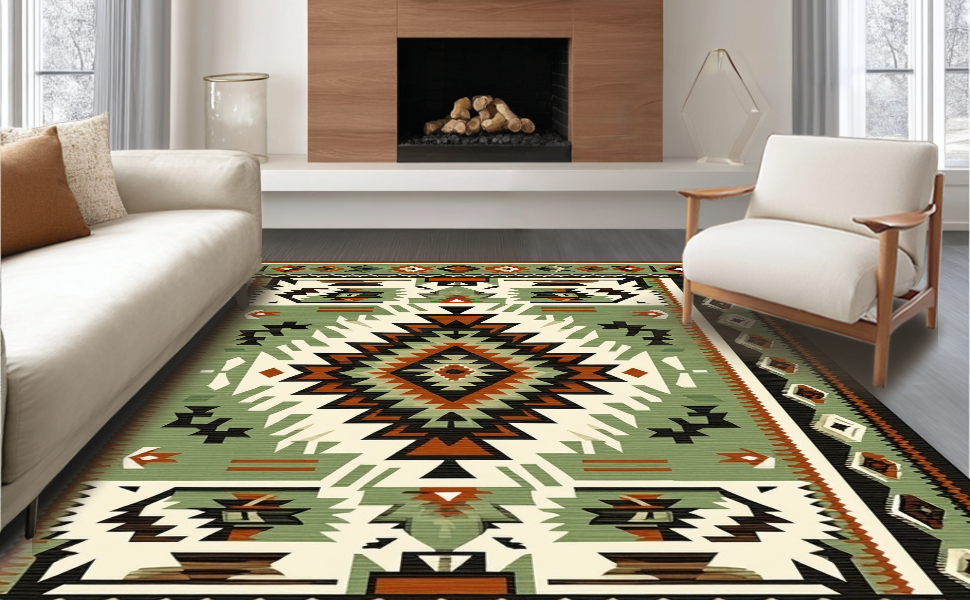 Ultra Soft Area Rug, Non Slip, Stain Resistant, Washable Area Rugs for Living Room, Bedroom, Modern Geometric Cultural Fusion(Green) Overview:
