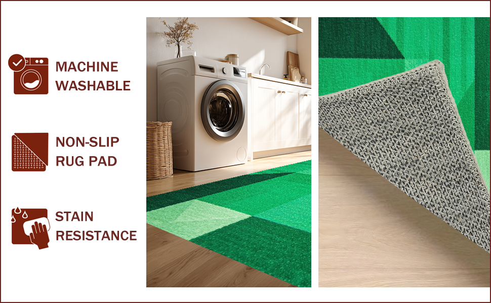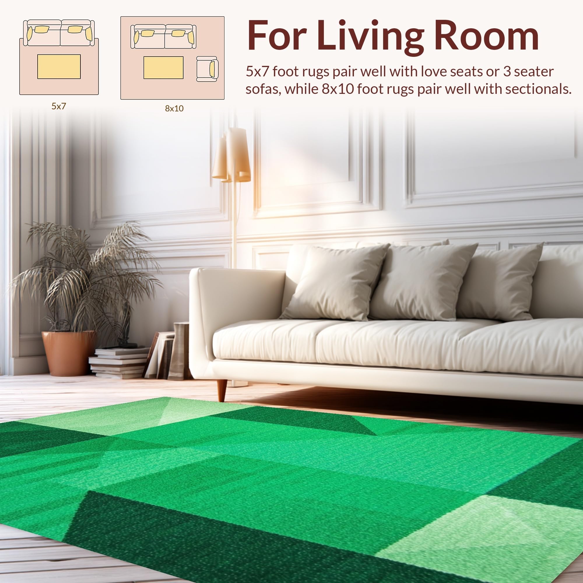 Ultra Soft Area Rug, Non Slip, Stain Resistant, Washable Area Rugs for Living Room, Bedroom, Modern Geometric Green Living Room Non-Slip Rug(Green) Overview: