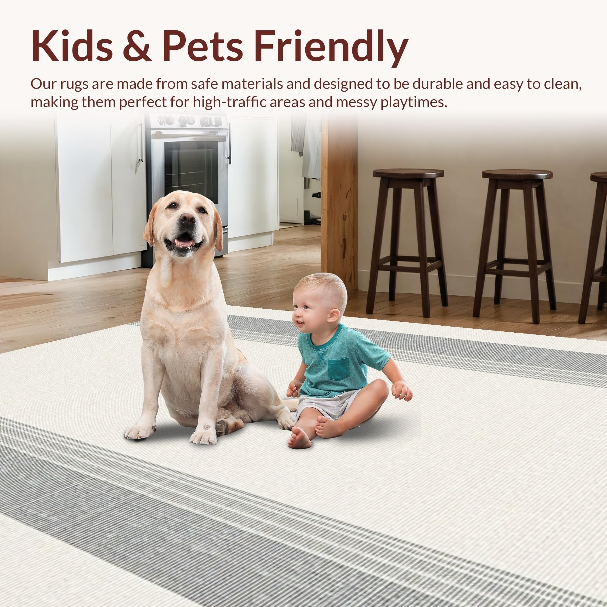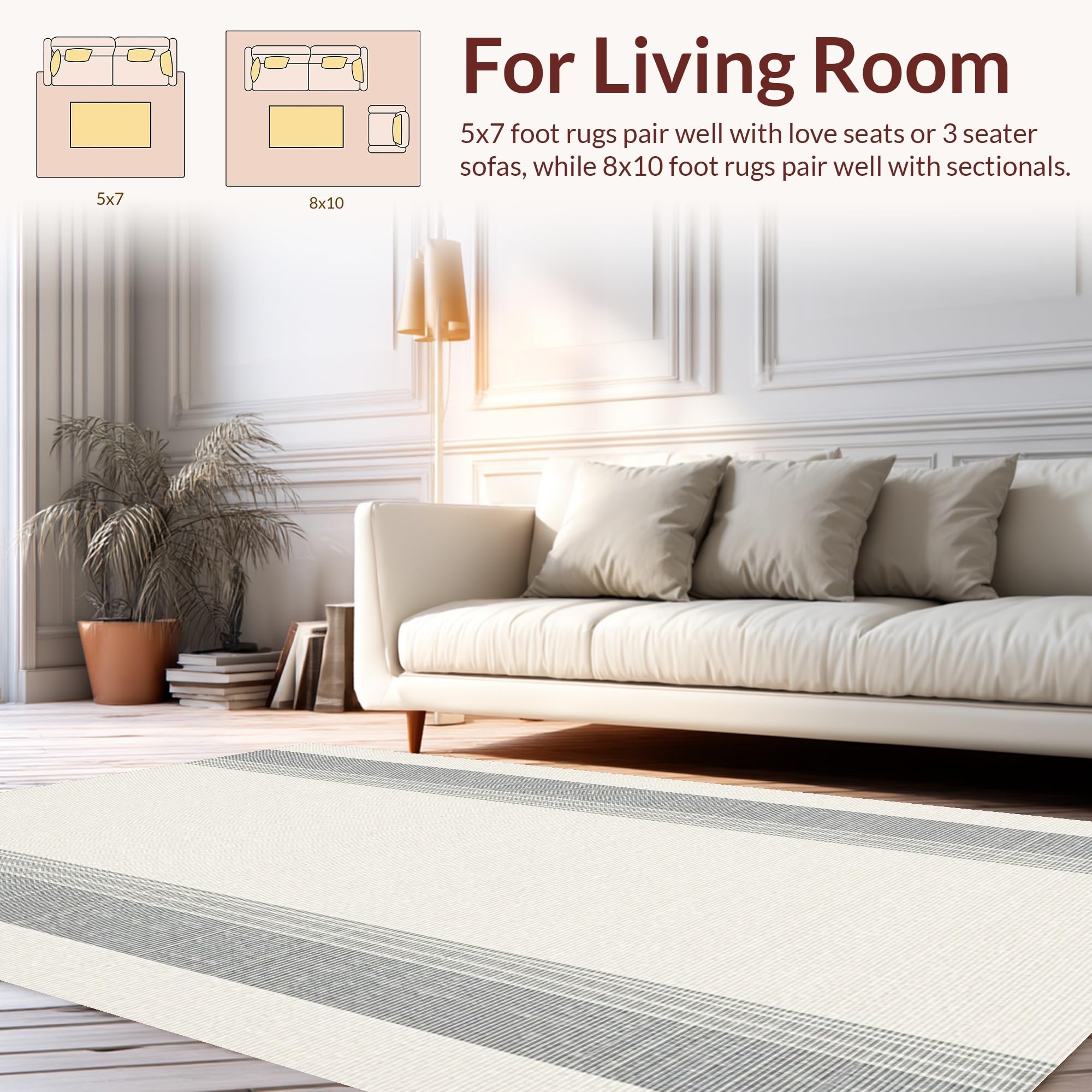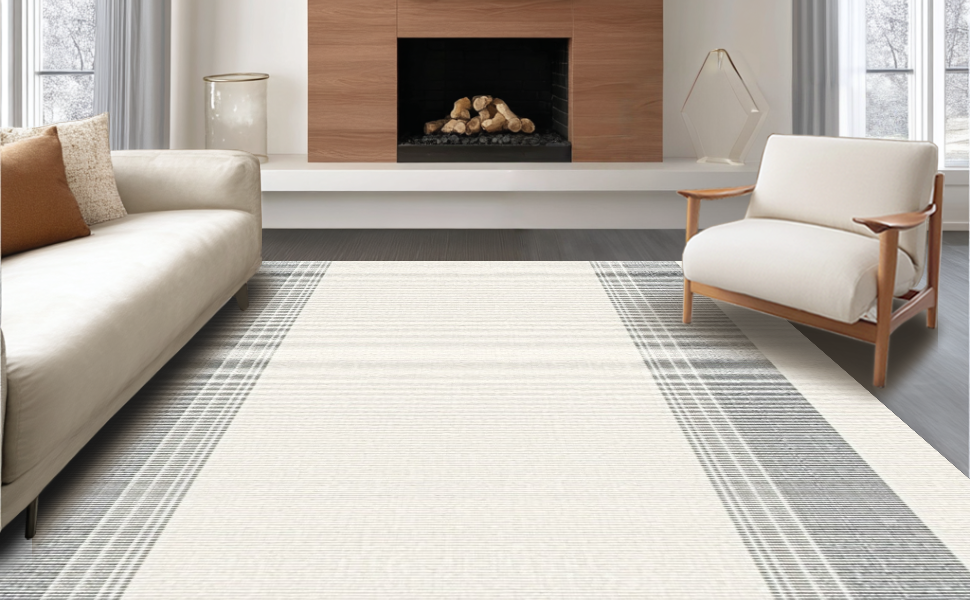Ultra Soft Area Rug, Non Slip, Stain Resistant, Washable Area Rugs for Living Room, Bedroom, Modern Geometric Scalloped Lines(Beige) Overview: