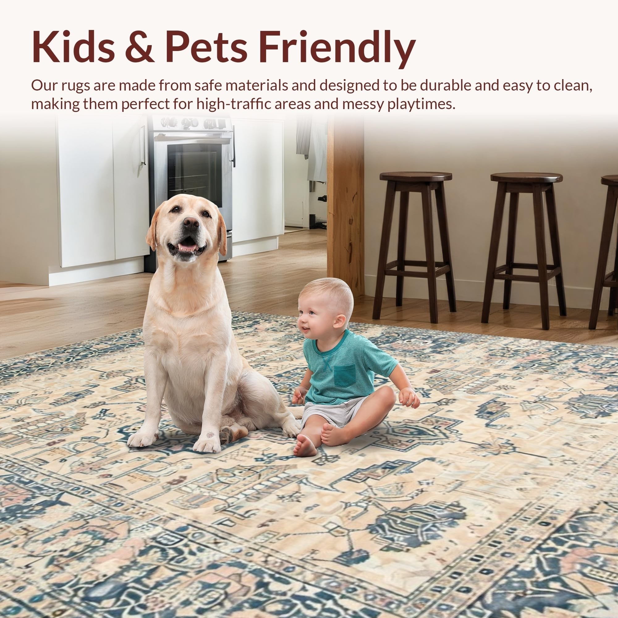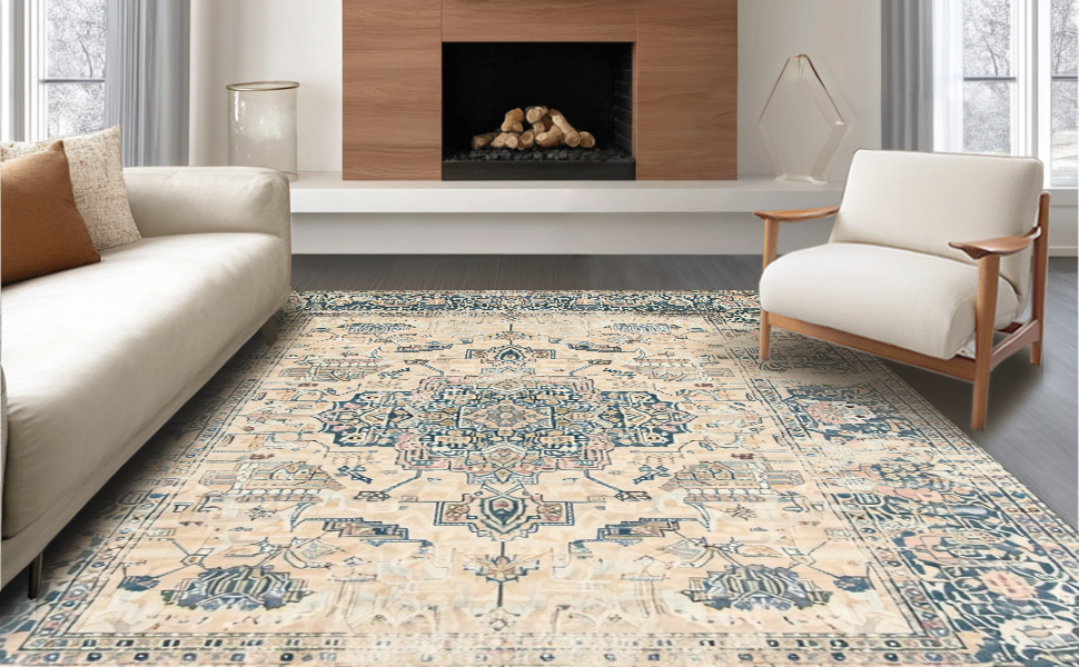 Ultra Soft Area Rug, Non Slip, Stain Resistant, Washable Area Rugs for Living Room, Bedroom, Modern Geometric Textured Pattern(Beige) Overview: