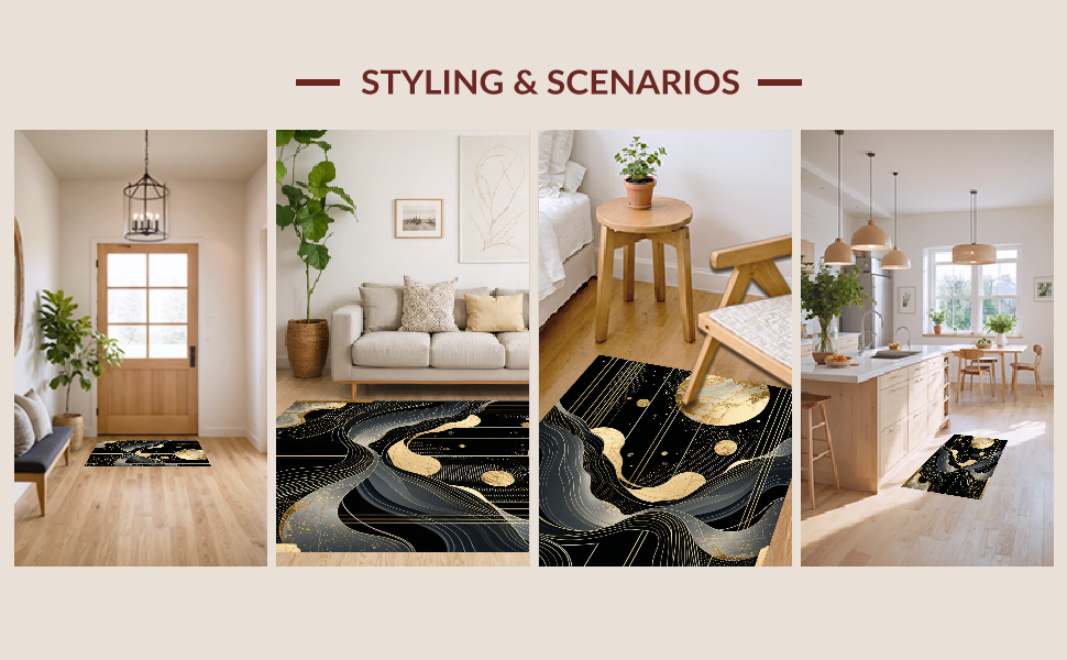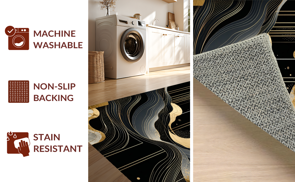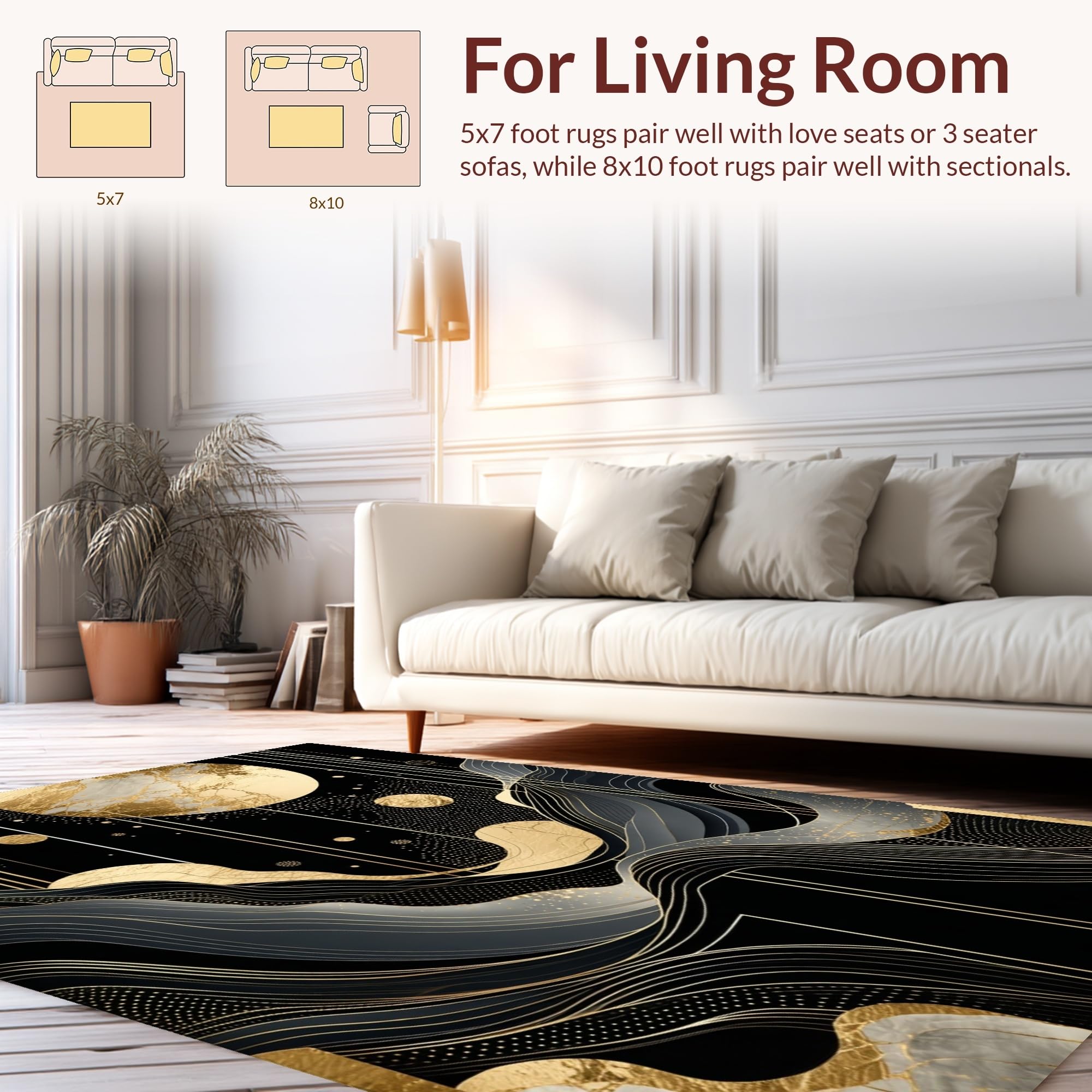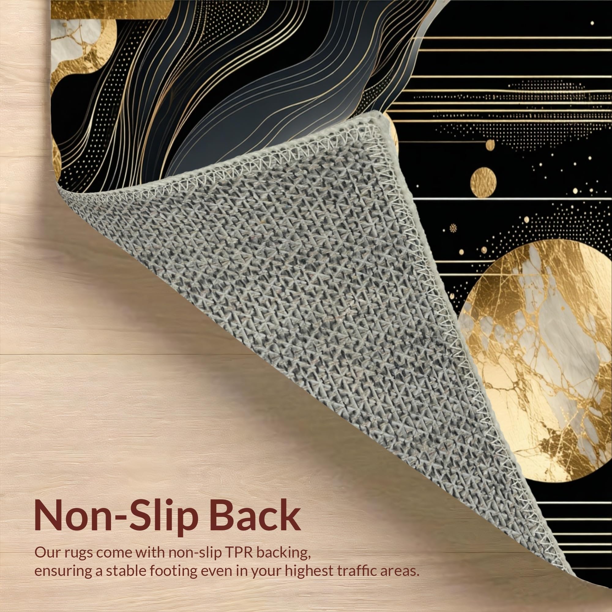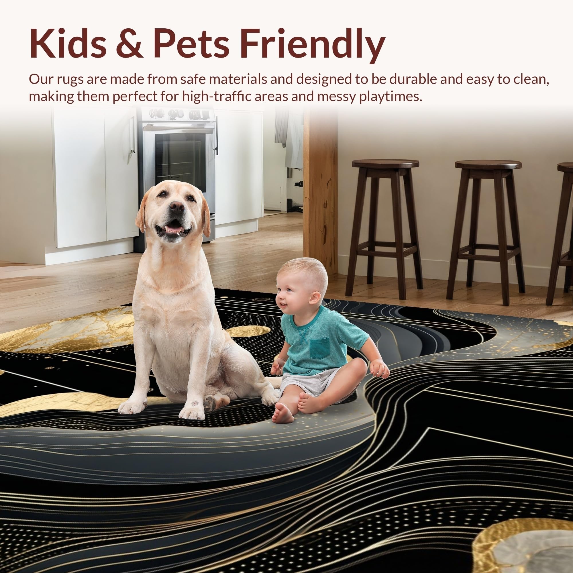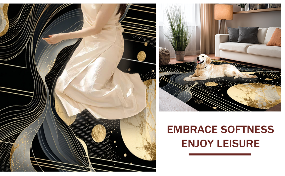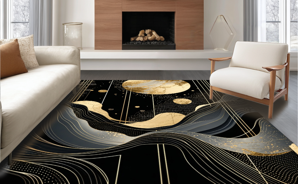 Ultra Soft Area Rug, Non Slip, Stain Resistant, Washable Area Rugs for Living Room, Bedroom, Modern Glamour Artful Motif(Black) Overview: