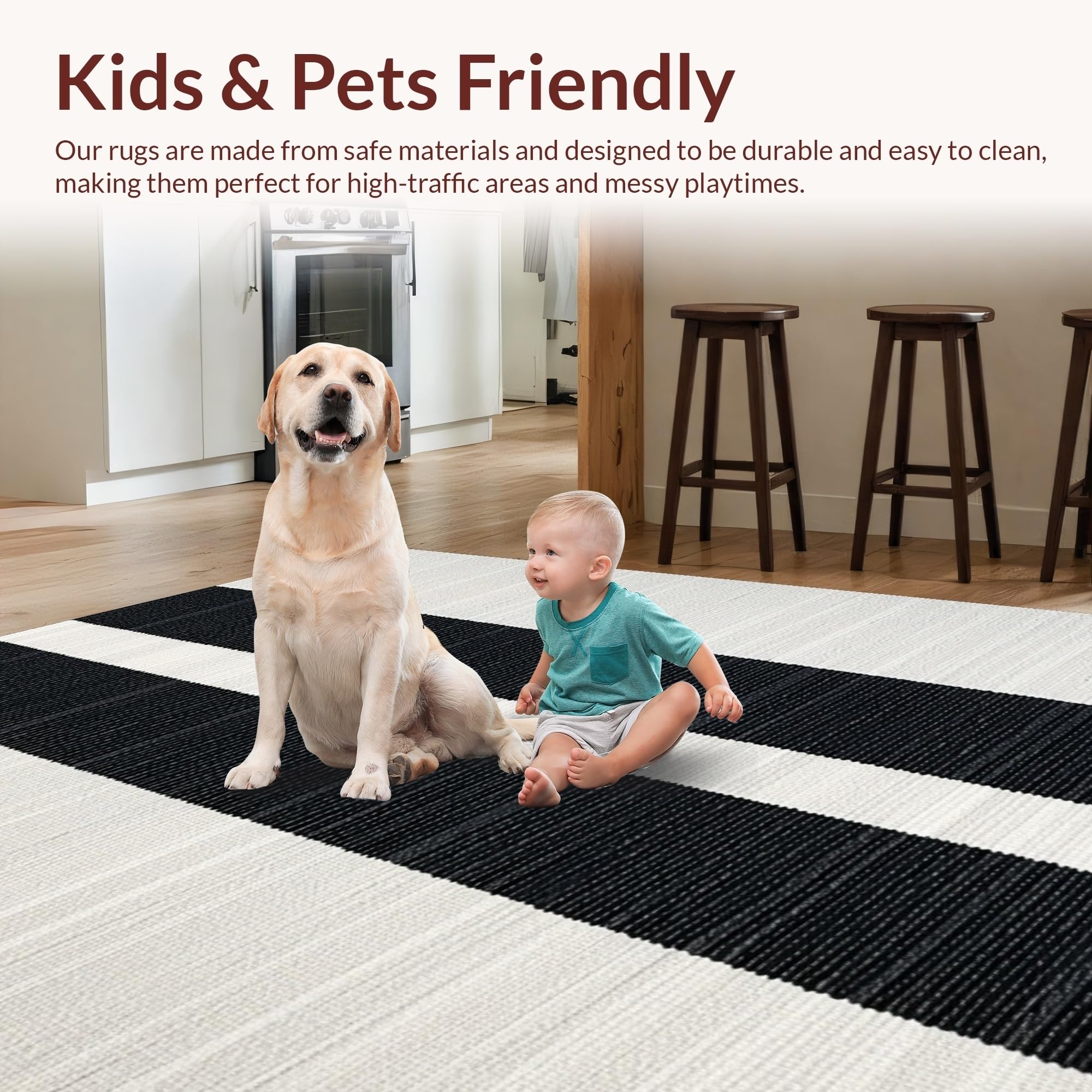Ultra Soft Area Rug, Non Slip, Stain Resistant, Washable Area Rugs for Living Room, Bedroom, Modern Graphic Tiled Motif(Black) Overview: