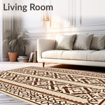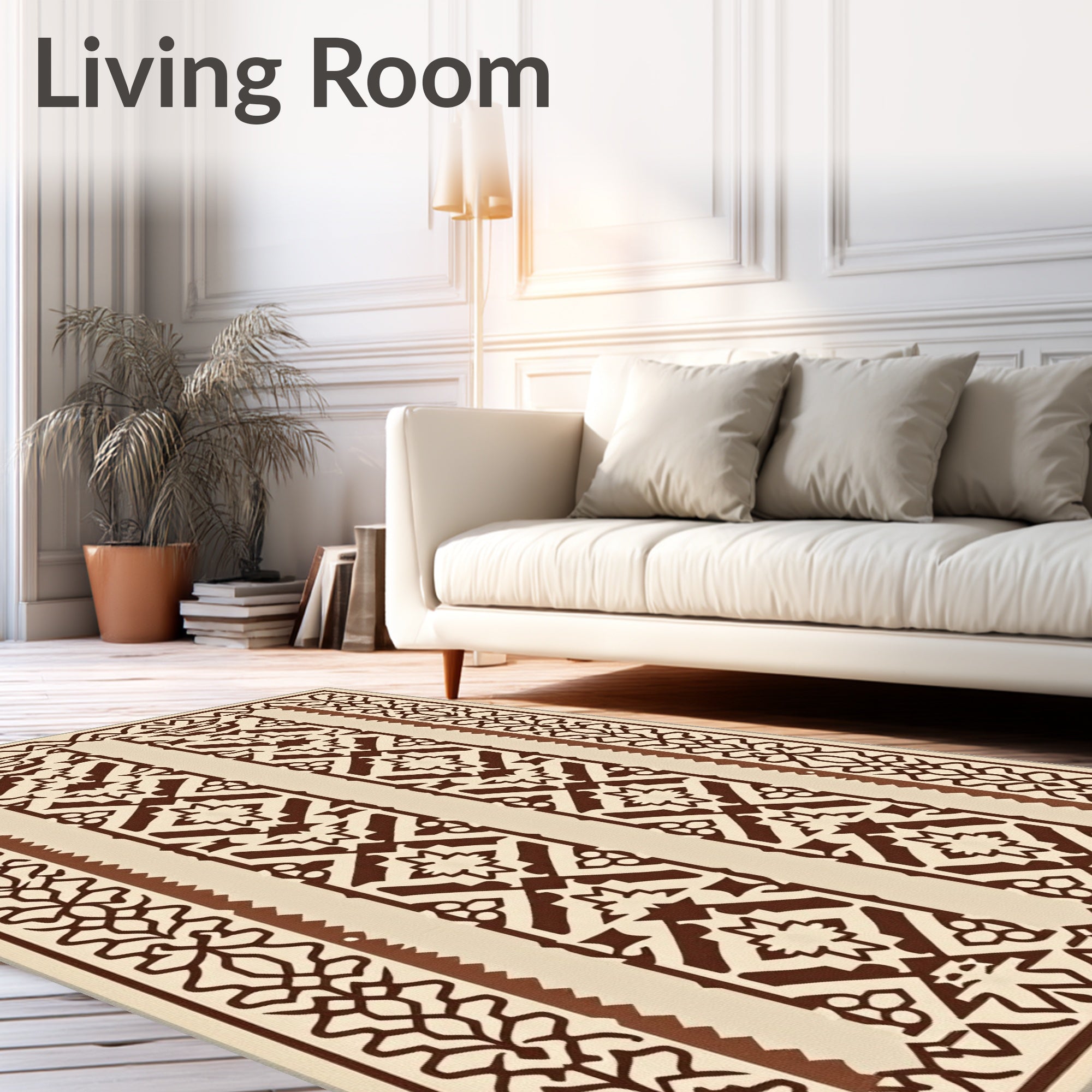 Flatwoven High Traffic Area Rug, Modern Inspired with Symmetrical Interlocking Motifs, Non Slip, Stain Resistant, Washable Area Rugs for Living Room, Bedroom (Brown) Overview: