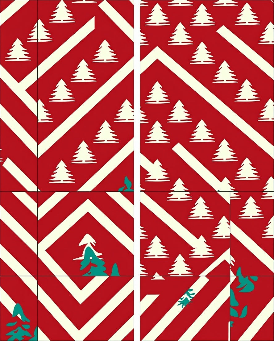 Modern Interlocking Chevron with Subtle Holiday Pine Silhouettes(Red)