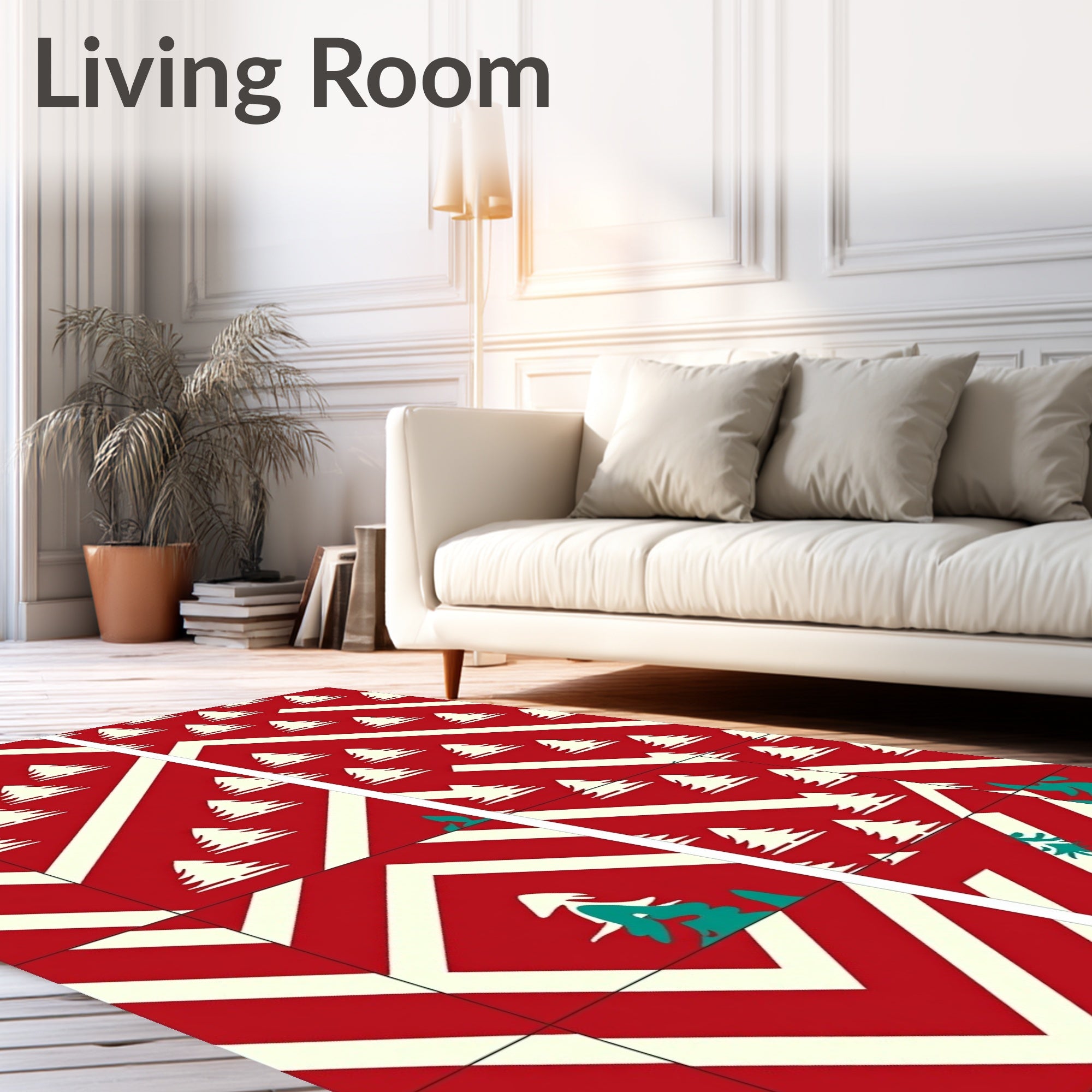 Ultra Soft Area Rug, Non Slip, Stain Resistant, Washable Area Rugs for Living Room, Bedroom, Modern Interlocking Chevron with Subtle Holiday Pine Silhouettes(Red) Overview: