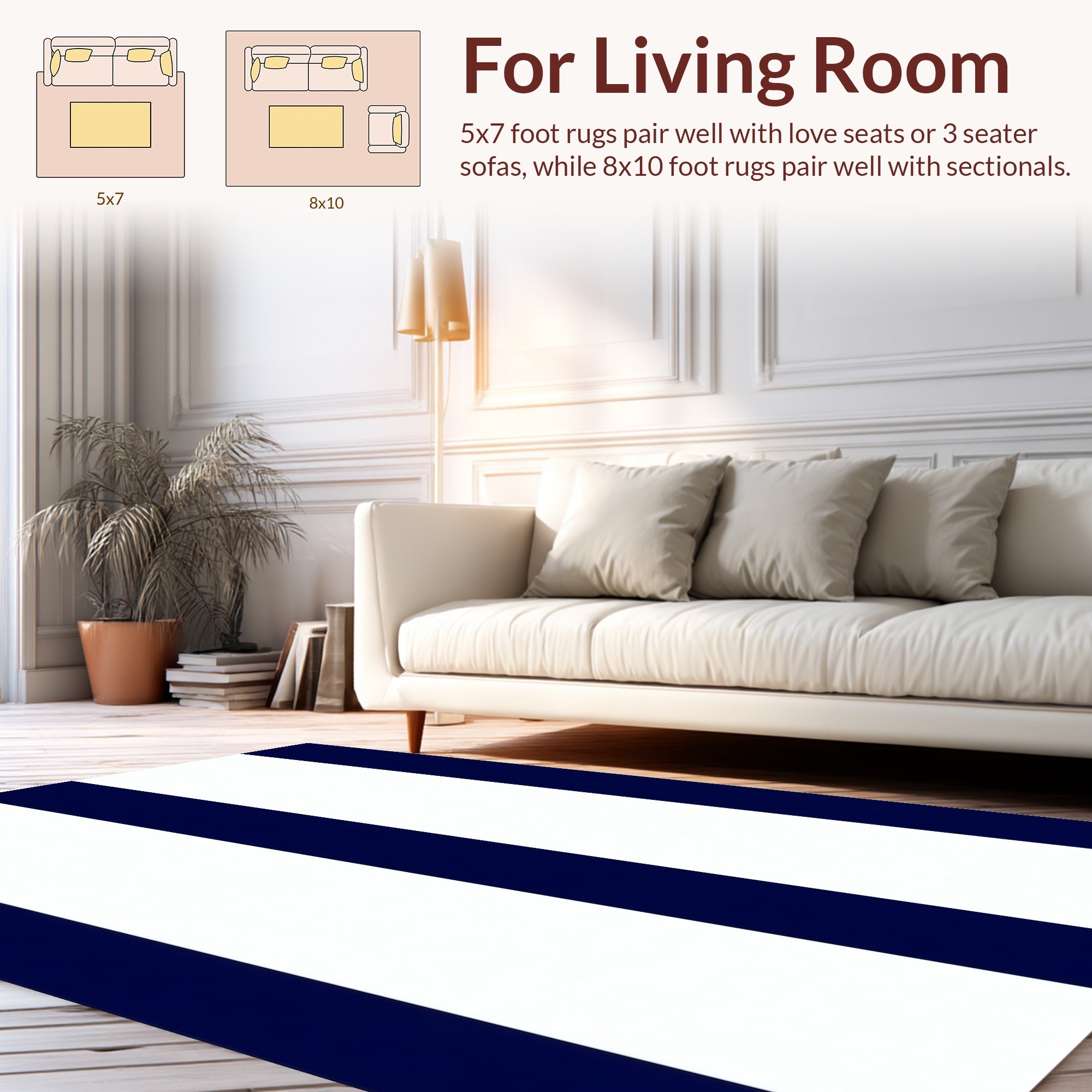 Ultra Soft Area Rug, Non Slip, Stain Resistant, Washable Area Rugs for Living Room, Bedroom, Modern Kitchen Rug with Blue and White Stripe Design(Blue) Overview: