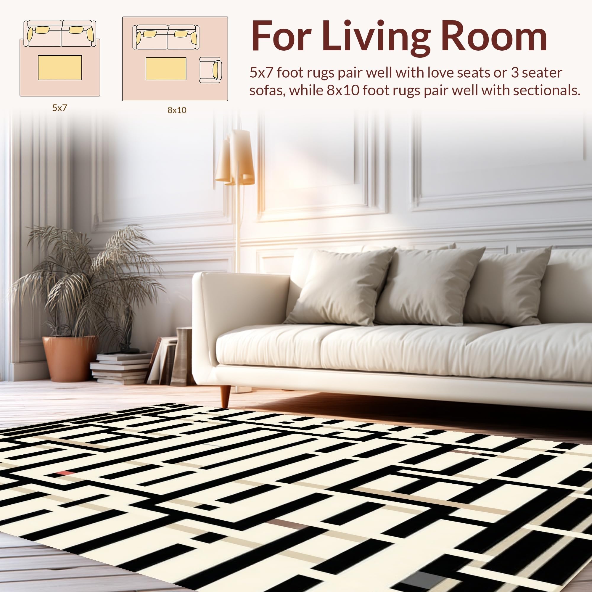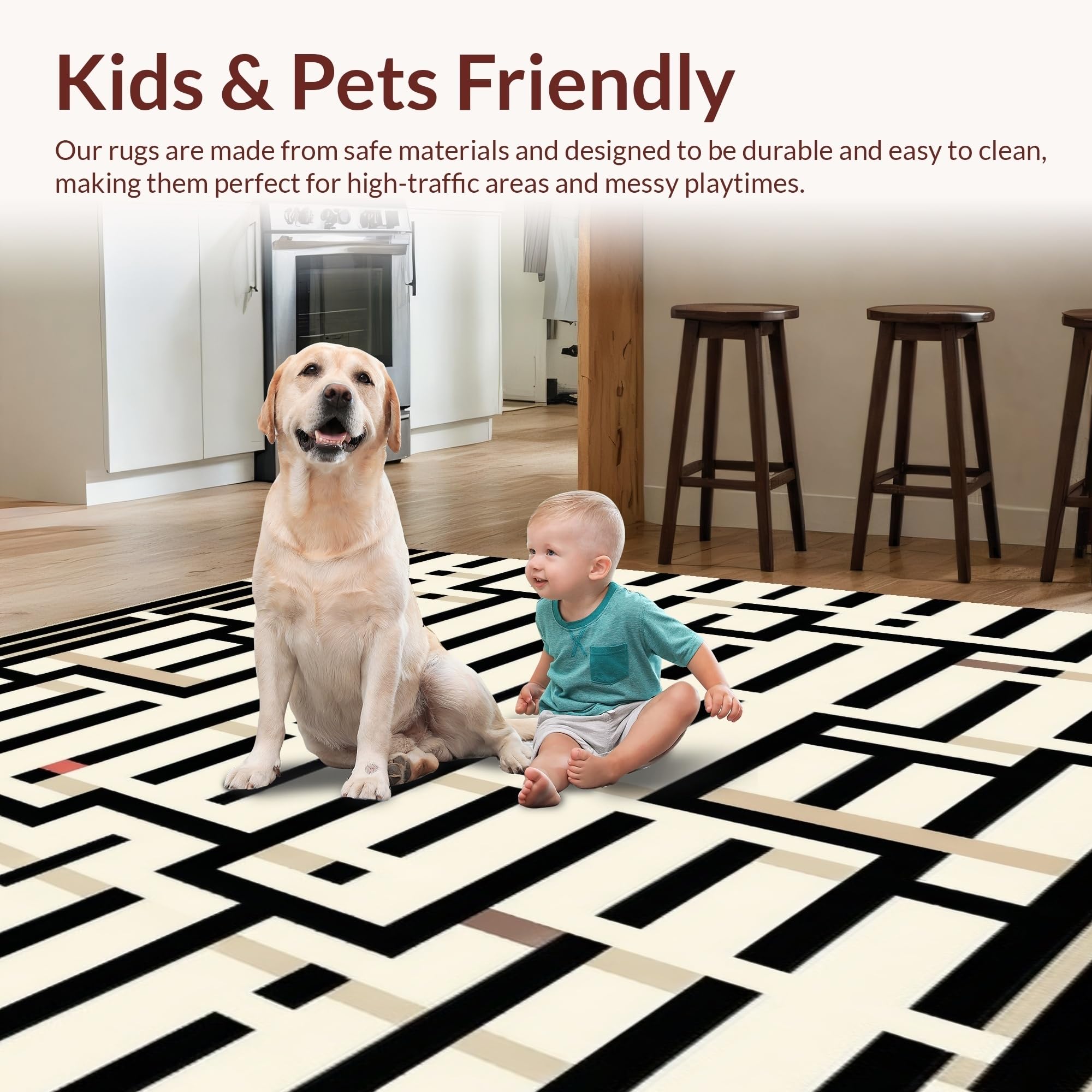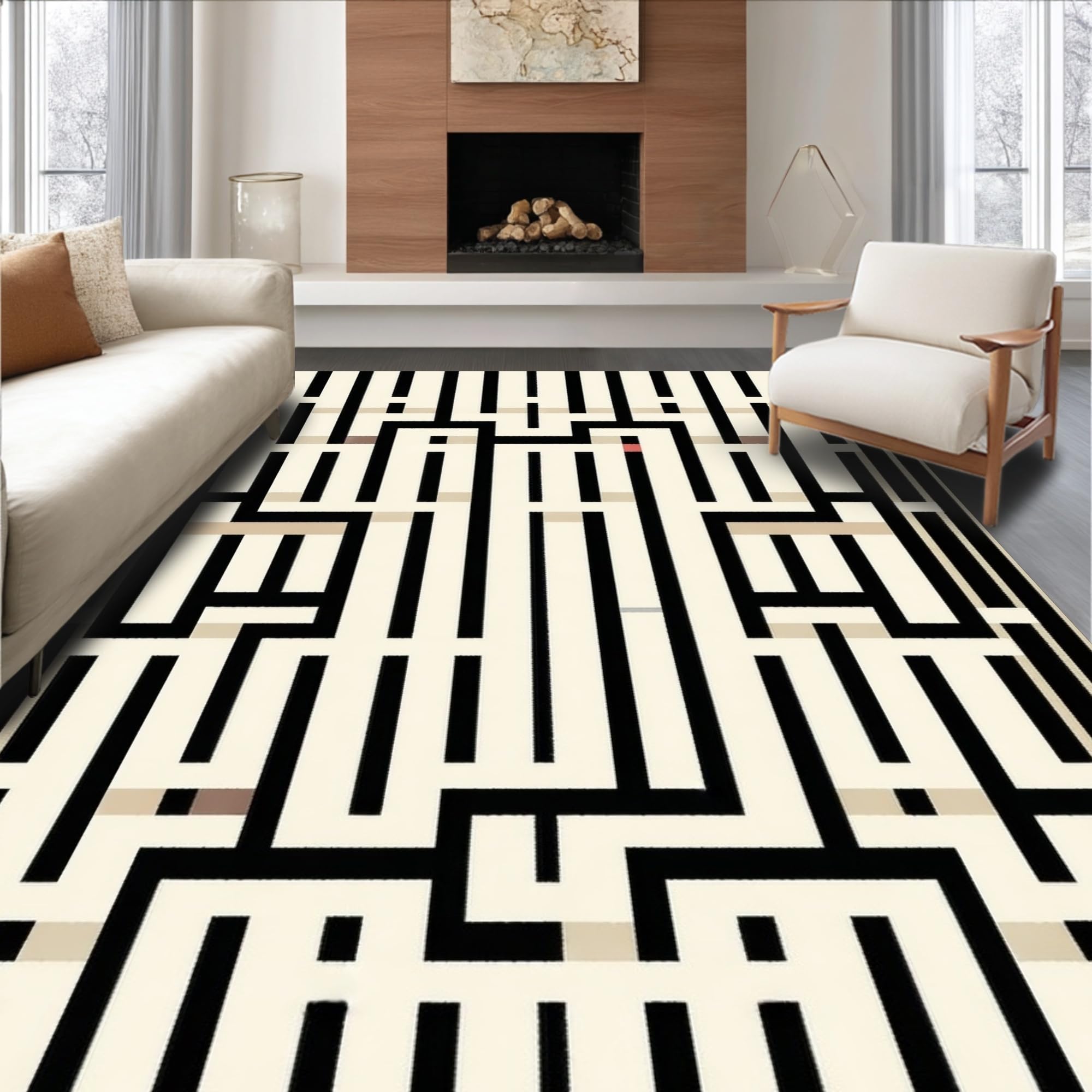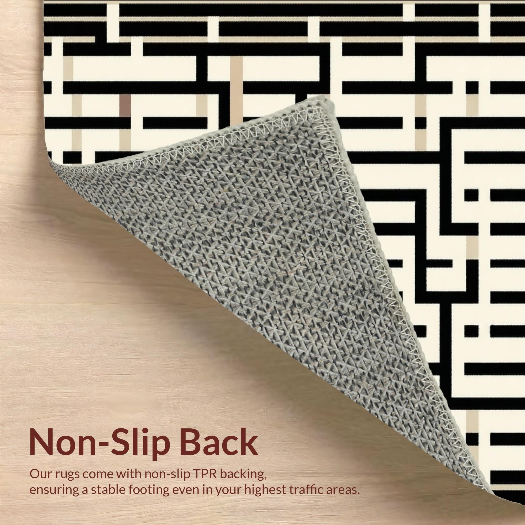 Ultra Soft Area Rug, Non Slip, Stain Resistant, Washable Area Rugs for Living Room, Bedroom, Modern Lattice Black & Beige Woven(Beige) Overview: