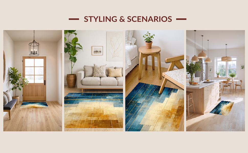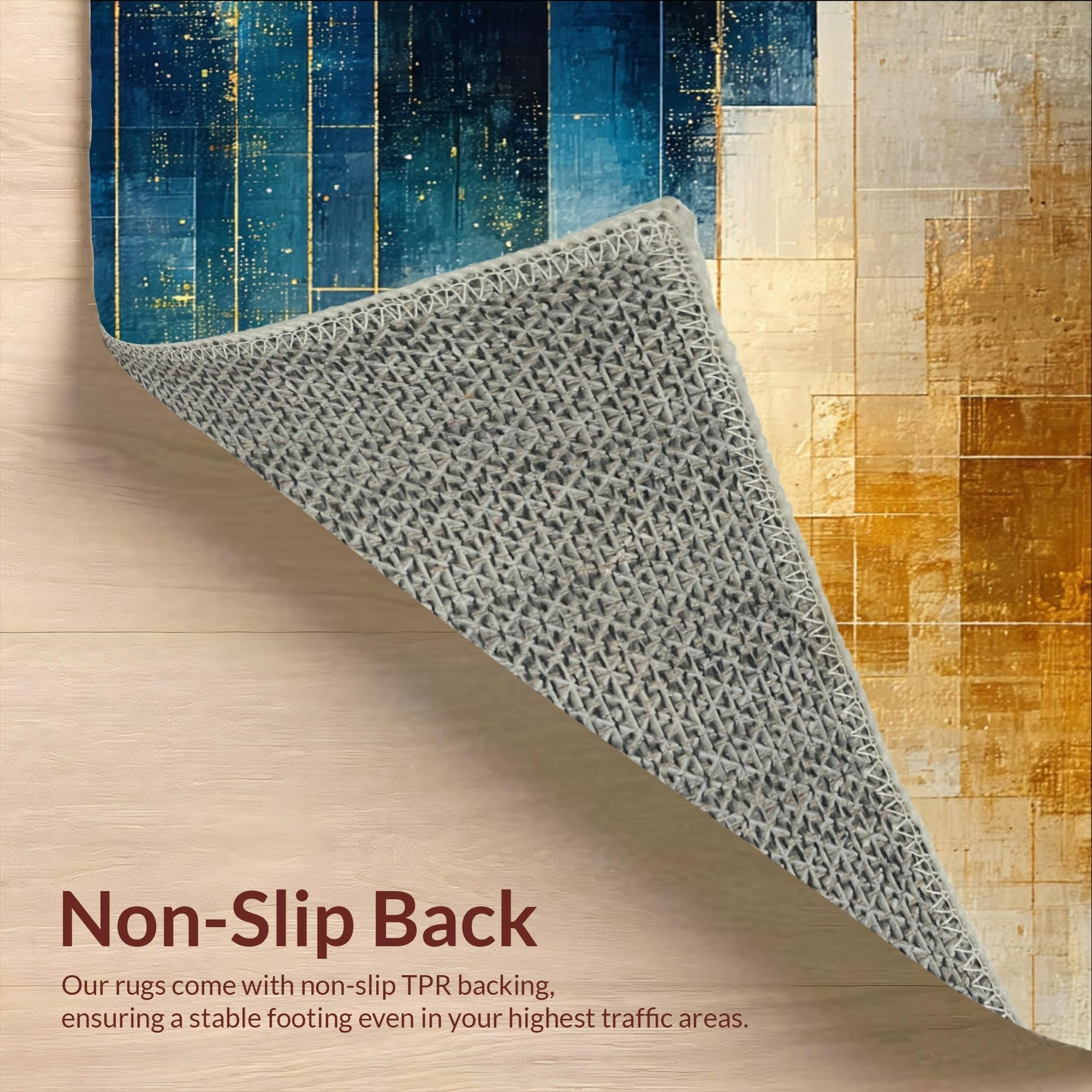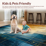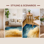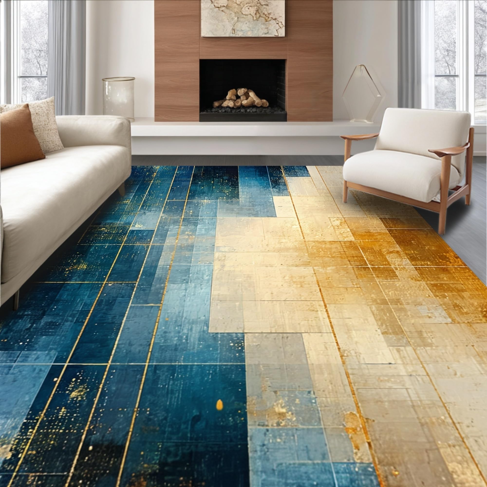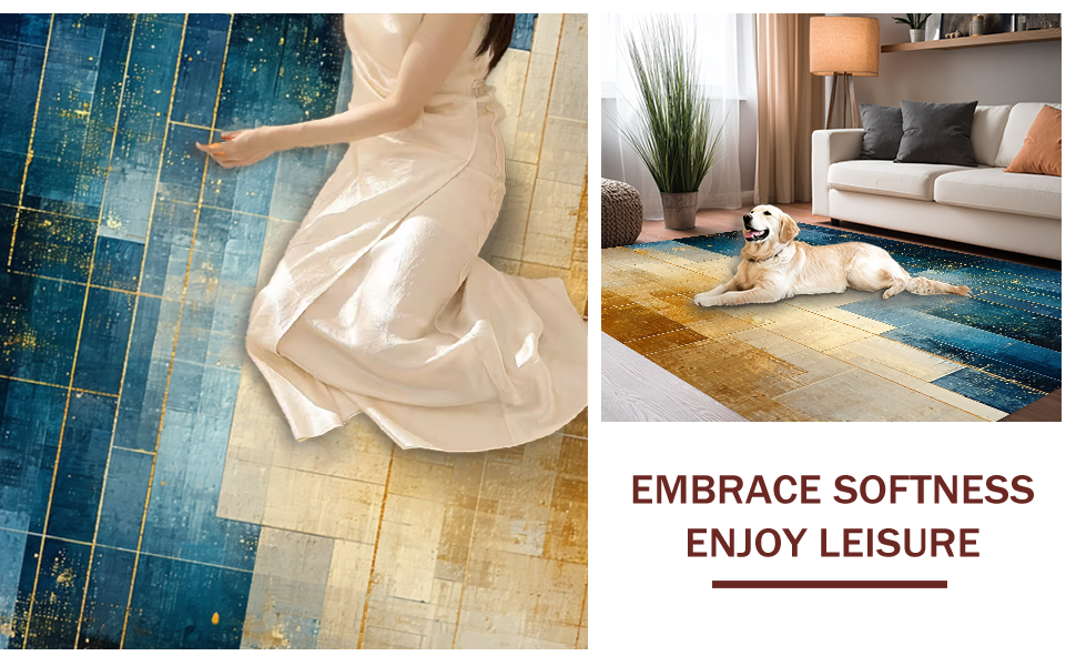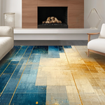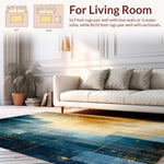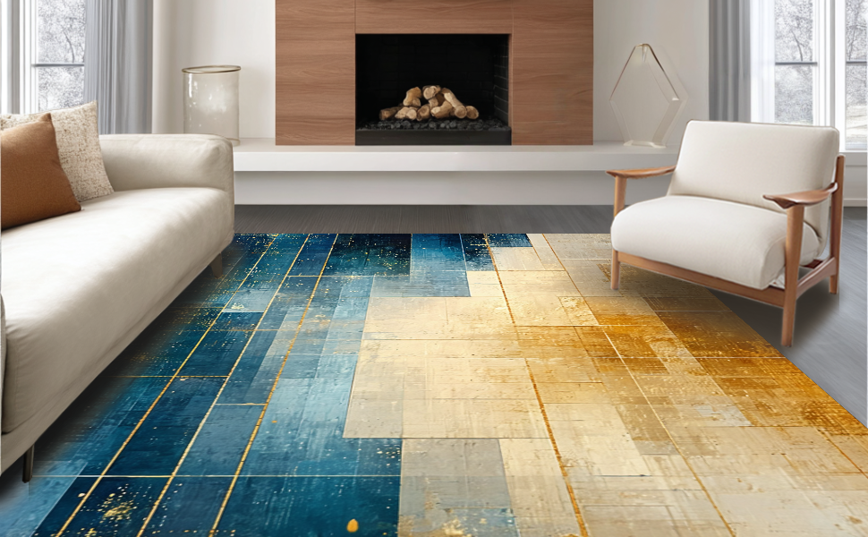 Ultra Soft Area Rug, Non Slip, Stain Resistant, Washable Area Rugs for Living Room, Bedroom, Modern Lattice Spectrum Rug Featuring Gold and Blue Angular Art Motifs(Blue) Overview: