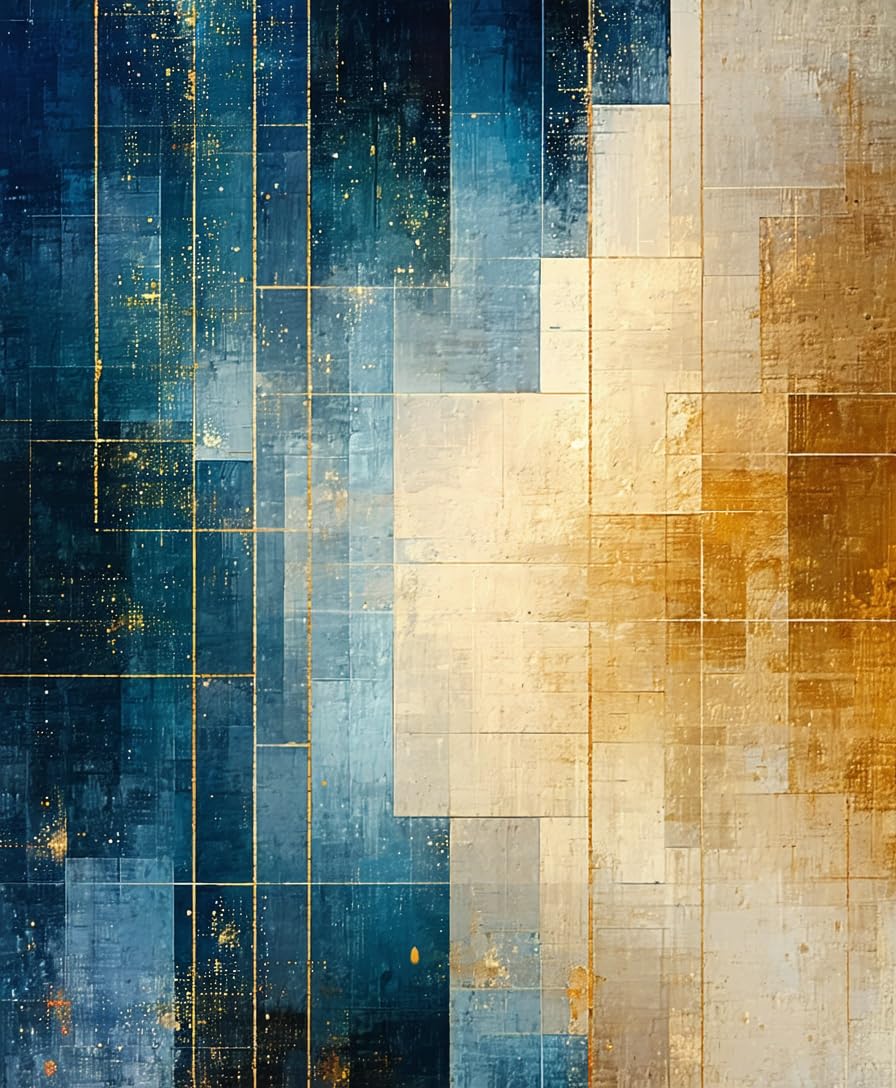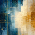 Modern Lattice Spectrum Featuring Gold and Blue Angular Art Motifs(Blue)