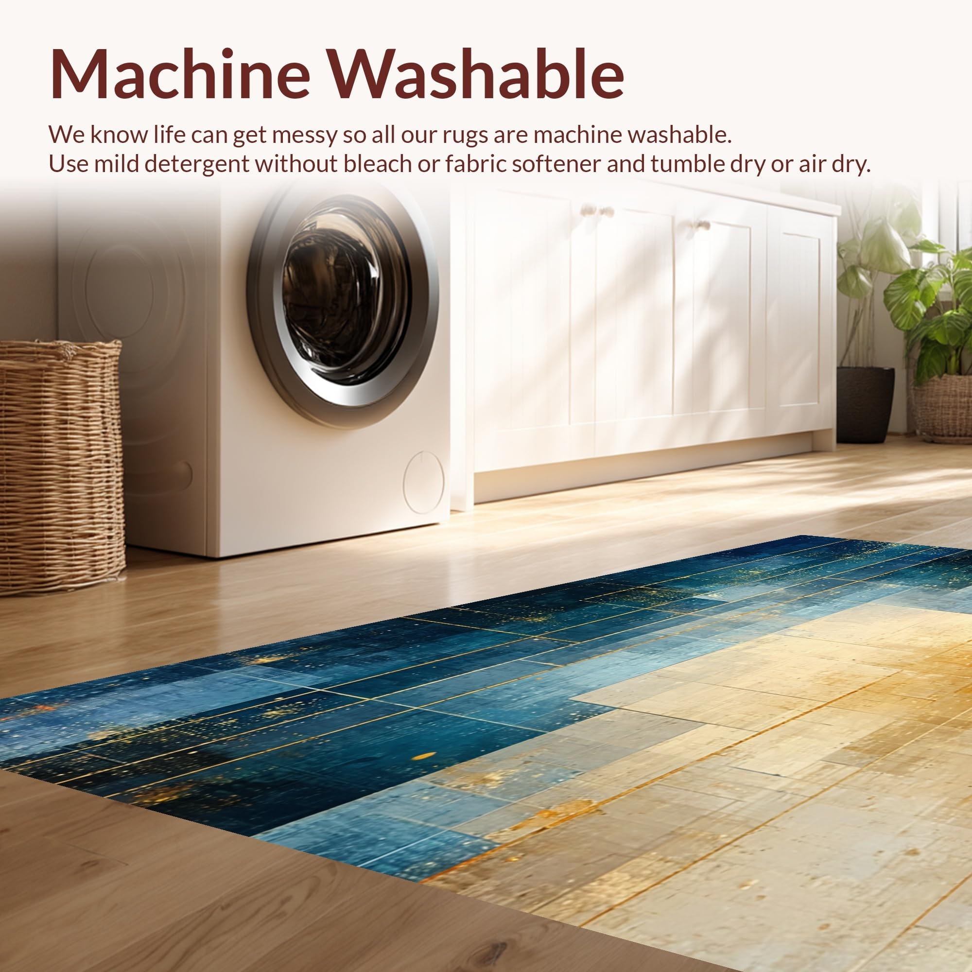- Machine Washable: Our rugs can be easily thrown in the wash machine.