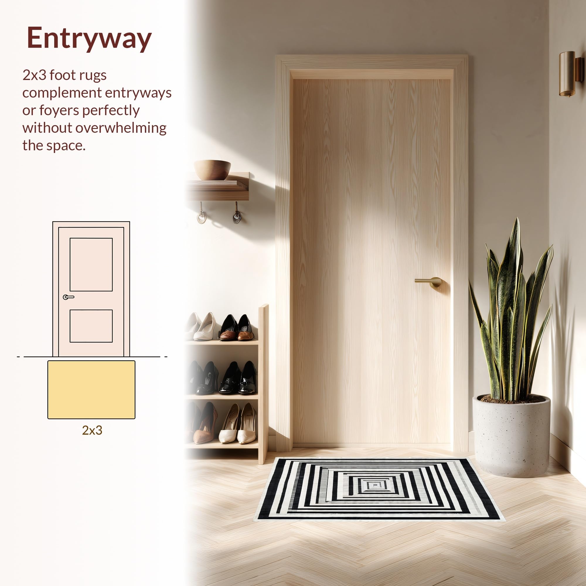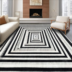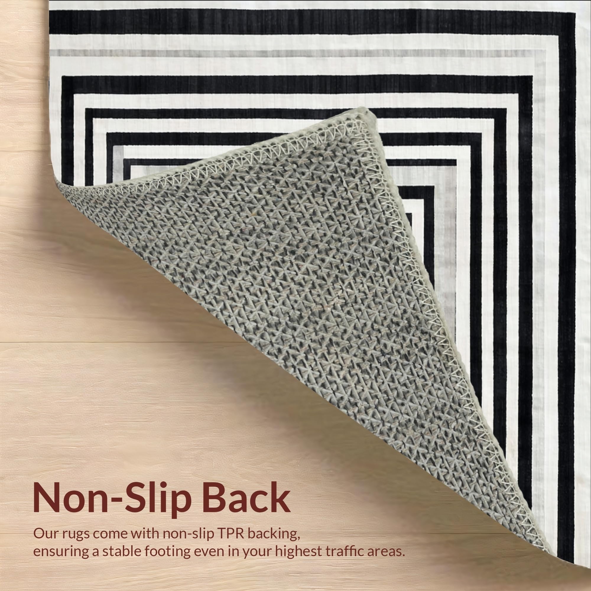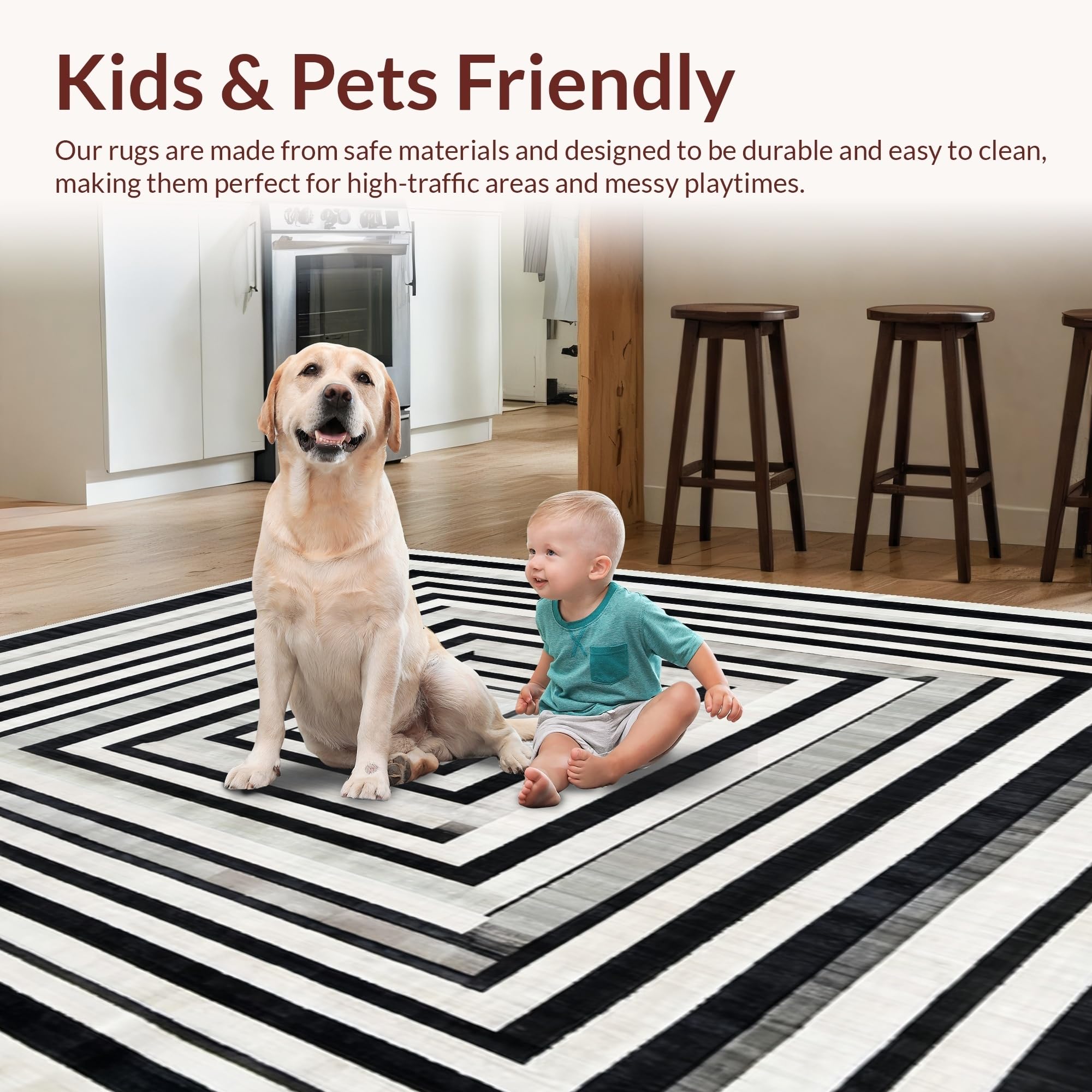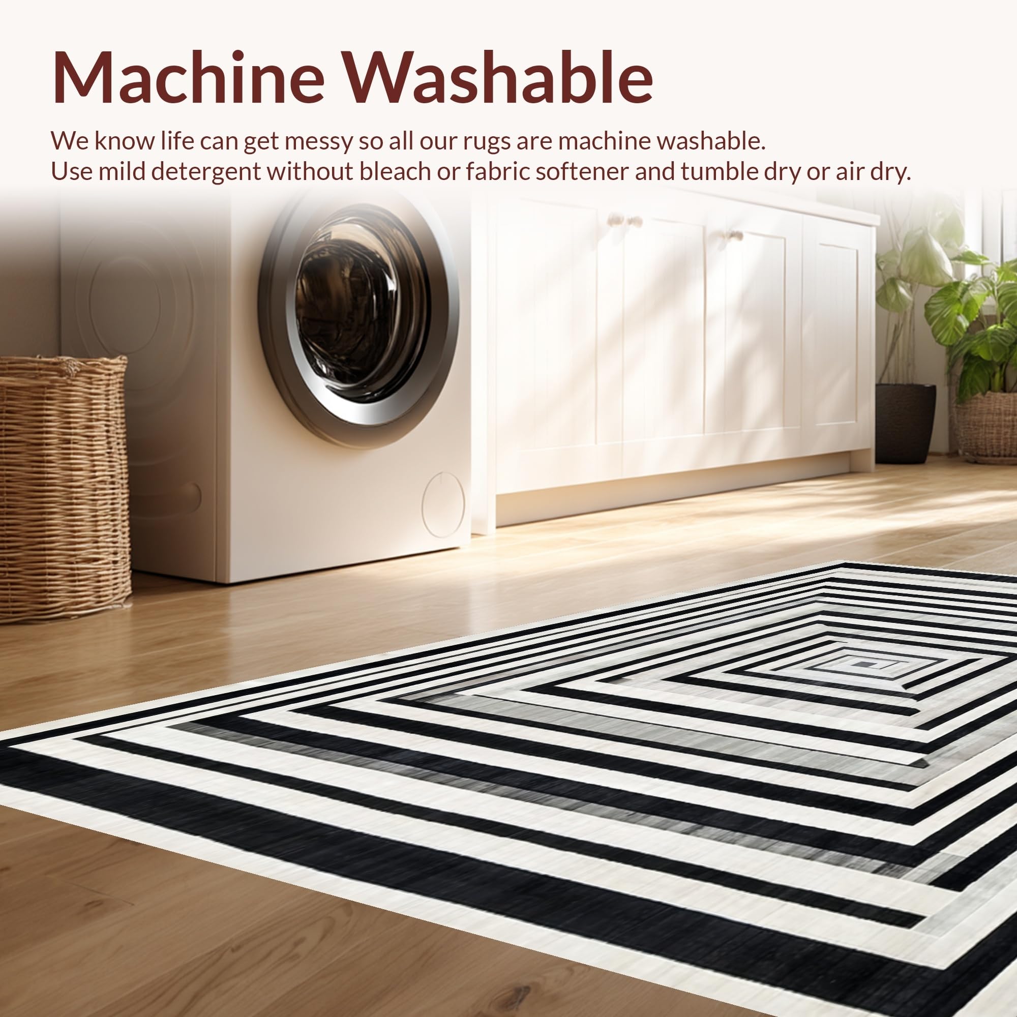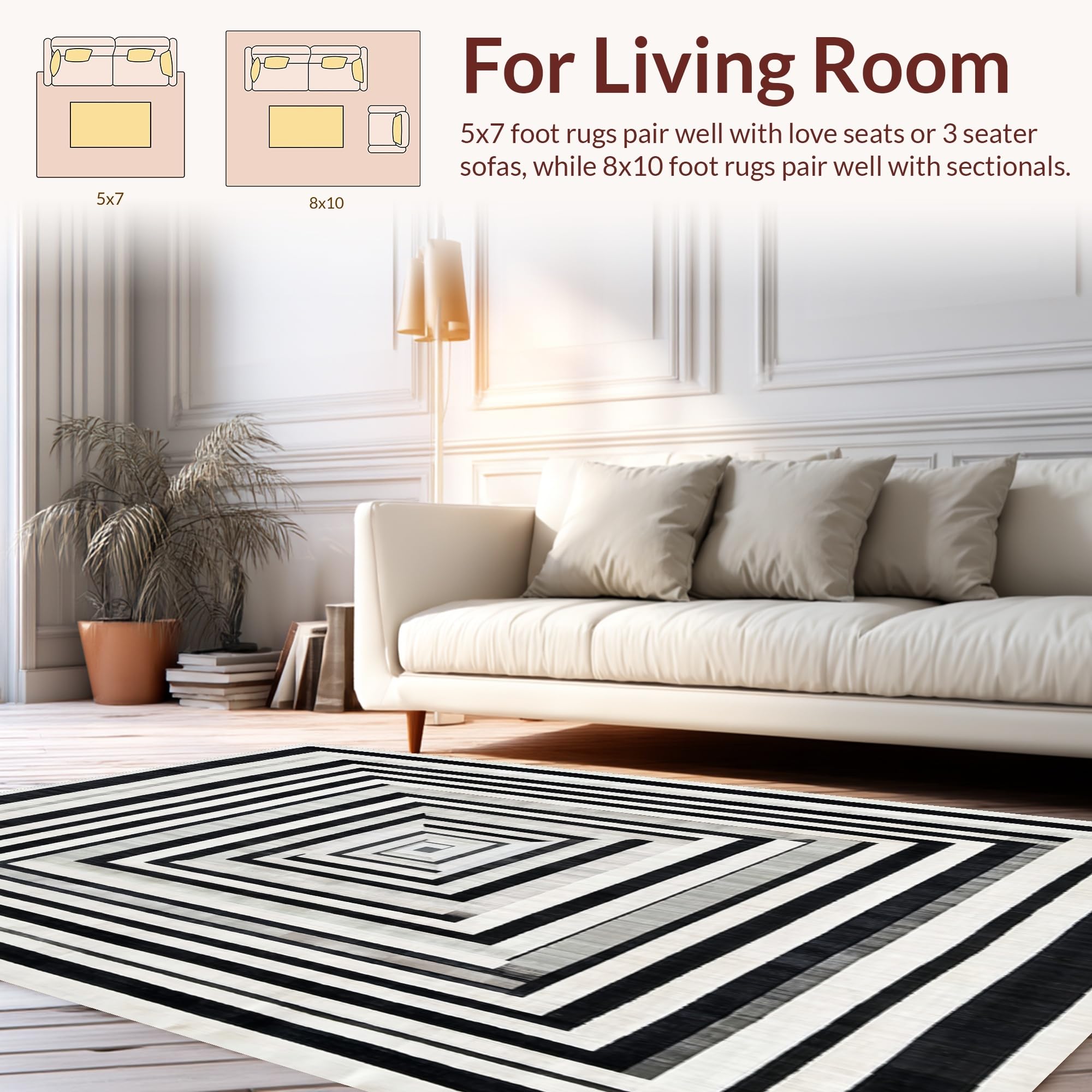 Ultra Soft Area Rug, Non Slip, Stain Resistant, Washable Area Rugs for Living Room, Bedroom, Modern Layered Stripe Rug with Varied Width Black and White Band Patterns(Gray) Overview: