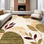 Modern Leaf Cascade Area with Earth Tone Color Blocks and Artistic Bursts(Beige)