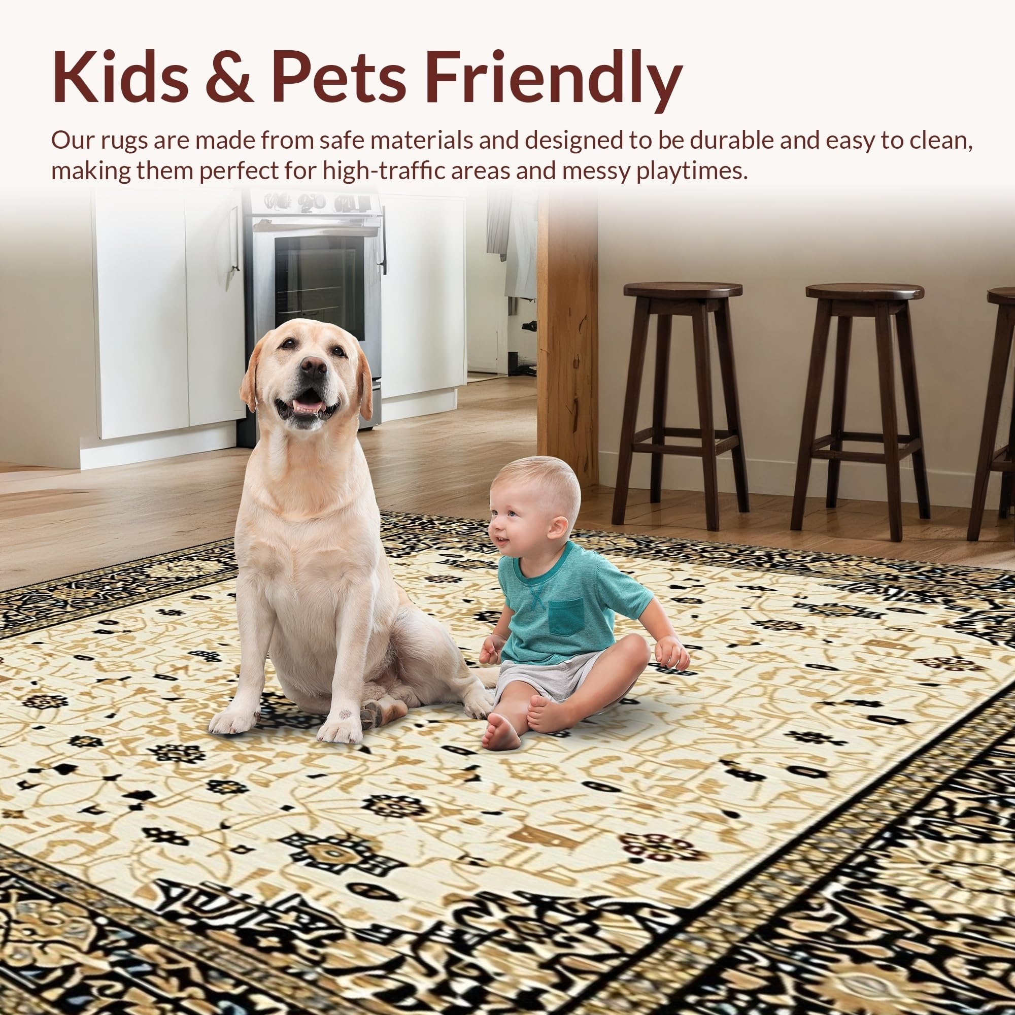 Ultra Soft Area Rug, Non Slip, Stain Resistant, Washable Area Rugs for Living Room, Bedroom, Modern Leopard Beige with Dark Brown Accents(Beige) Overview: