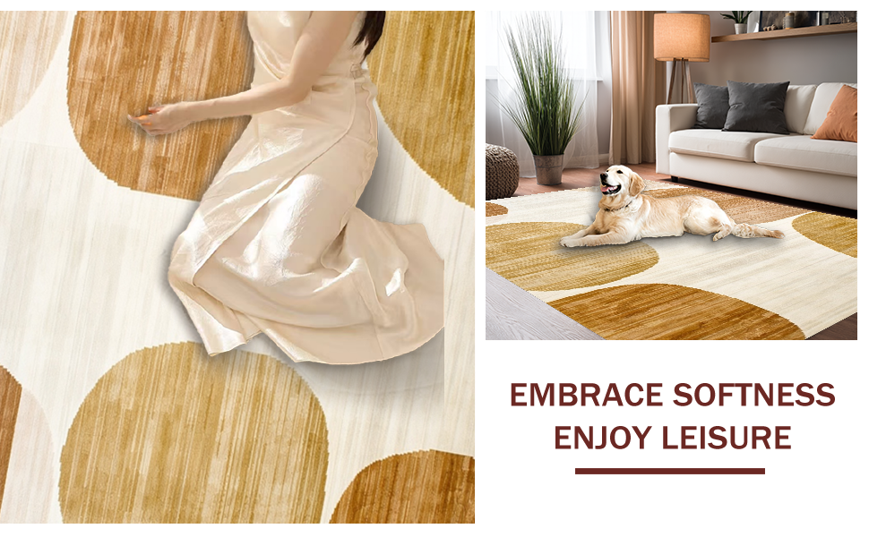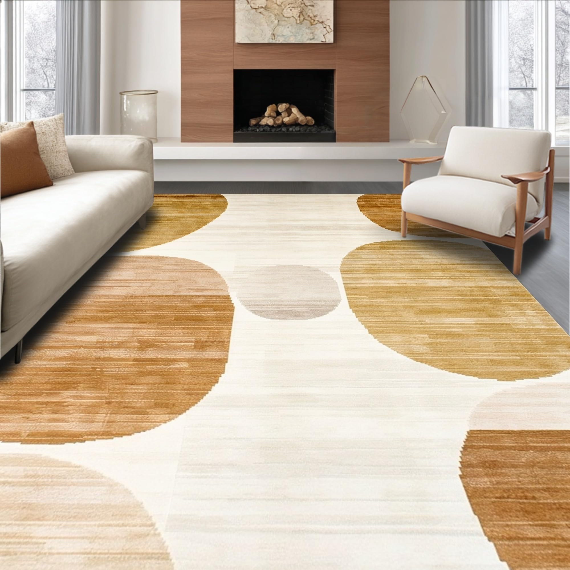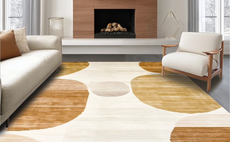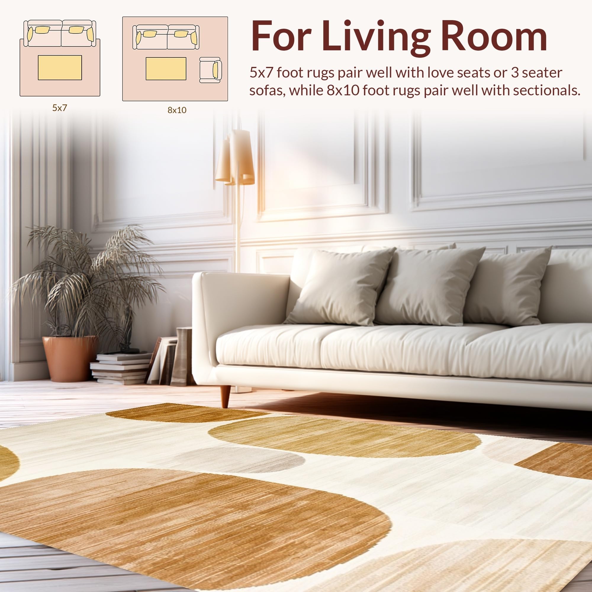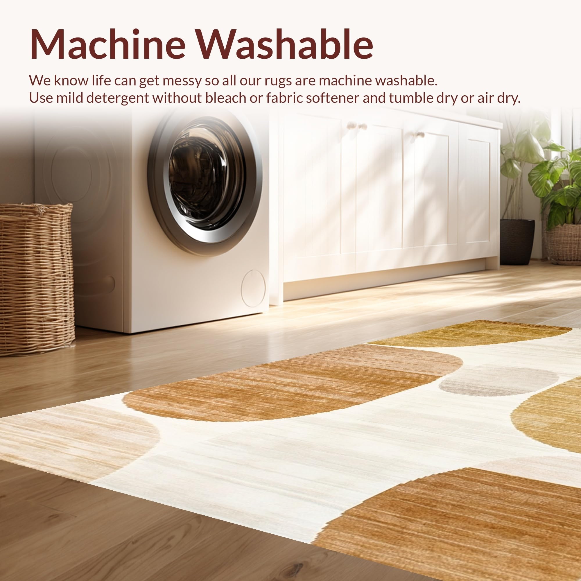 Ultra Soft Area Rug, Non Slip, Stain Resistant, Washable Area Rugs for Living Room, Bedroom, Modern Light Brown Geometric Touches(Beige) Overview: