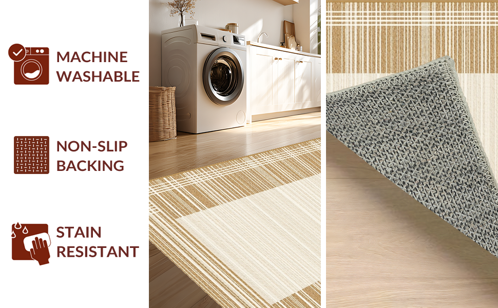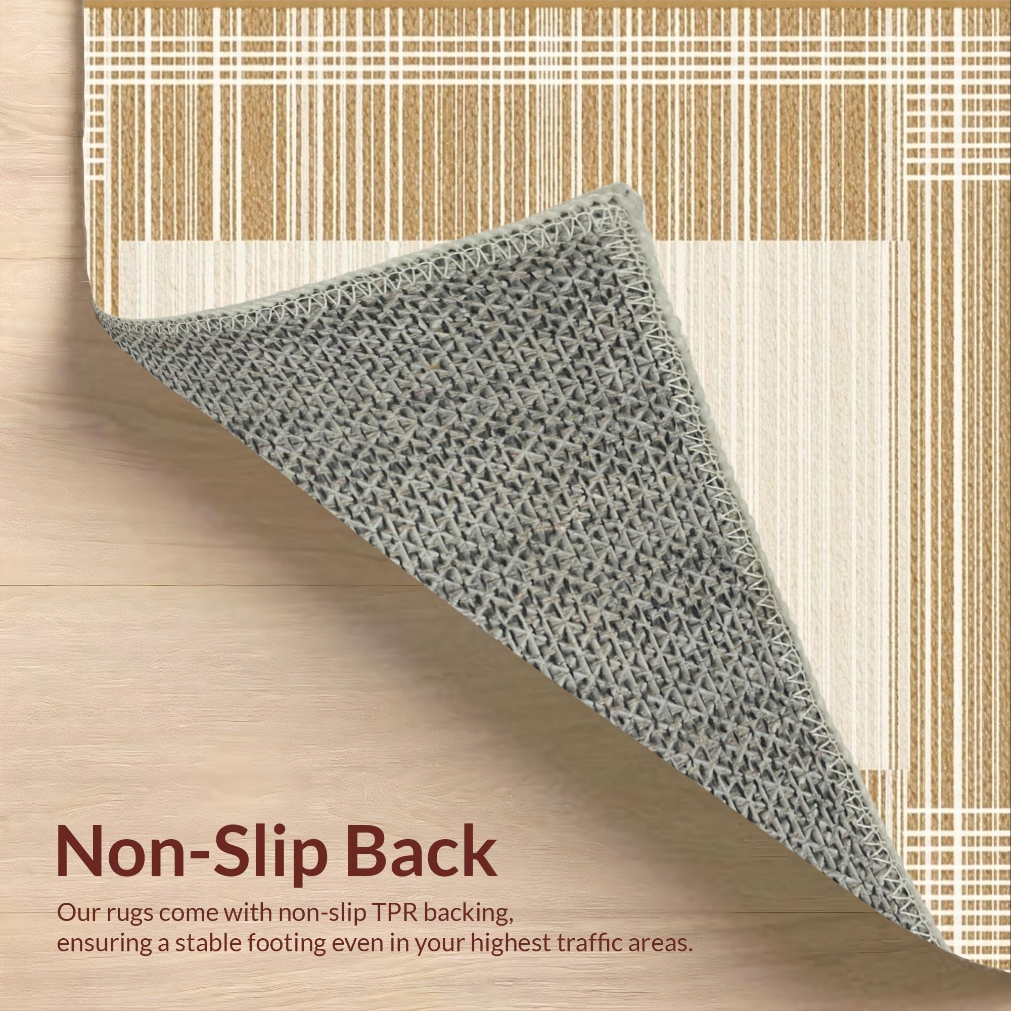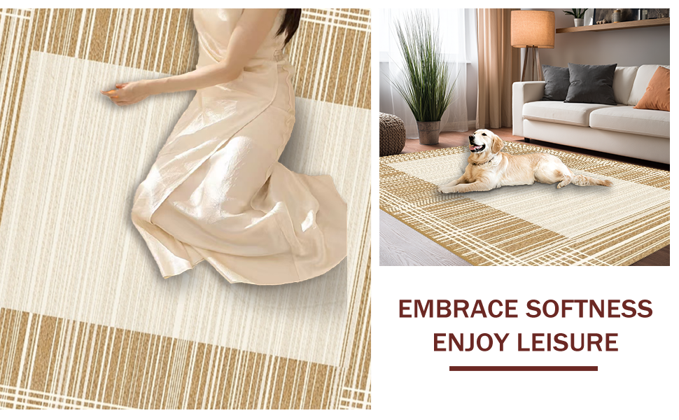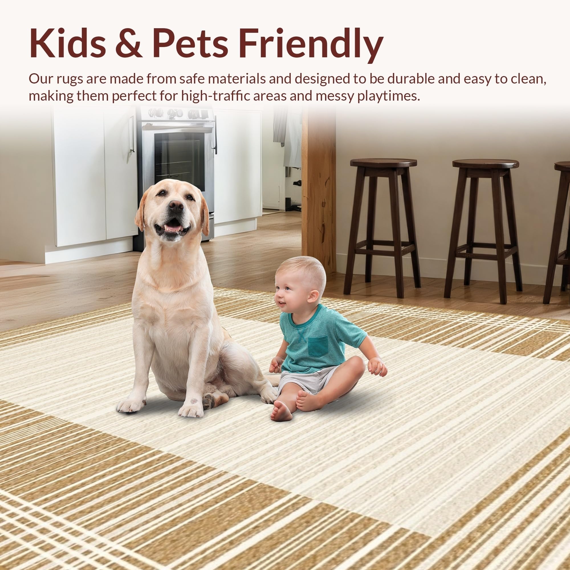 Ultra Soft Area Rug, Non Slip, Stain Resistant, Washable Area Rugs for Living Room, Bedroom, Modern Light Brown Striped Look(Beige) Overview: