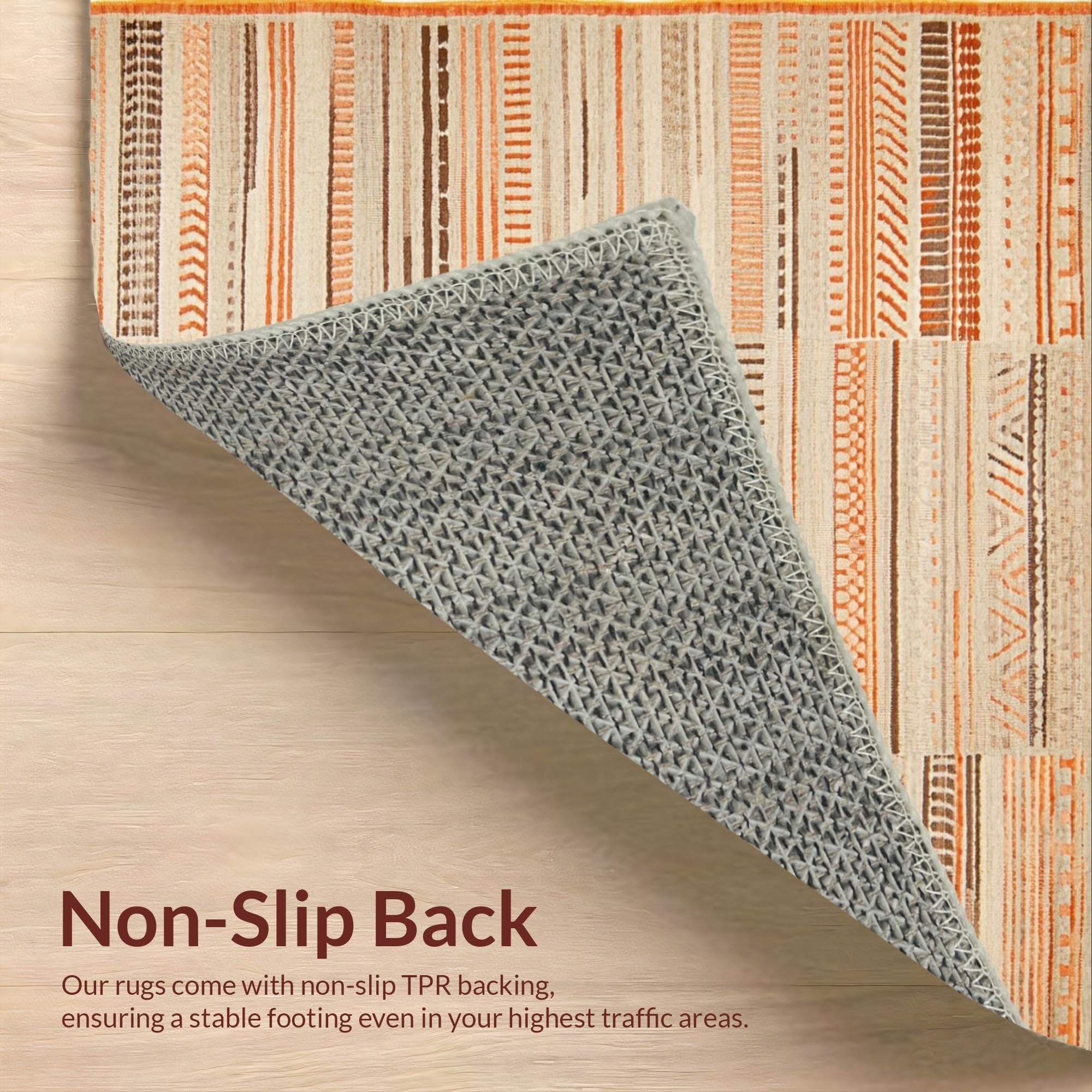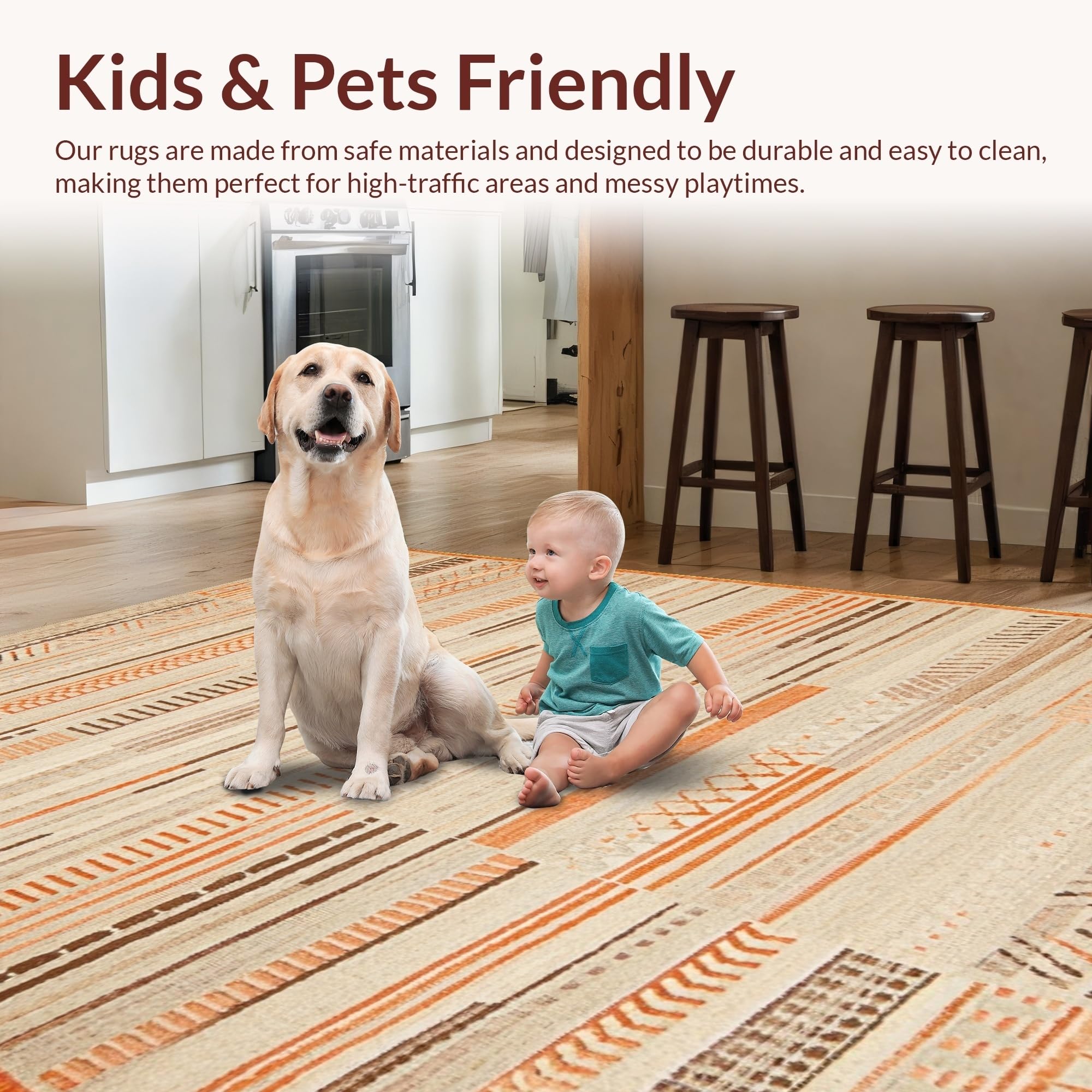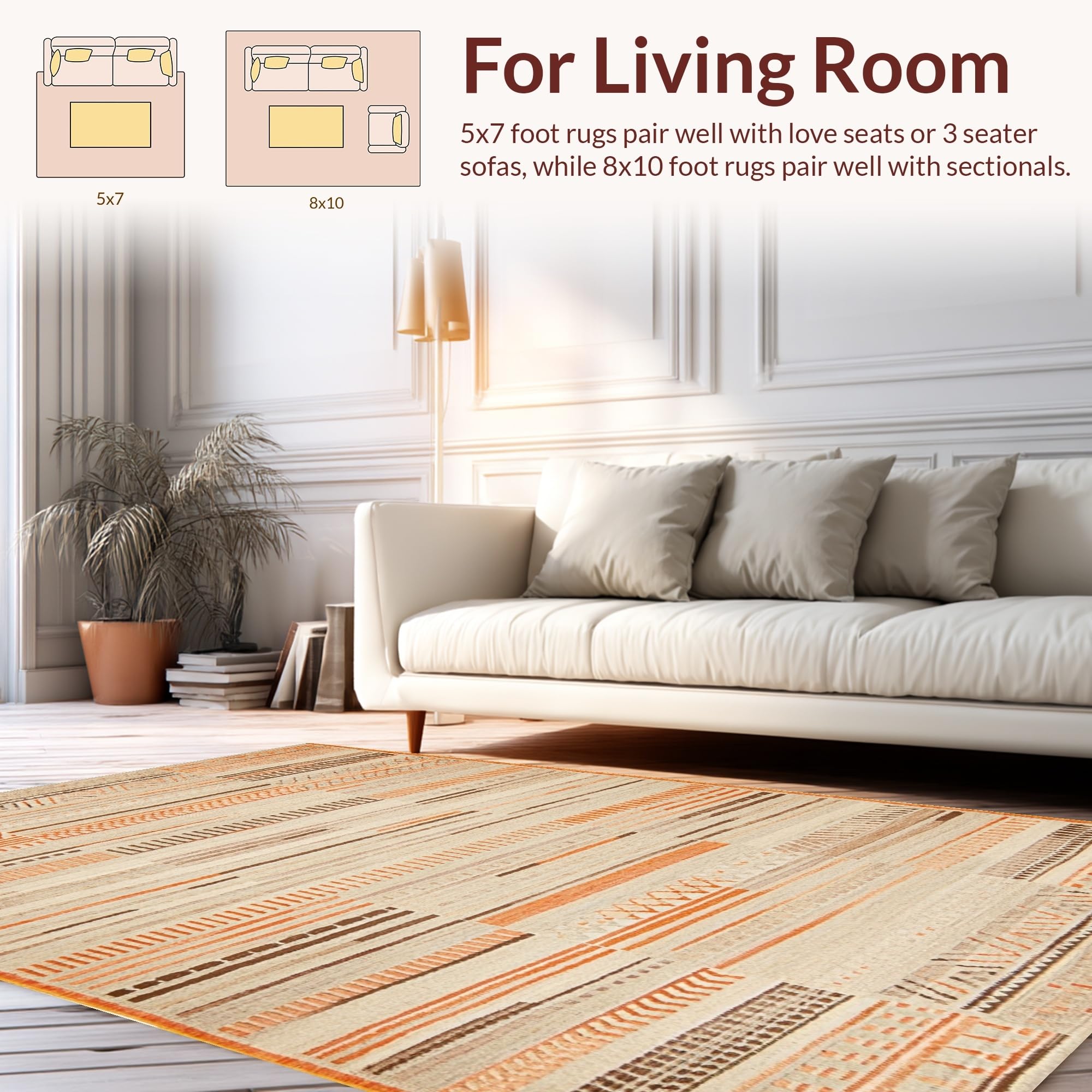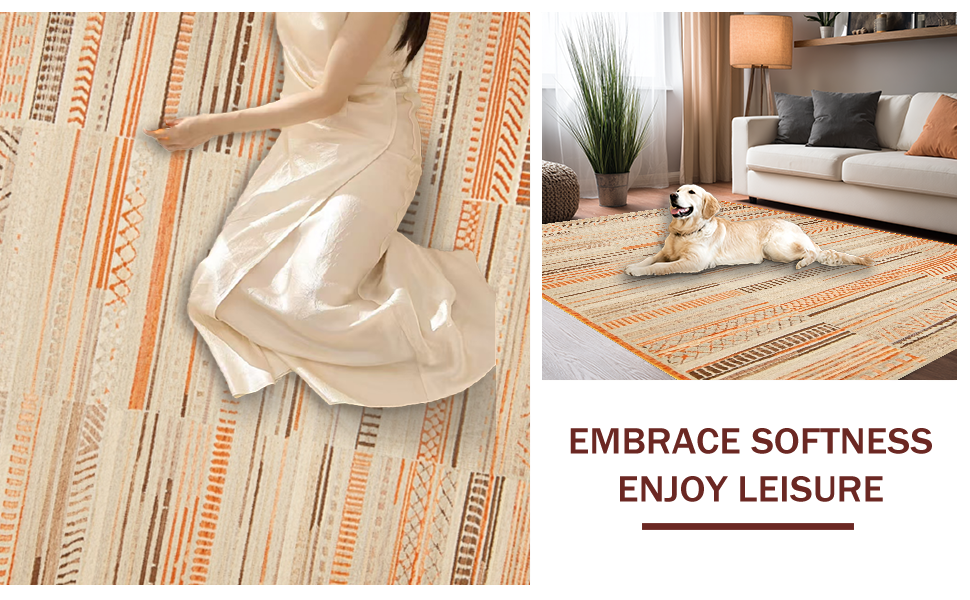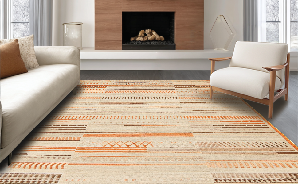Ultra Soft Area Rug, Non Slip, Stain Resistant, Washable Area Rugs for Living Room, Bedroom, Modern Linear Pattern with Warm Accents(Beige) Overview: