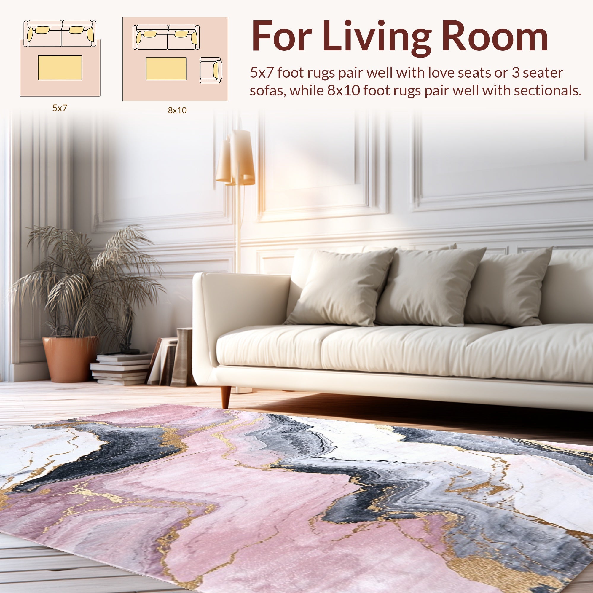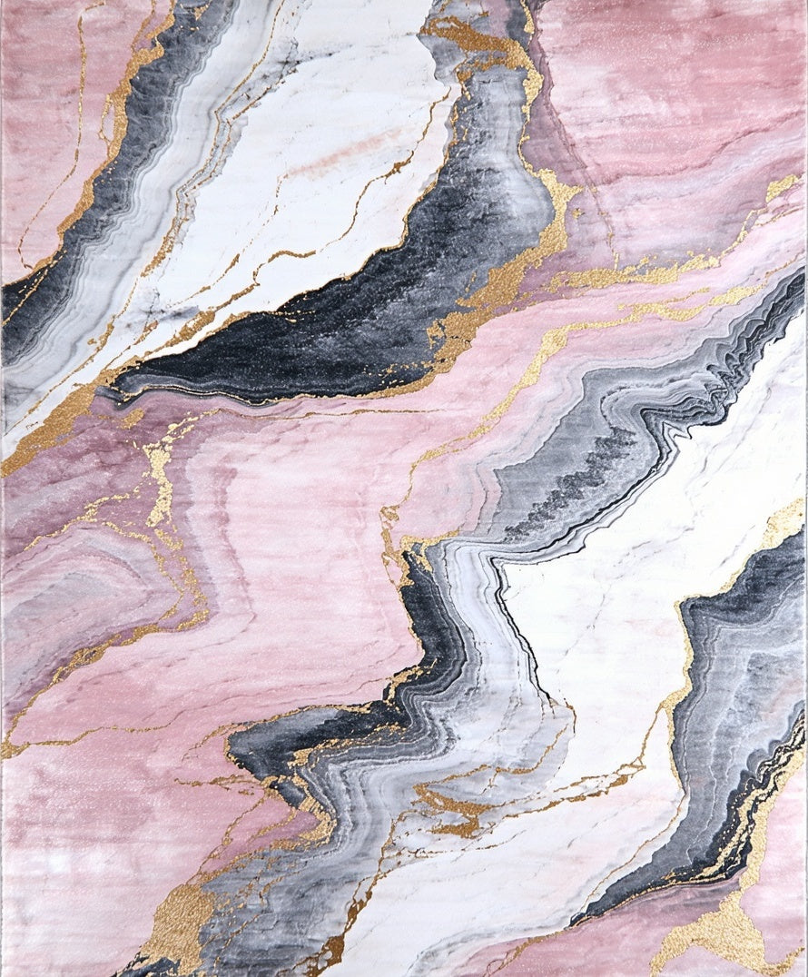 Flatwoven High Traffic Area Rug, Modern Marble Texture with Subtle Hues, Non Slip, Stain Resistant, Washable Area Rugs for Living Room, Bedroom (Pink) Overview: