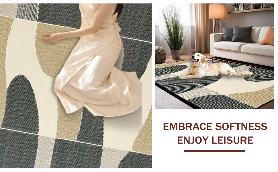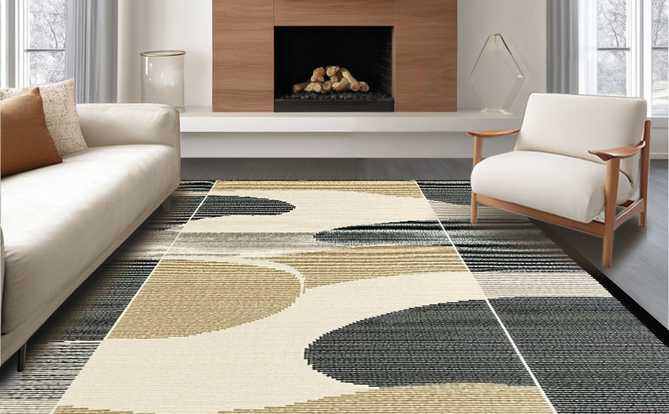 Ultra Soft Area Rug, Non Slip, Stain Resistant, Washable Area Rugs for Living Room, Bedroom, Modern Minimalist Oceanic Shape(Beige) Overview: