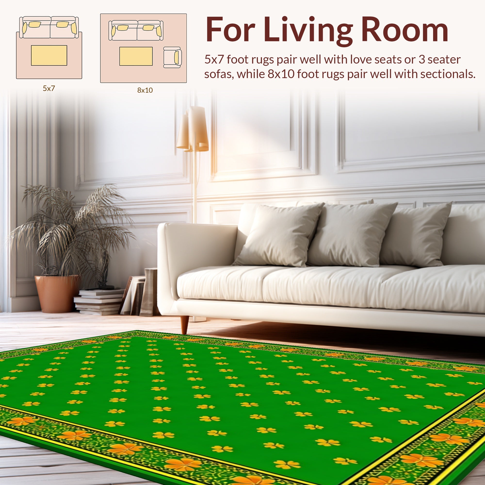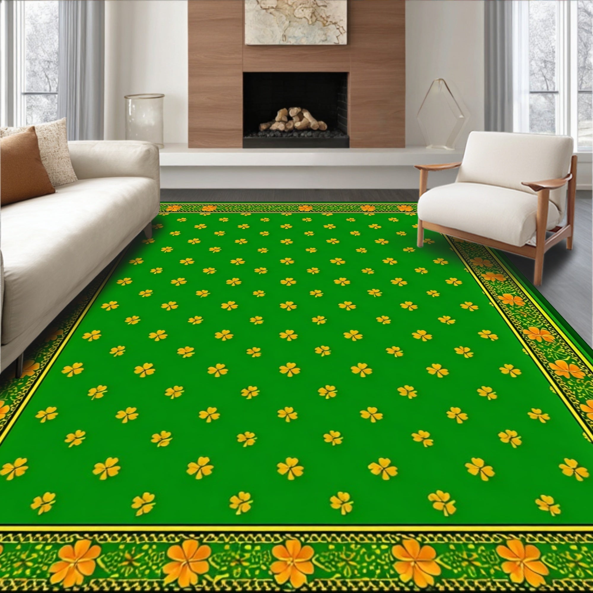 Flatwoven High Traffic Area Rug, Modern Minimalist St Patrick Theme, Non Slip, Stain Resistant, Washable Area Rugs for Living Room, Bedroom (Green) Overview: