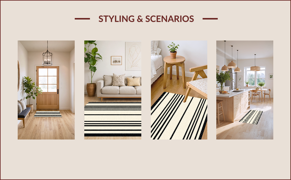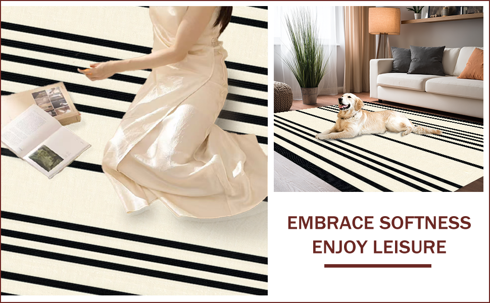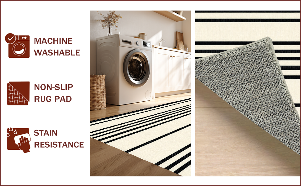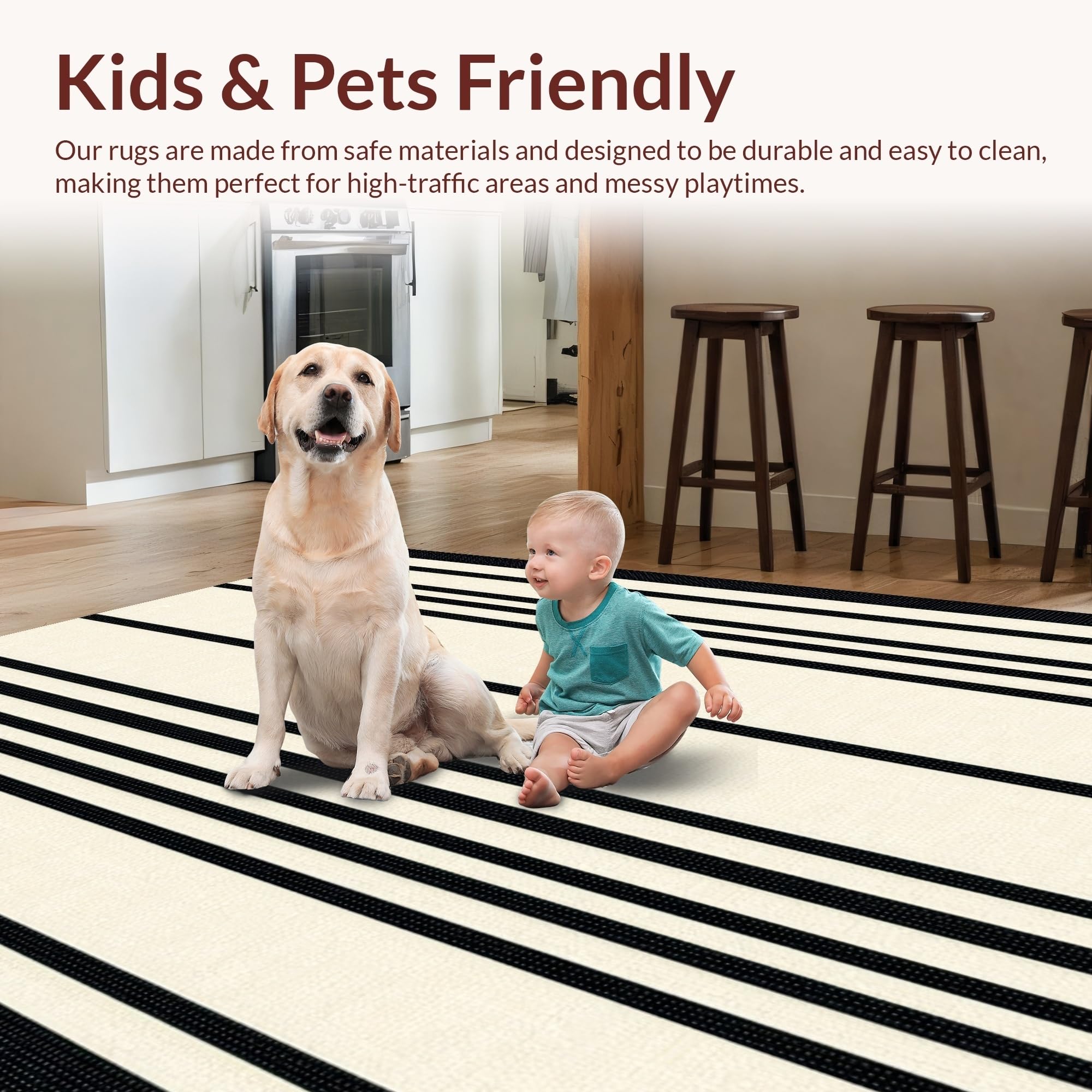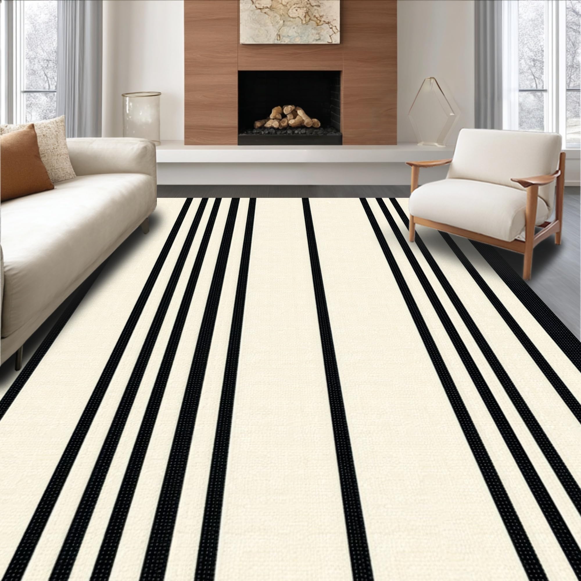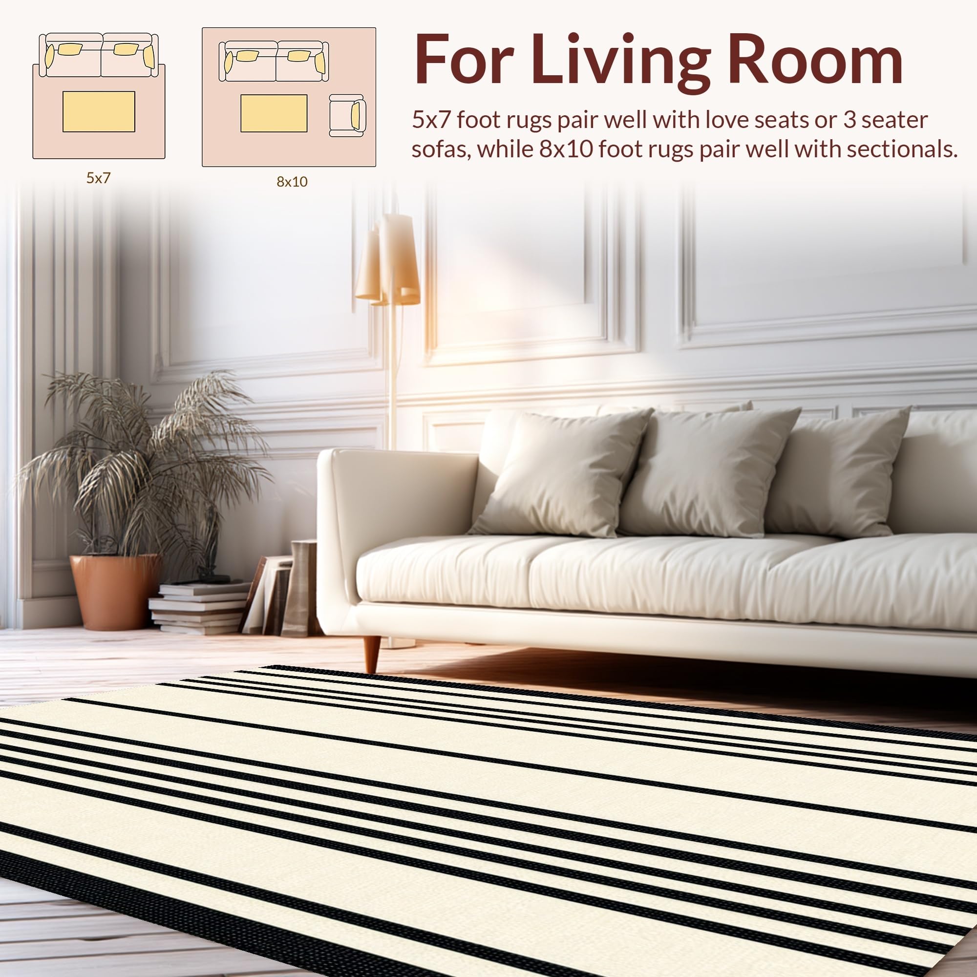 Ultra Soft Area Rug, Non Slip, Stain Resistant, Washable Area Rugs for Living Room, Bedroom, Modern Neutral Striped Living Room Non-Shedding Rug(Beige) Overview: