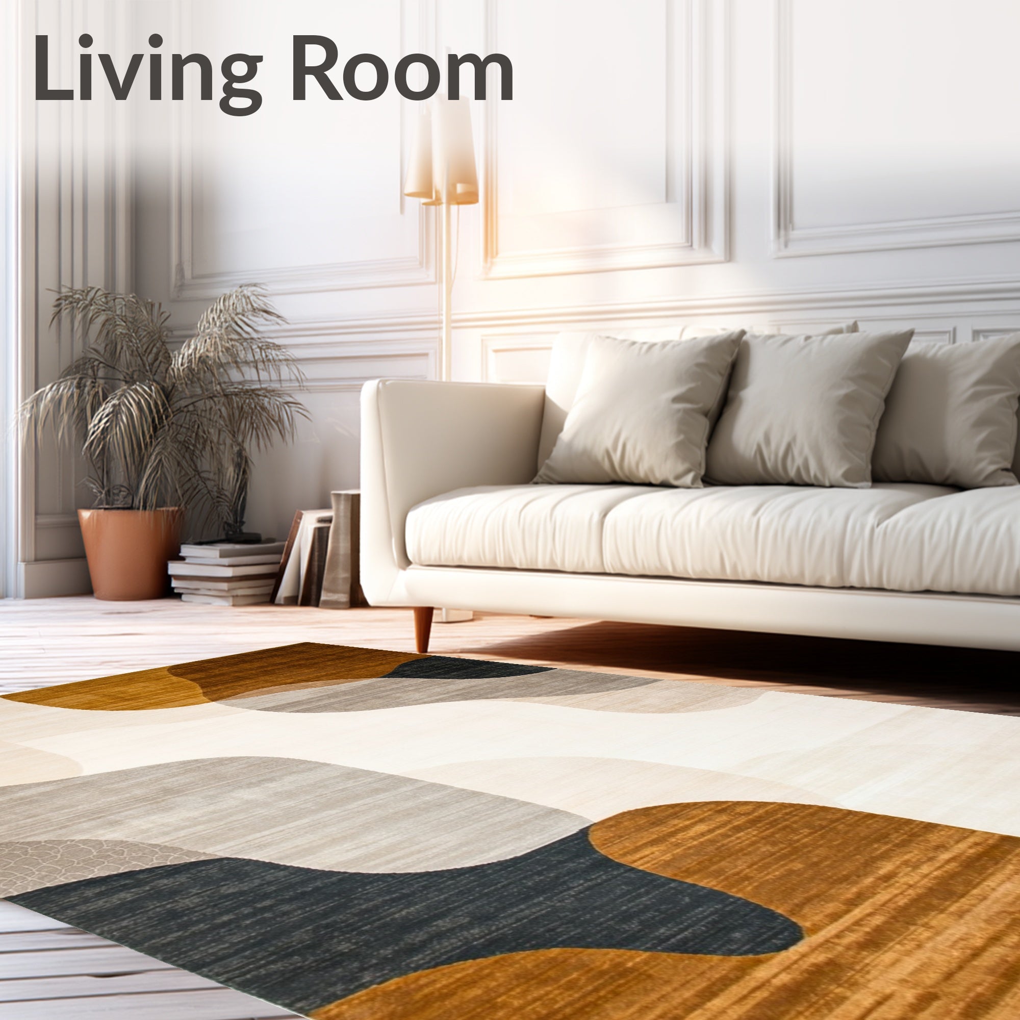 Modern Non Slip with Curved Lines and Earthy Neutral Palette(Beige)