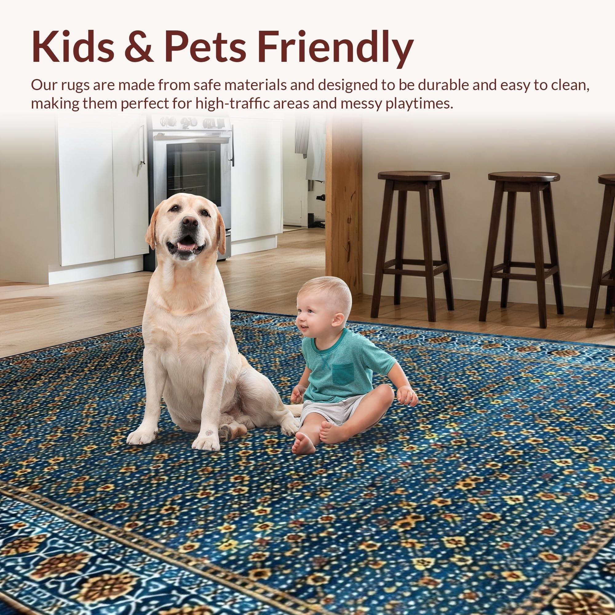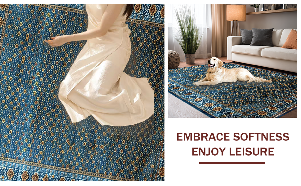 Ultra Soft Area Rug, Non Slip, Stain Resistant, Washable Area Rugs for Living Room, Bedroom, Modern Ogee Style with Cozy Vibes(Blue) Overview:
