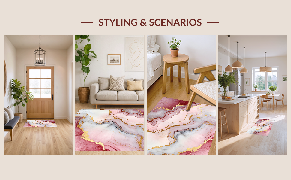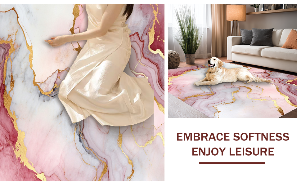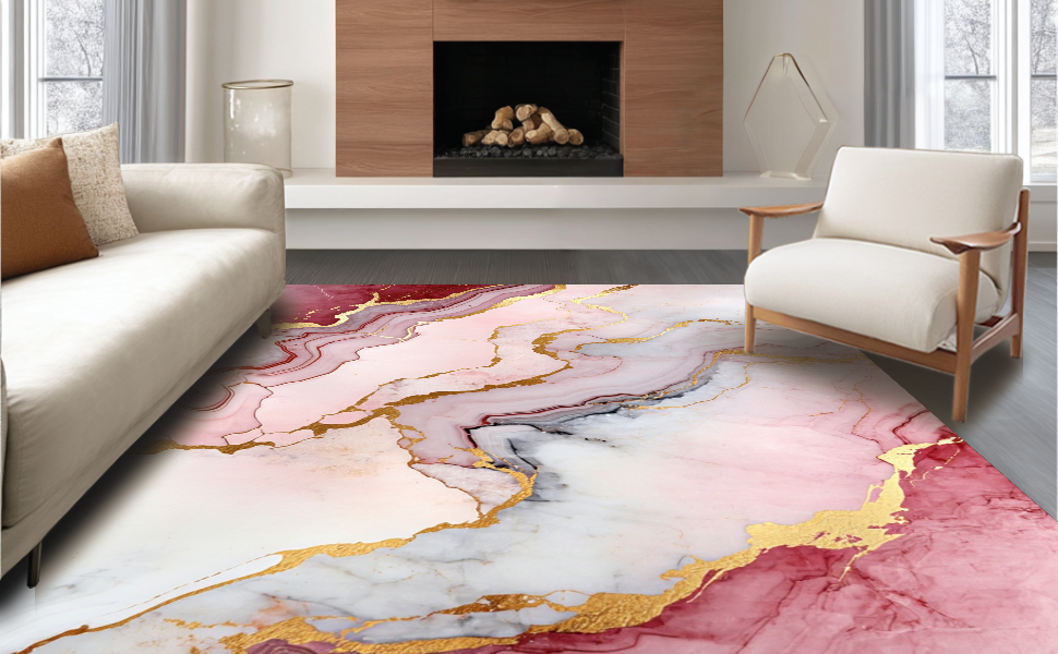 Ultra Soft Area Rug, Non Slip, Stain Resistant, Washable Area Rugs for Living Room, Bedroom, Modern Opulent Swirl Aesthetic(Pink) Overview: