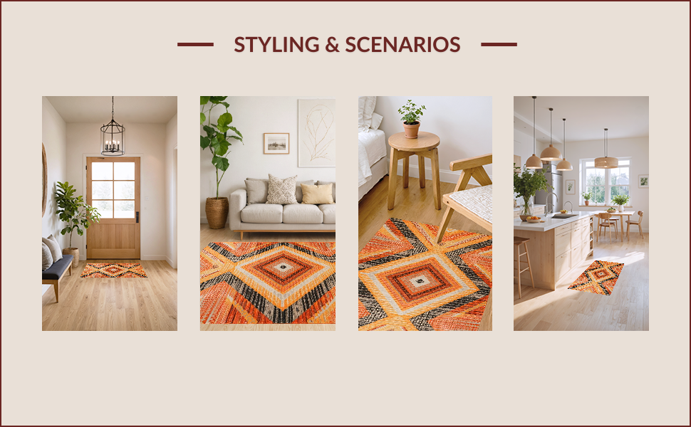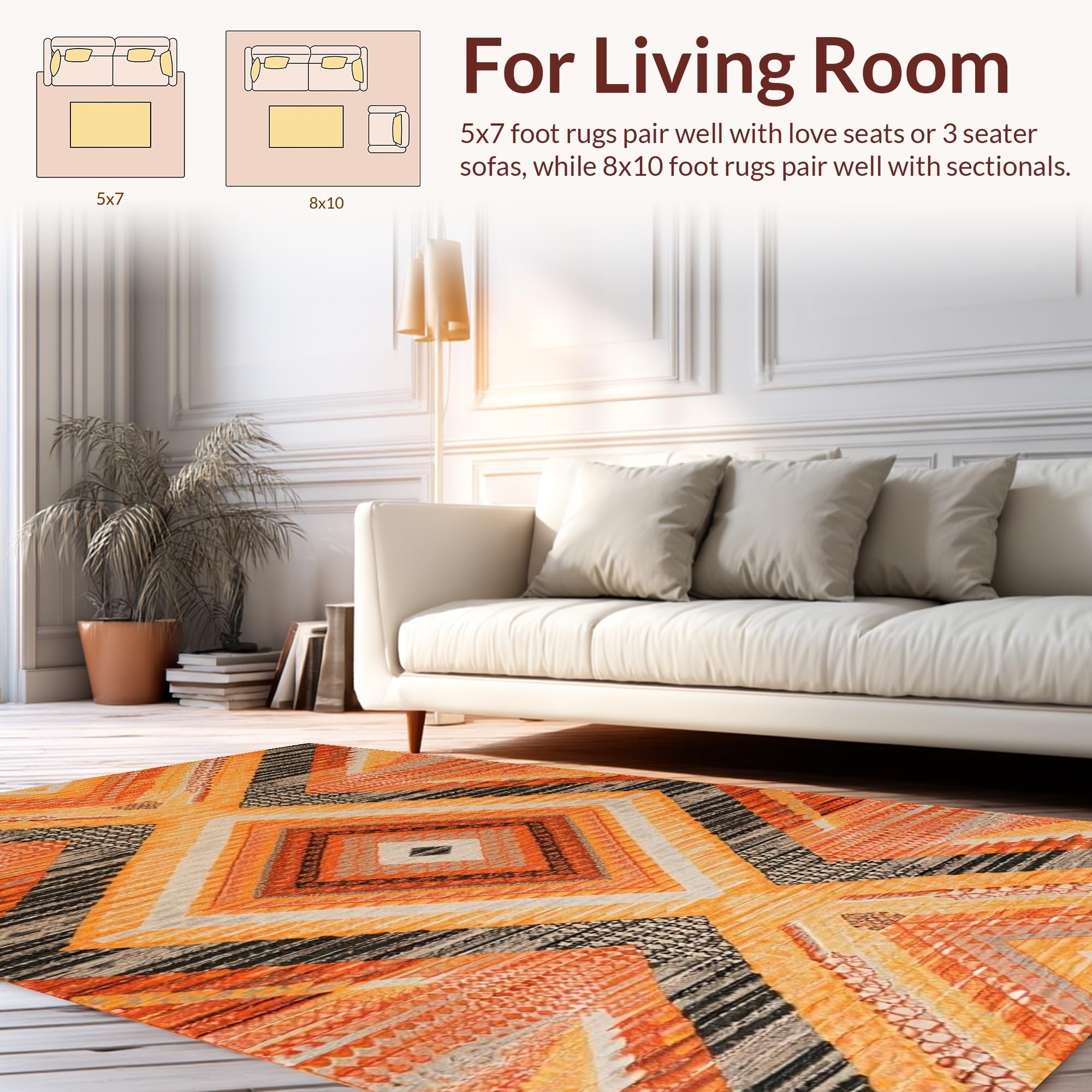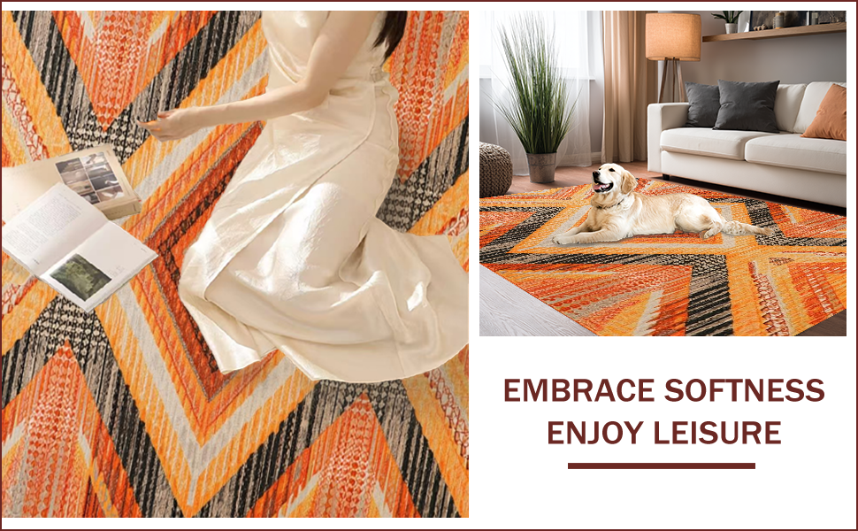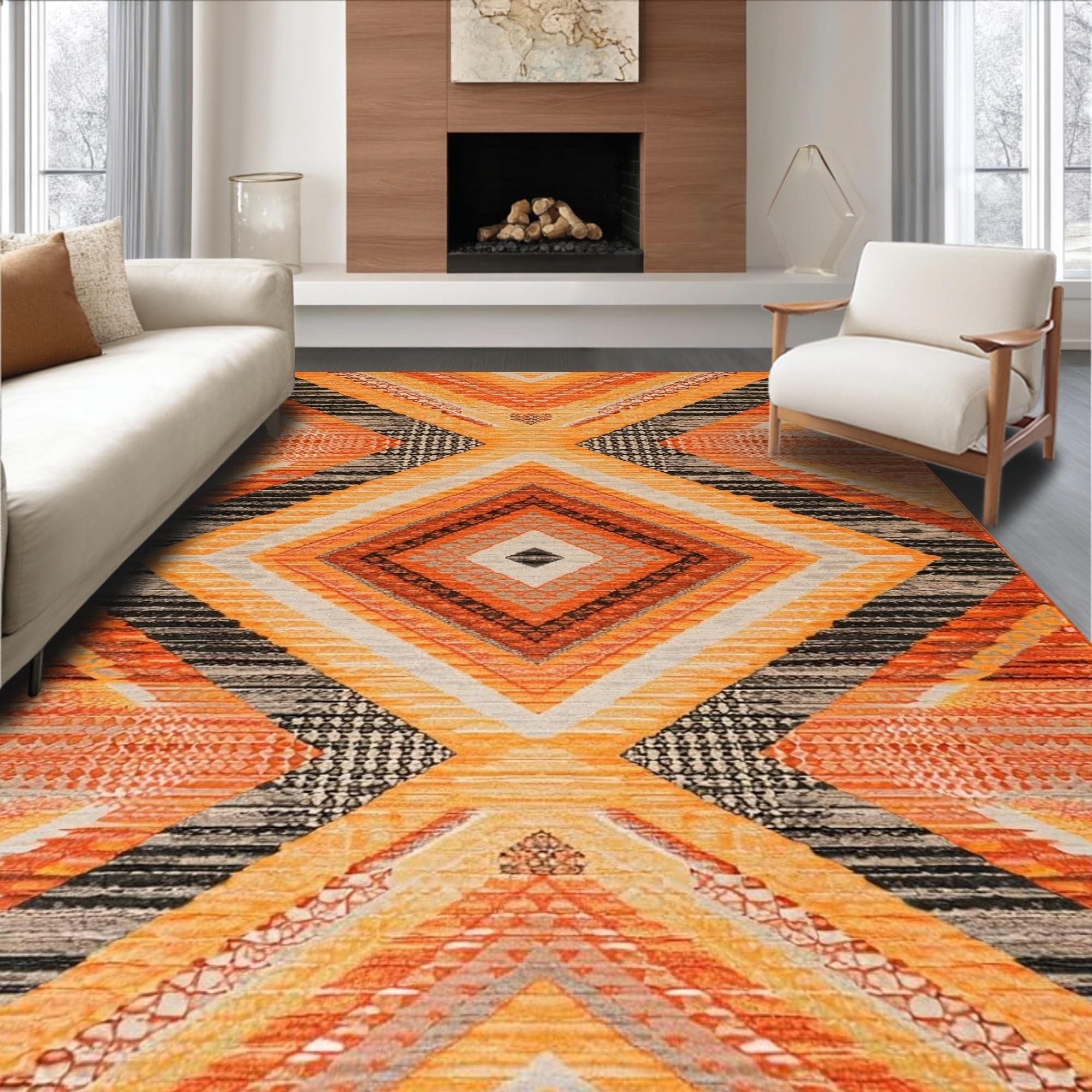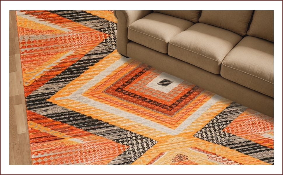 Ultra Soft Area Rug, Non Slip, Stain Resistant, Washable Area Rugs for Living Room, Bedroom, Modern Orange Lattice Aesthetic(Orange) Overview: