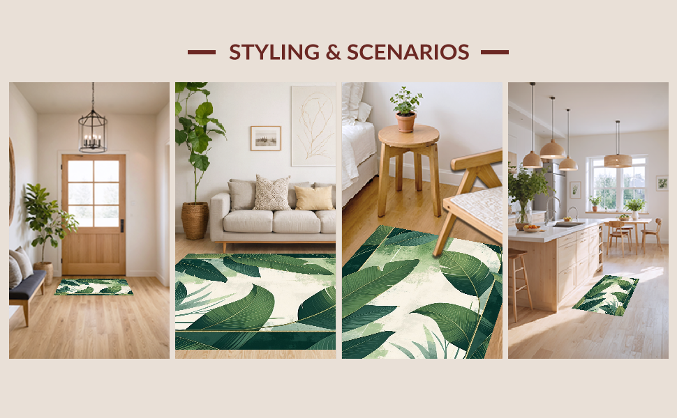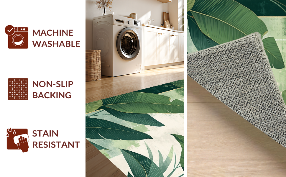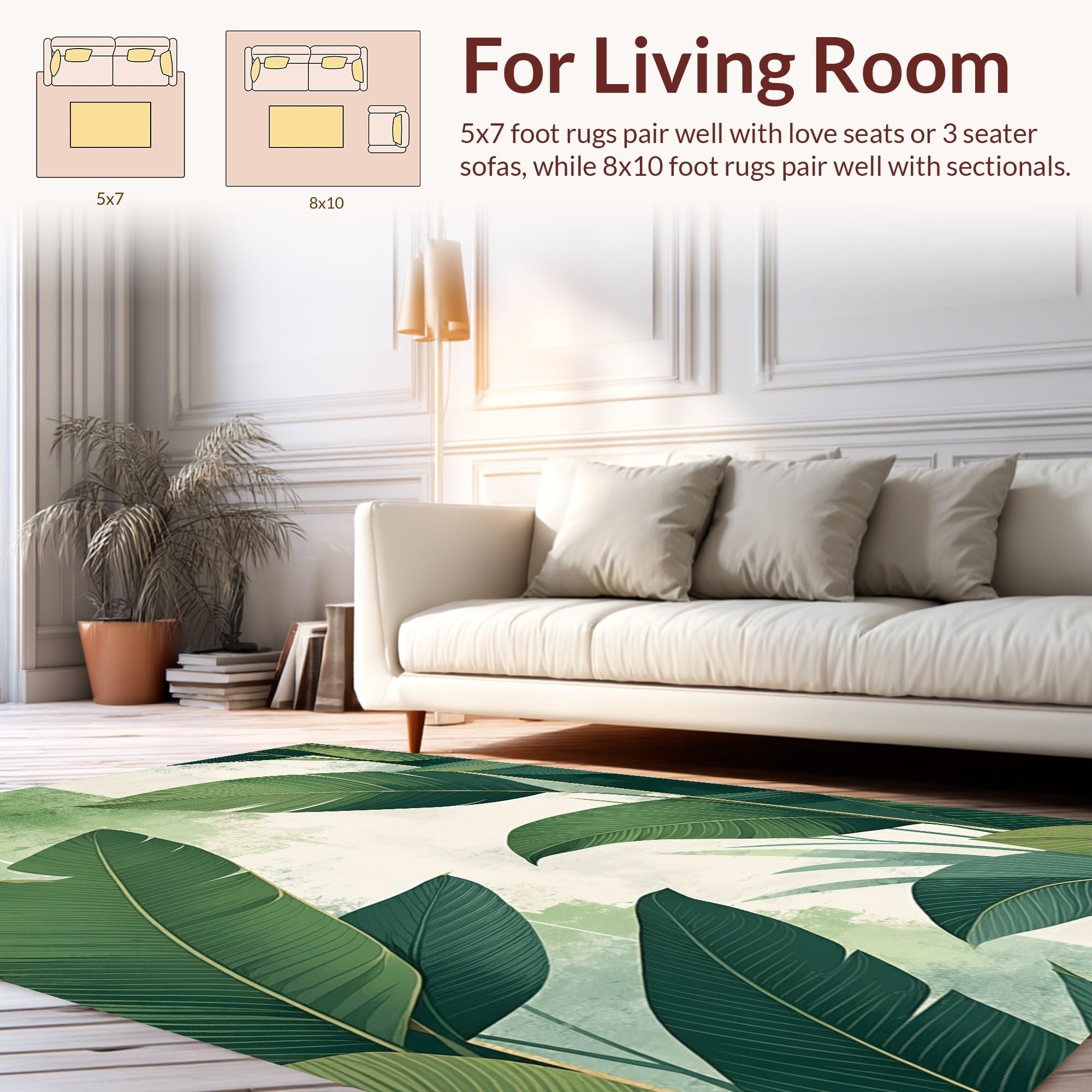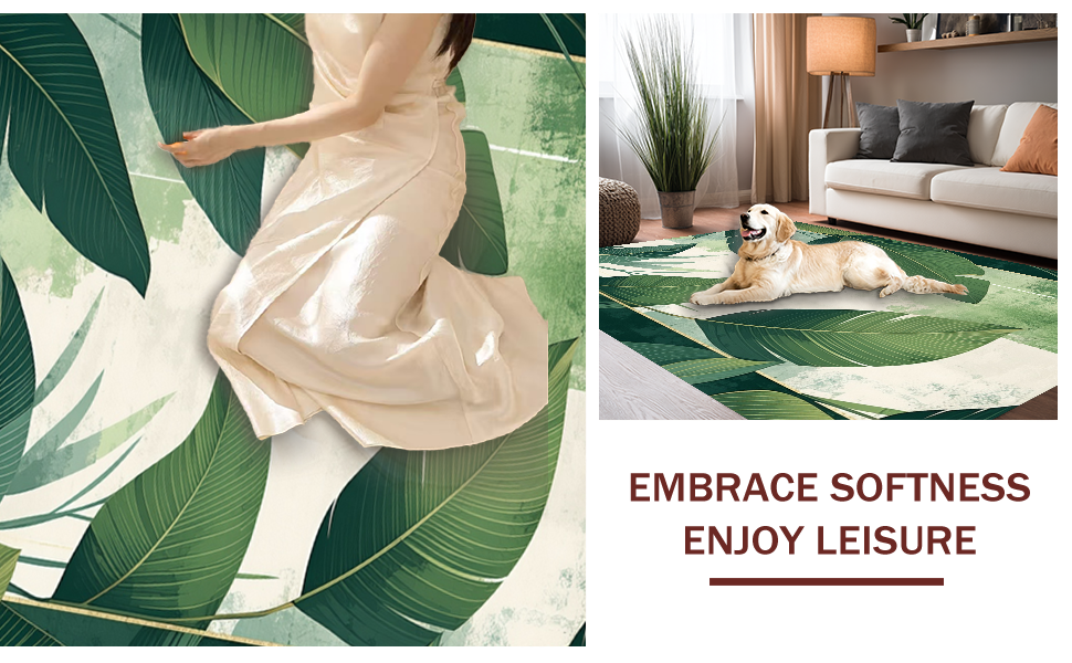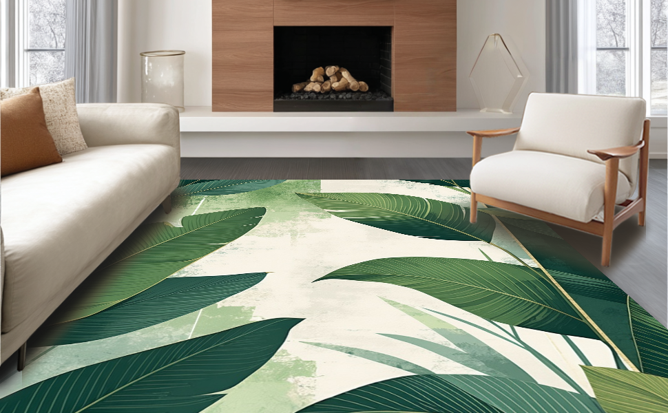 Ultra Soft Area Rug, Non Slip, Stain Resistant, Washable Area Rugs for Living Room, Bedroom, Modern Organic Leaf Design(Green) Overview: