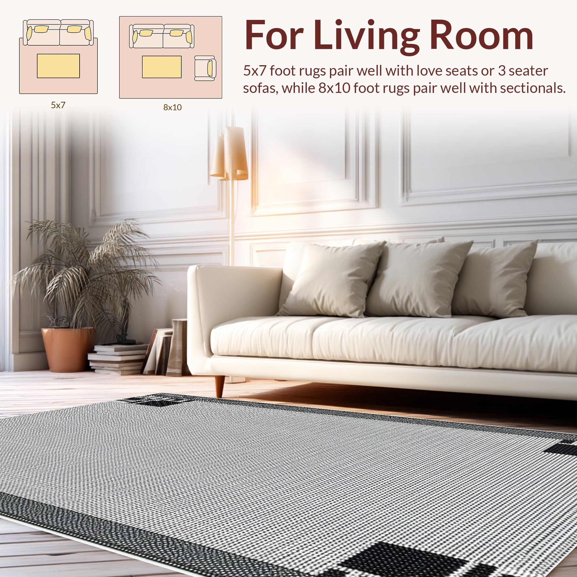 Ultra Soft Area Rug, Non Slip, Stain Resistant, Washable Area Rugs for Living Room, Bedroom, Modern Outdoor Balcony Camping Waterproof Mat(Black) Overview: