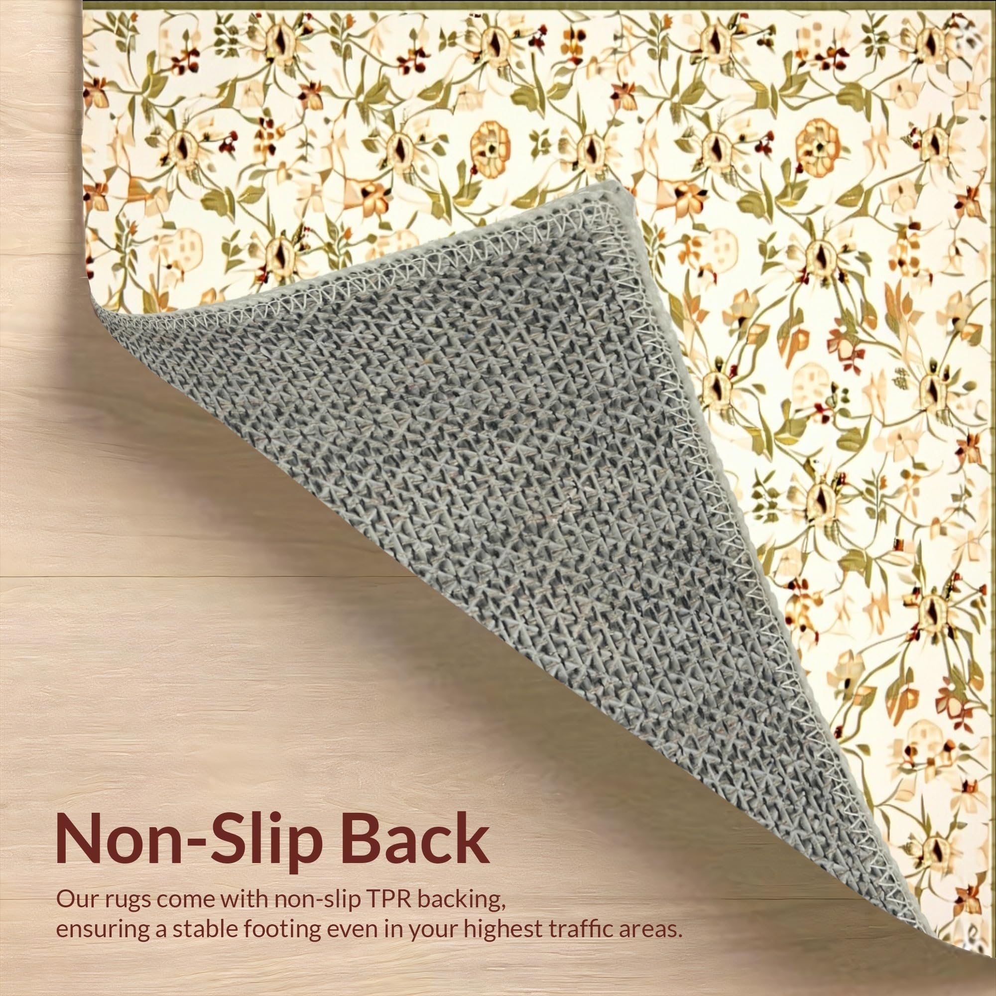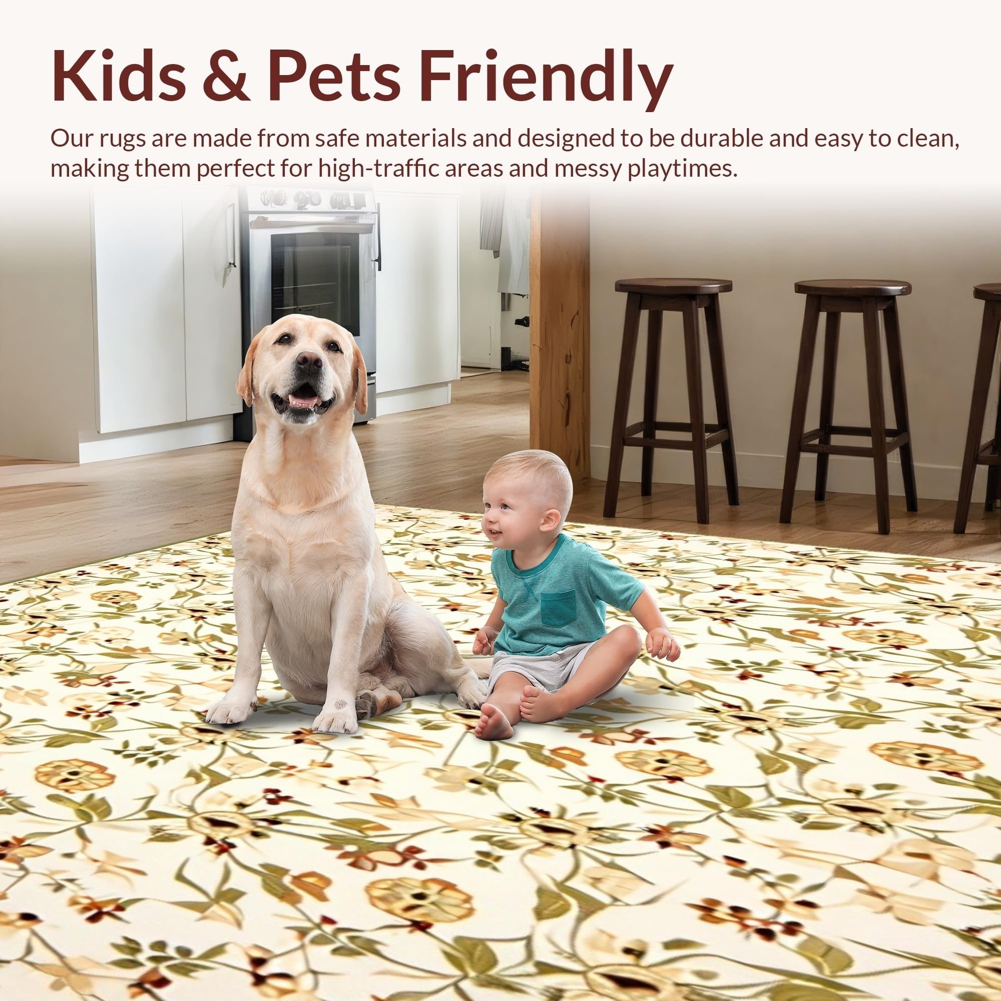 Ultra Soft Area Rug, Non Slip, Stain Resistant, Washable Area Rugs for Living Room, Bedroom, Modern Oval Beige Area with Khaki Floral Geometry and Subtle Boho Touches(Beige) Overview: