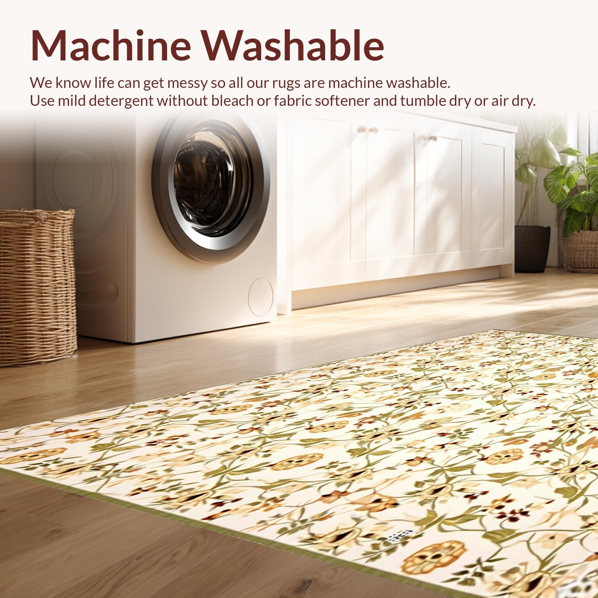- Machine Washable: Our rugs can be easily thrown in the wash machine.