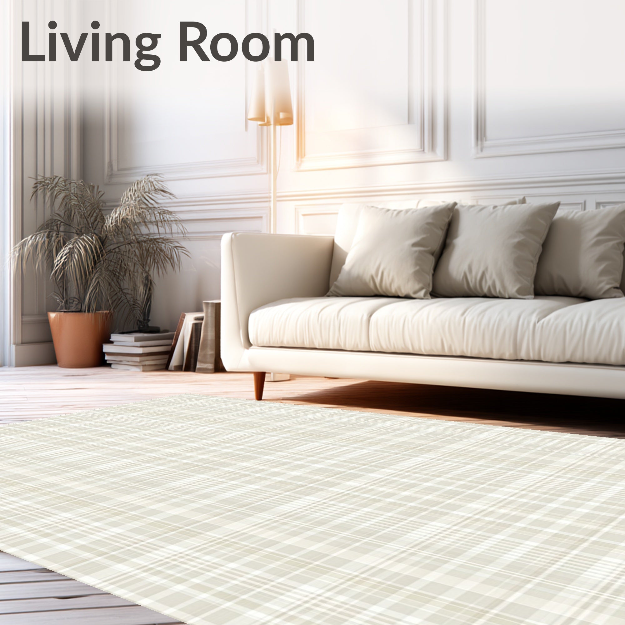 Flatwoven High Traffic Area Rug, Modern Plaid Motif – Light Beige Checkerboard Floor, Non Slip, Stain Resistant, Washable Area Rugs for Living Room, Bedroom (Beige) Overview: