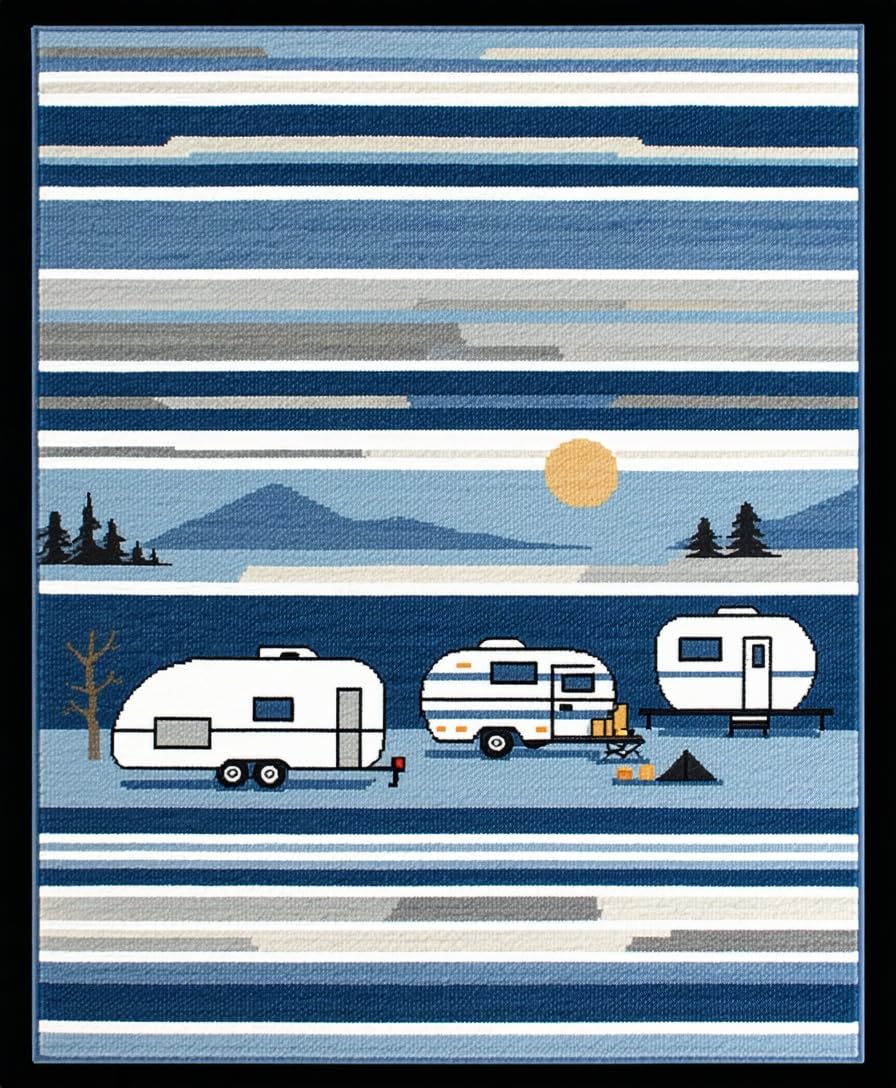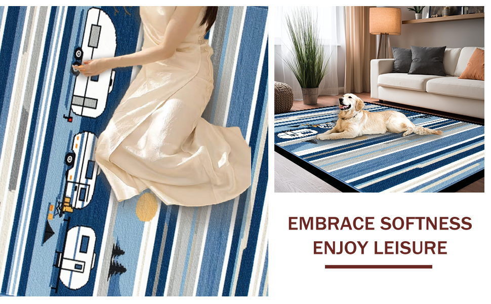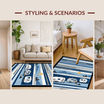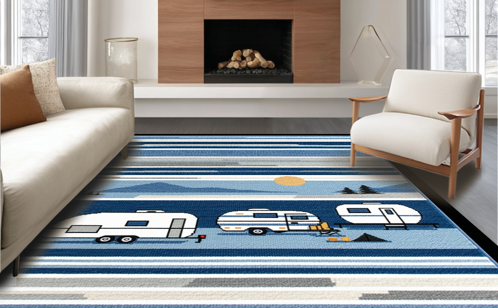 Ultra Soft Area Rug, Non Slip, Stain Resistant, Washable Area Rugs for Living Room, Bedroom, Modern Playful Traveler's Motif(Blue) Overview: