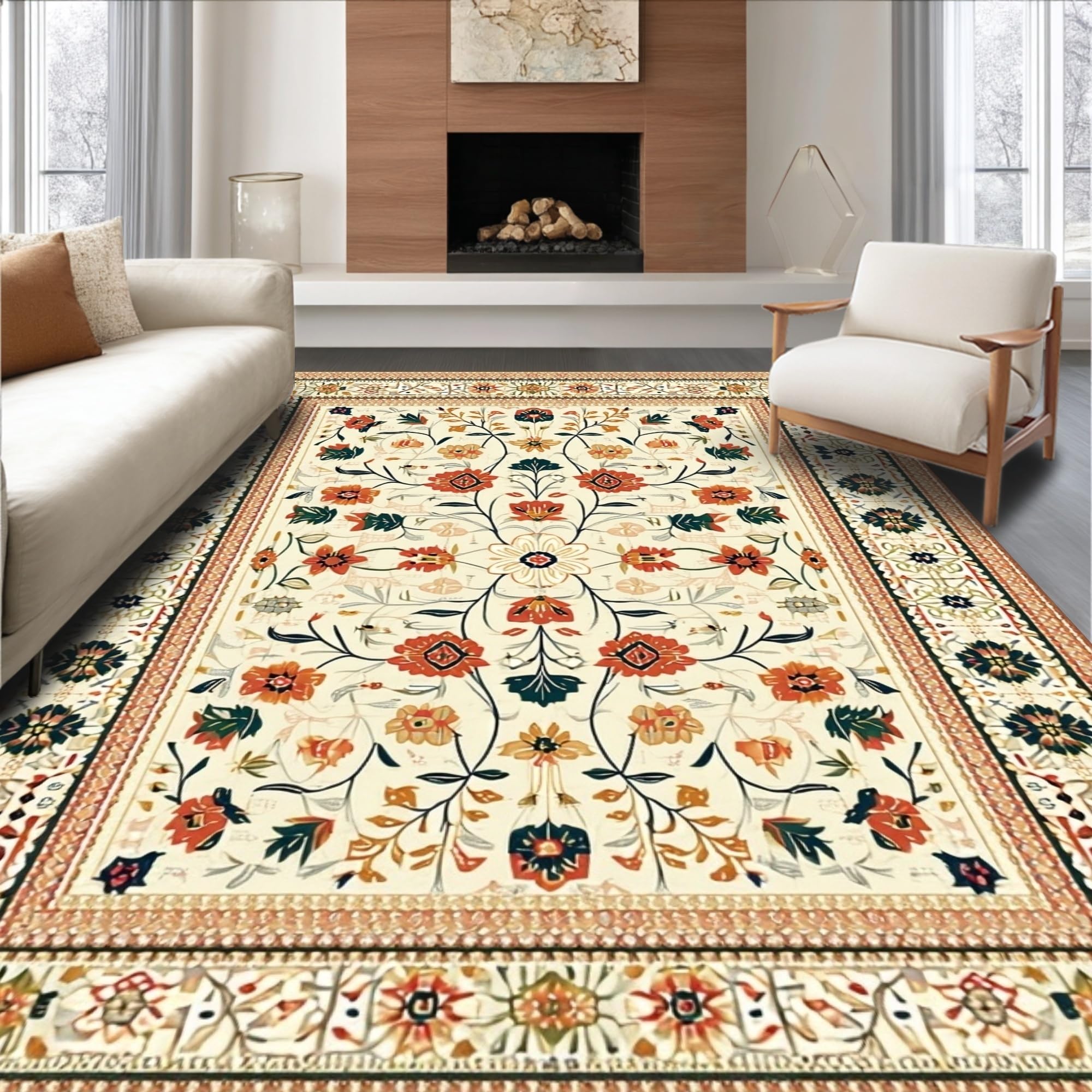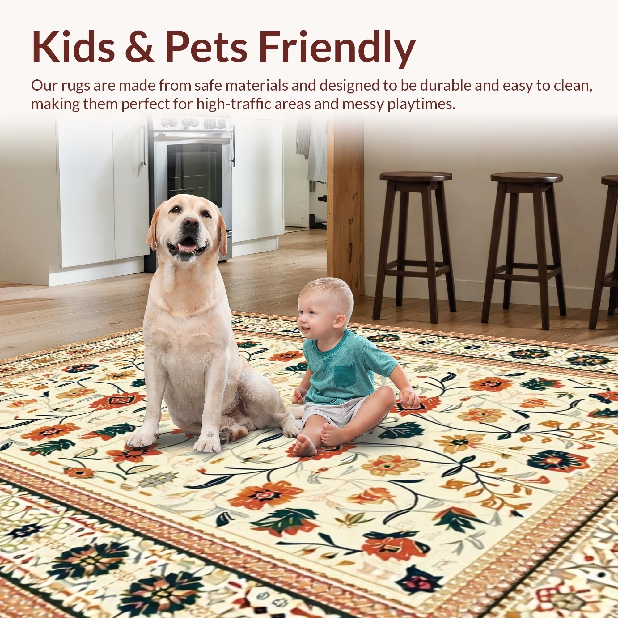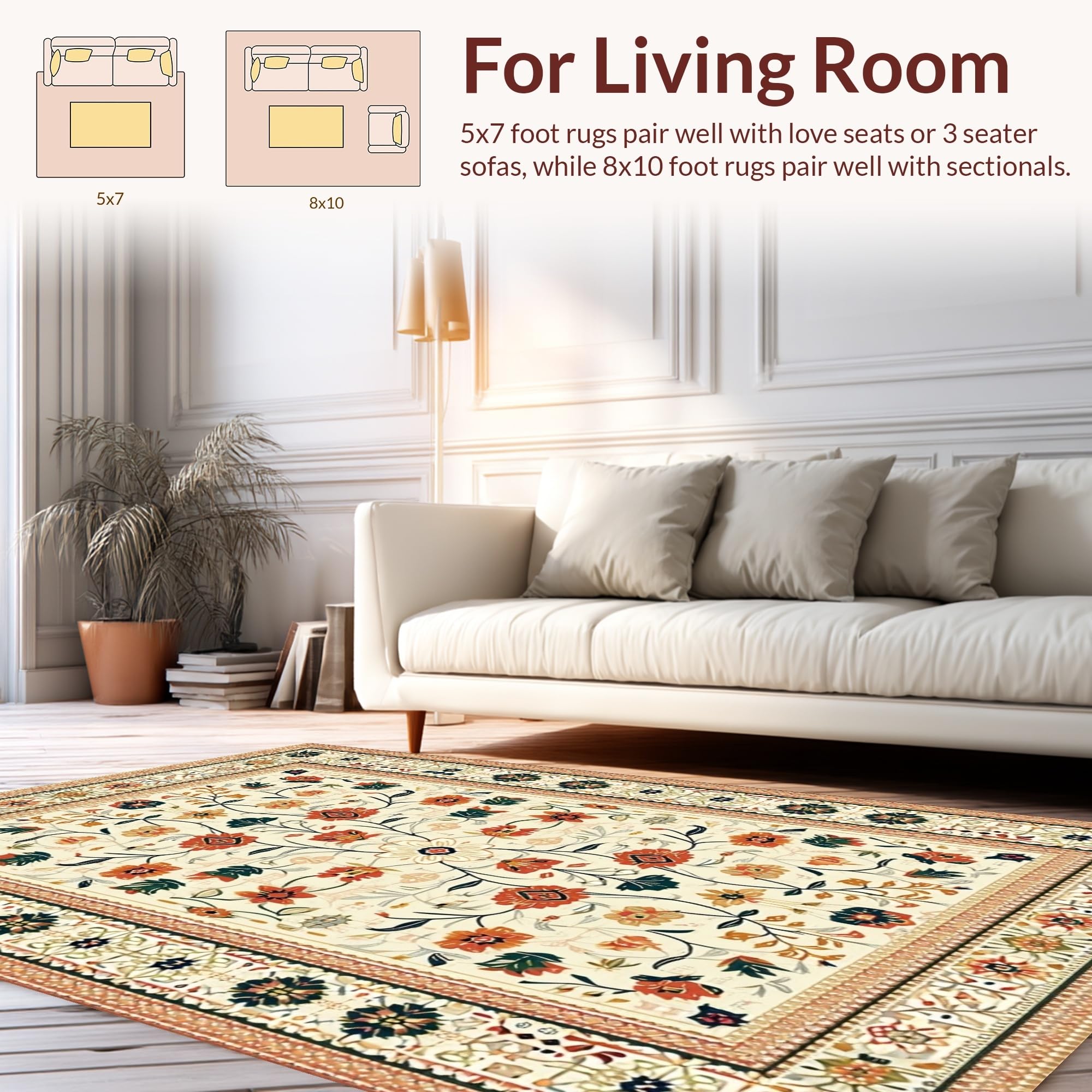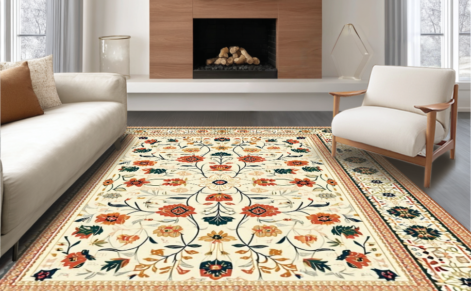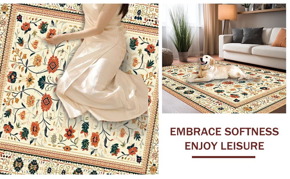 Ultra Soft Area Rug, Non Slip, Stain Resistant, Washable Area Rugs for Living Room, Bedroom, Modern Soft-Hued Petal Print(Ivory) Overview: