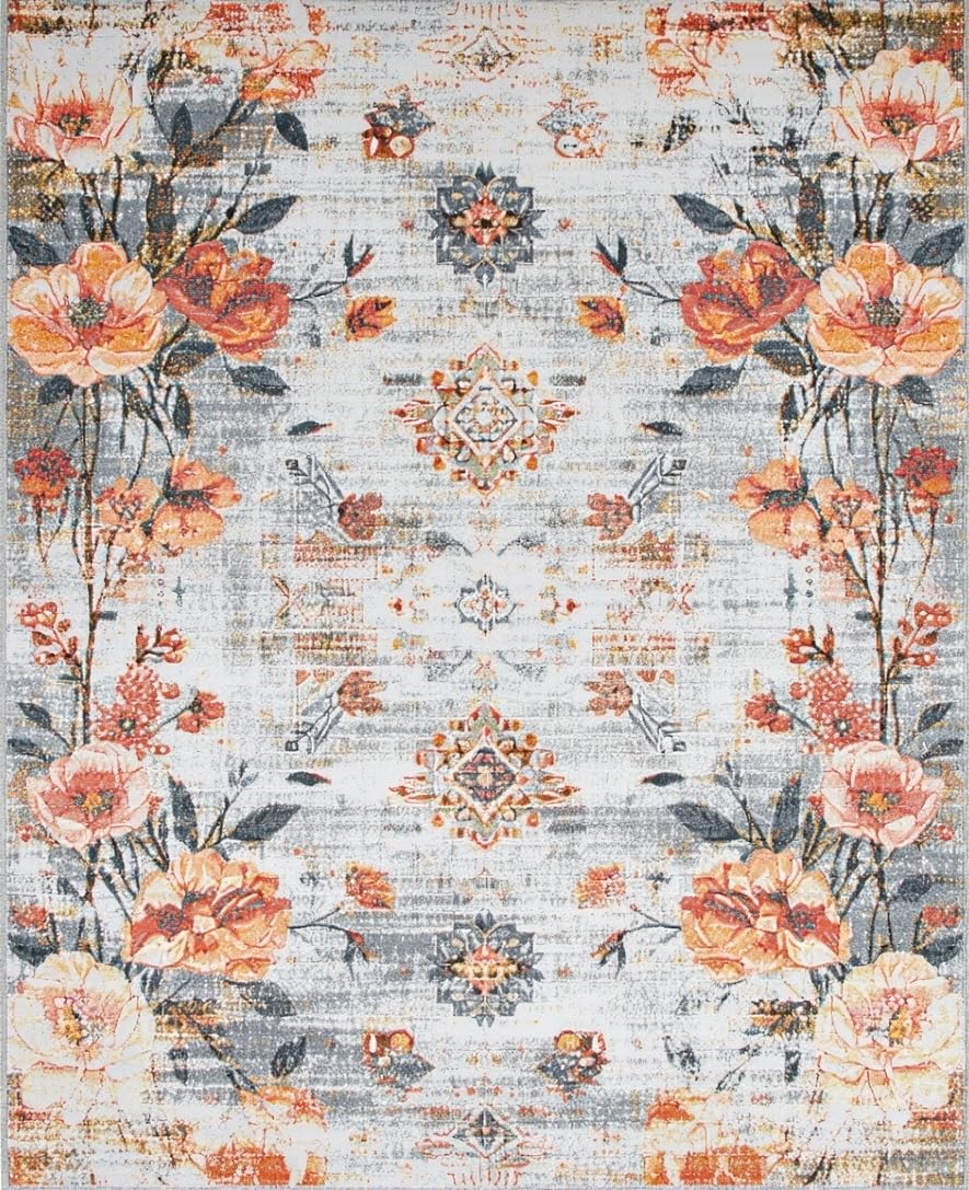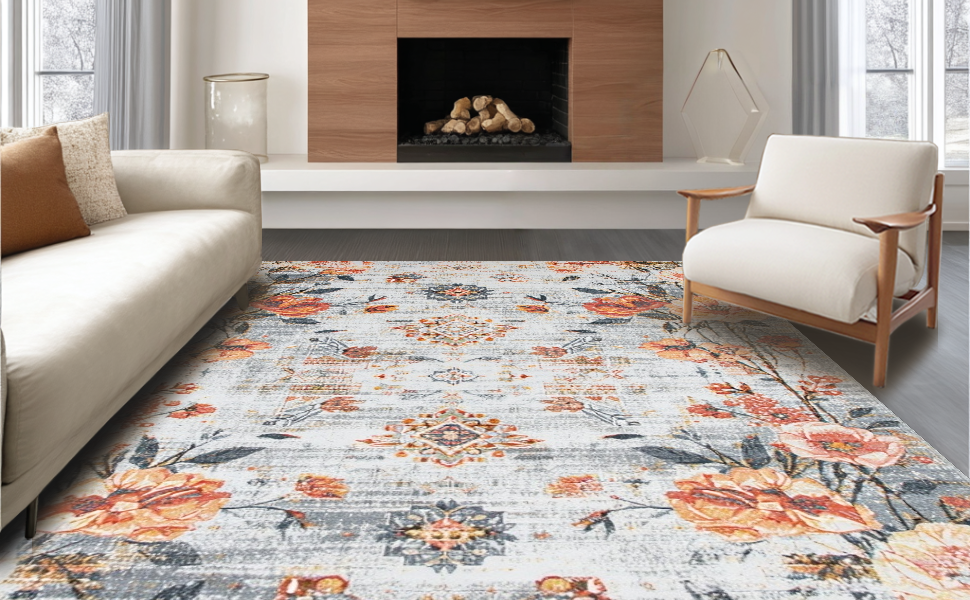 Ultra Soft Area Rug, Non Slip, Stain Resistant, Washable Area Rugs for Living Room, Bedroom, Modern Soft Symmetrical Elements(Gray) Overview:
