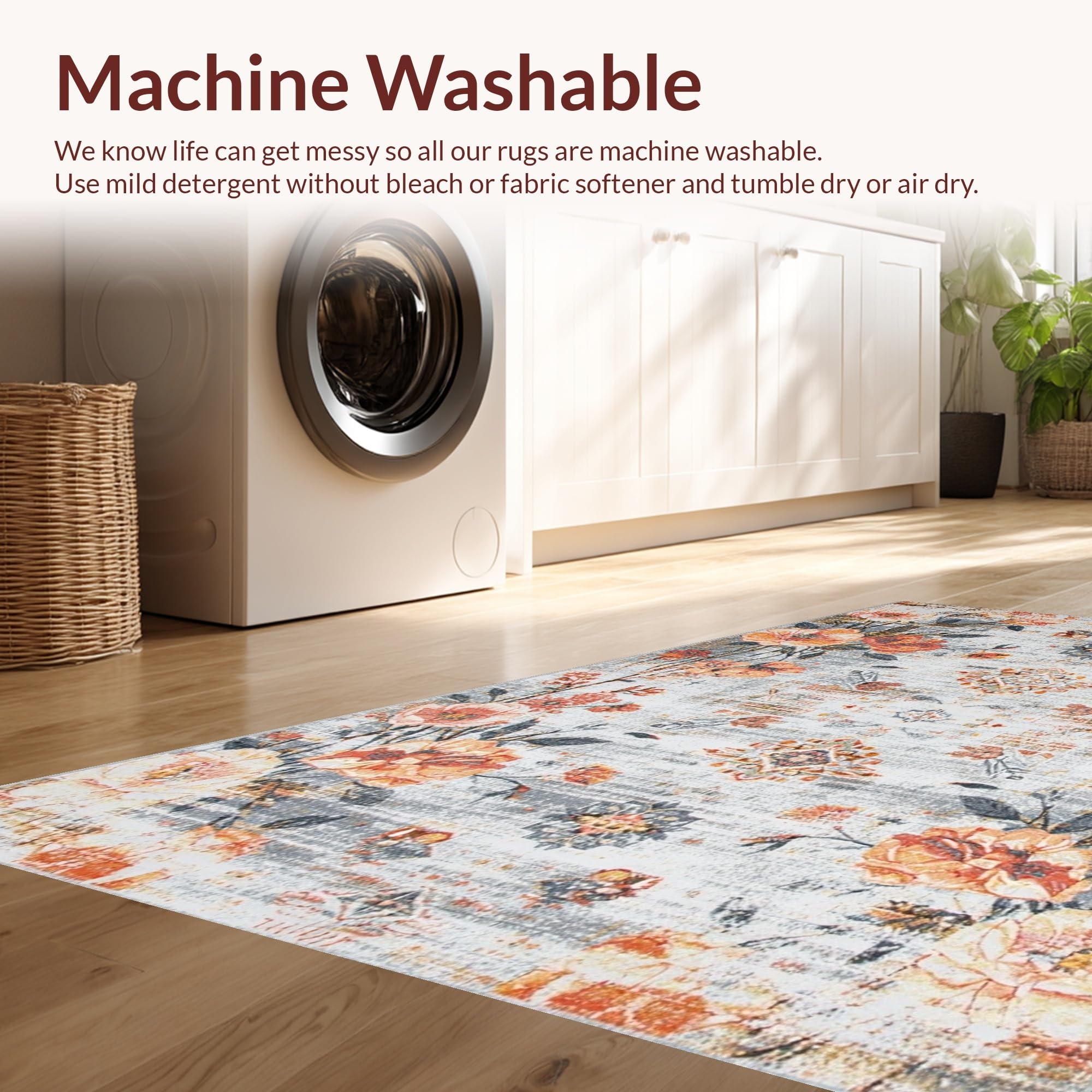 - Machine Washable: Our rugs can be easily thrown in the wash machine.