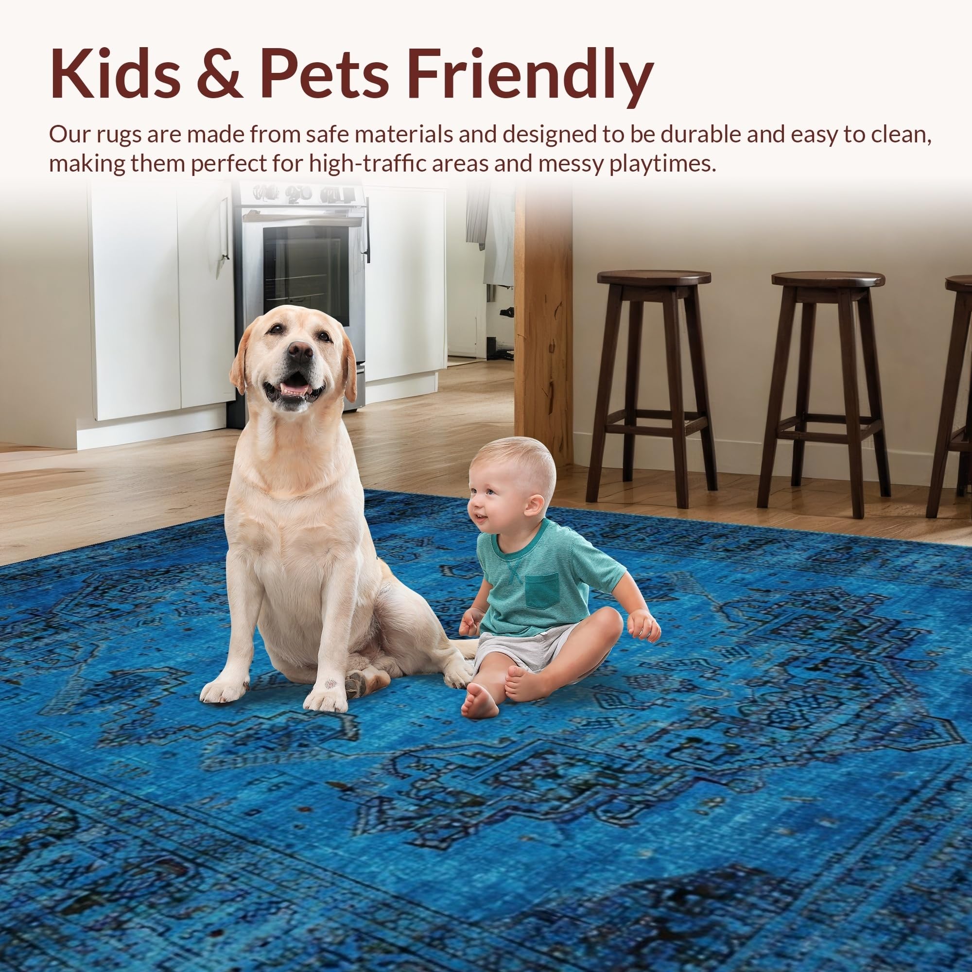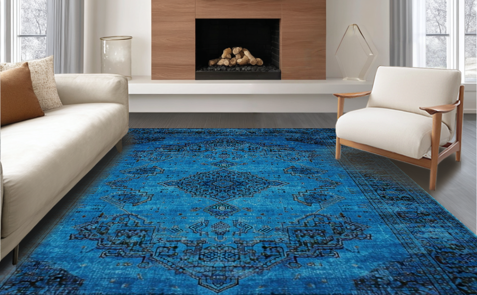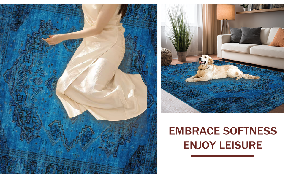 Ultra Soft Area Rug, Non Slip, Stain Resistant, Washable Area Rugs for Living Room, Bedroom, Modern Soft Symmetry Appeal(Blue) Overview: