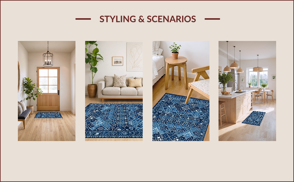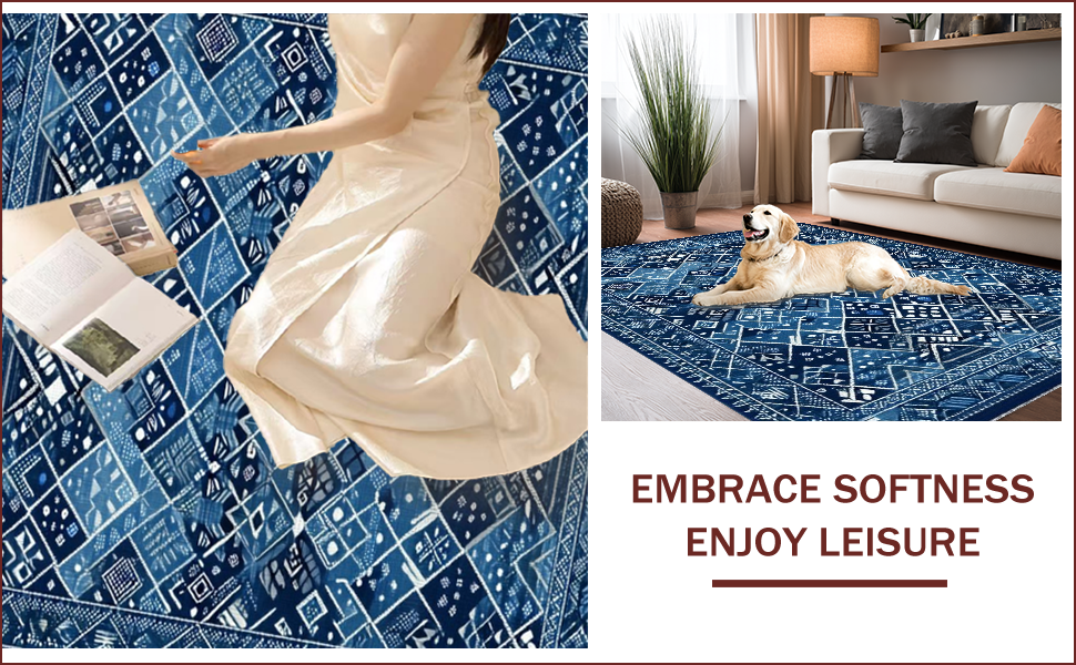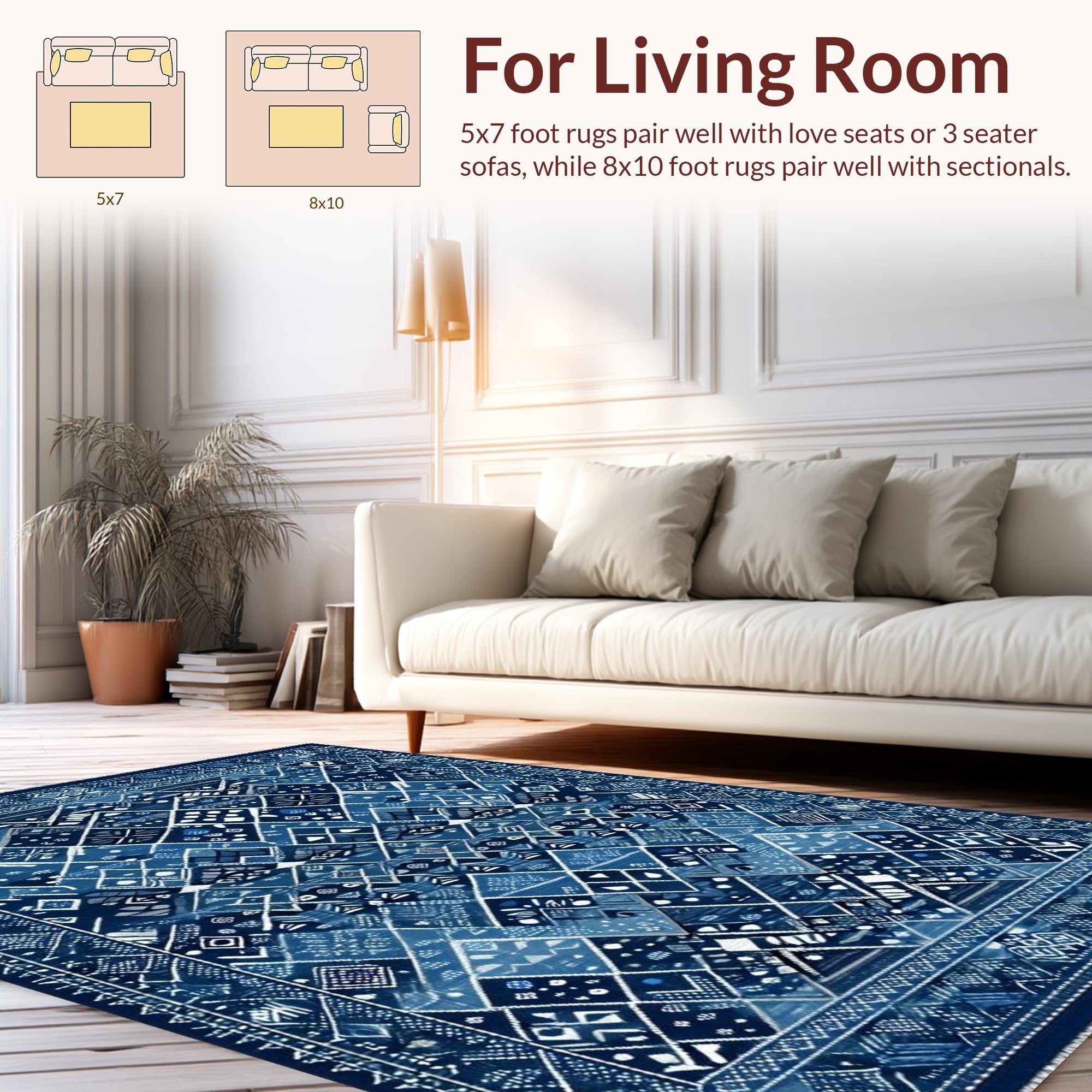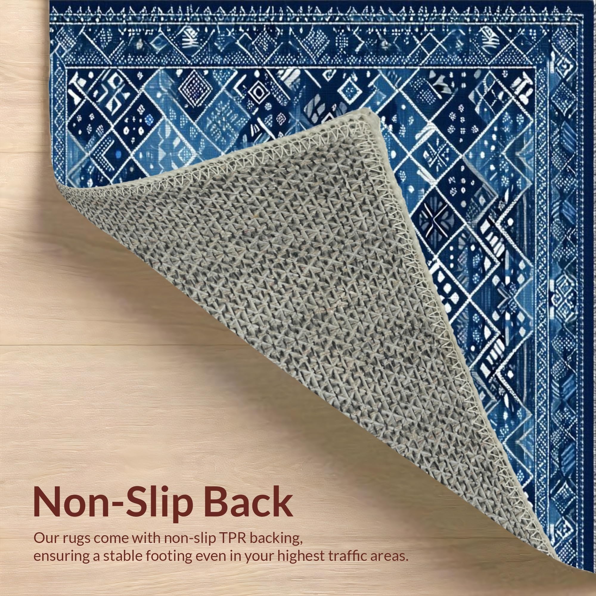 Ultra Soft Area Rug, Non Slip, Stain Resistant, Washable Area Rugs for Living Room, Bedroom, Modern Solid Blue Textured Aesthetic(Blue) Overview: