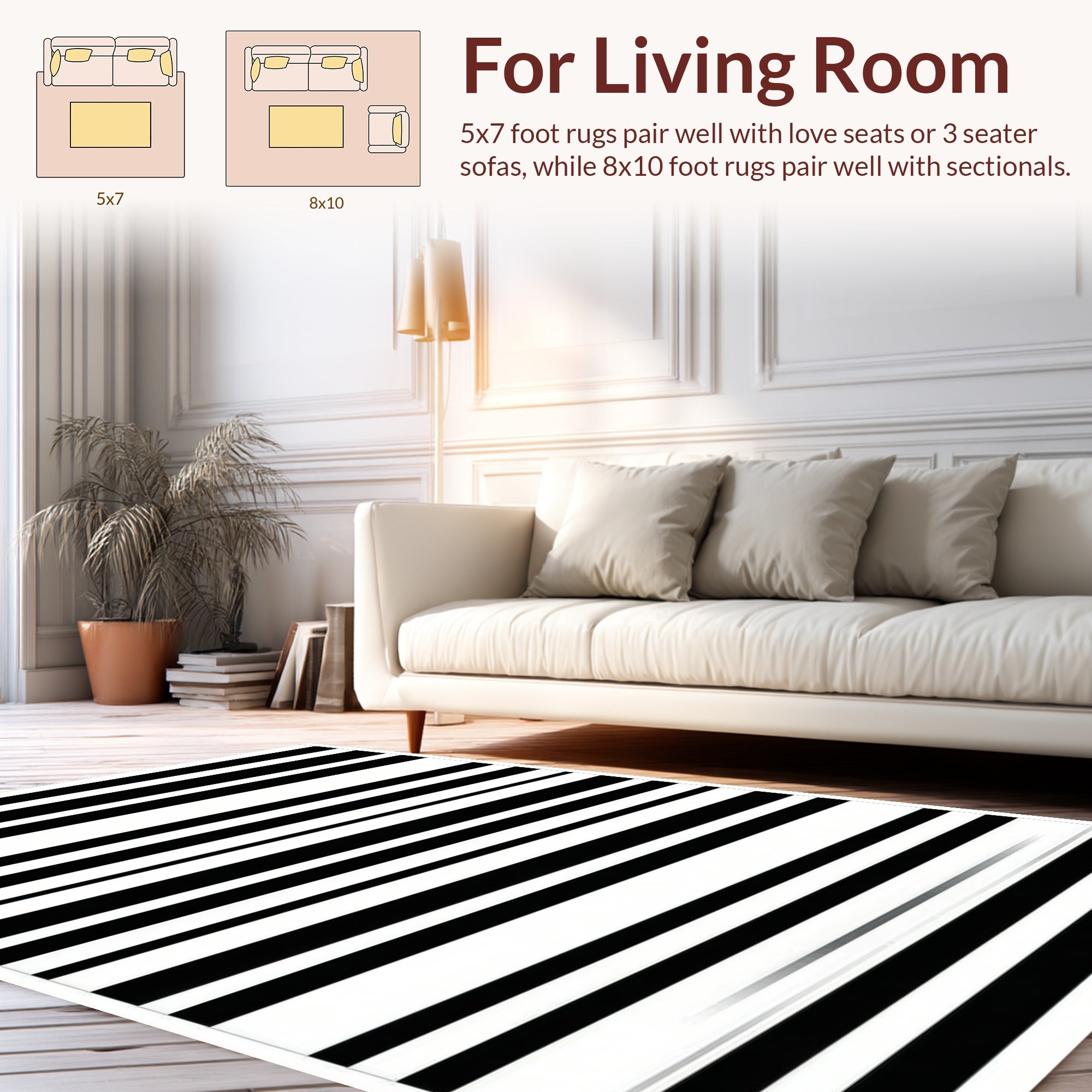 Ultra Soft Area Rug, Non Slip, Stain Resistant, Washable Area Rugs for Living Room, Bedroom, Modern Stripe Harmony Rug Minimalist Lines Contrasting Bands Contemporary Decor(Gray) Overview: