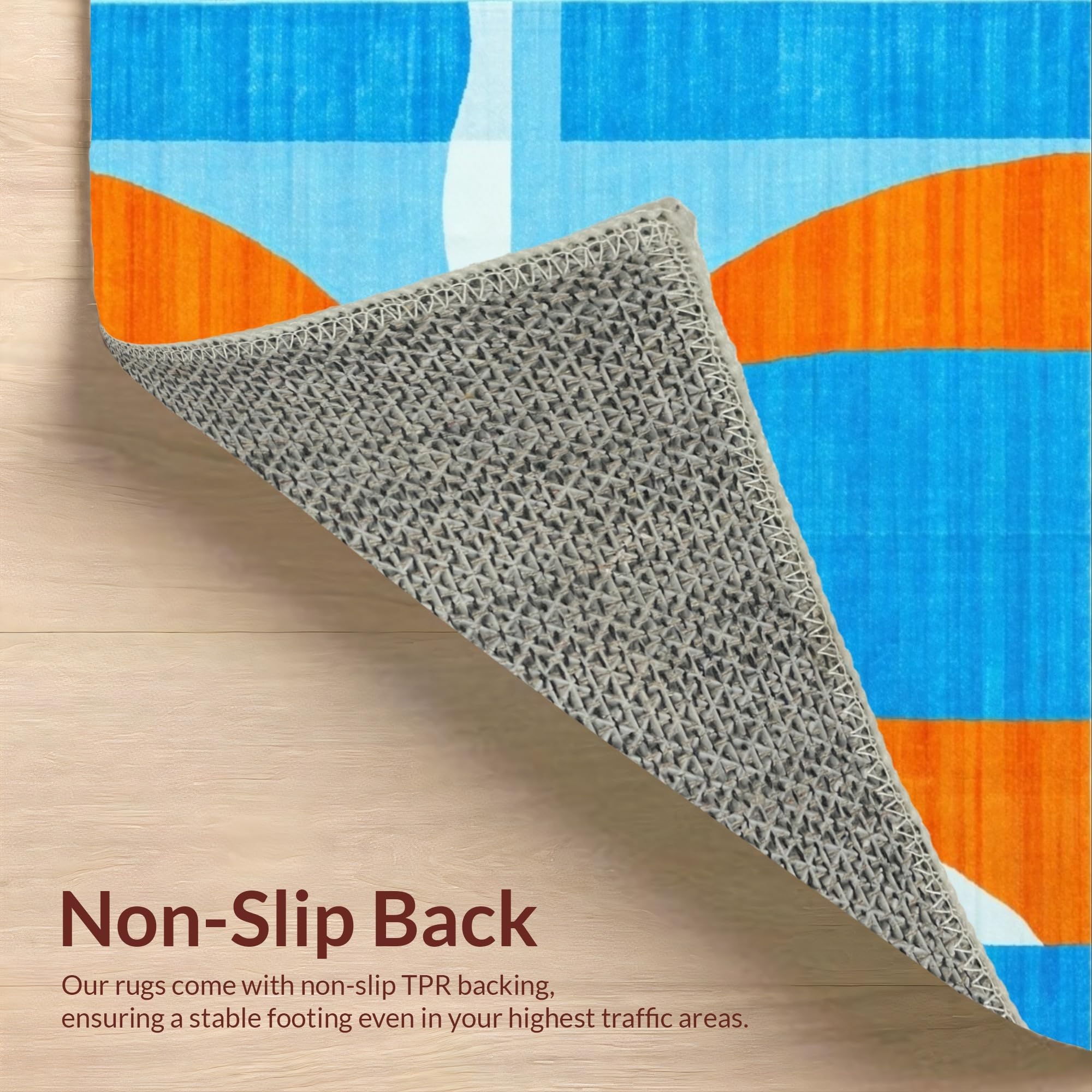 Ultra Soft Area Rug, Non Slip, Stain Resistant, Washable Area Rugs for Living Room, Bedroom, Modern Striped Nautical Design(Blue) Overview: