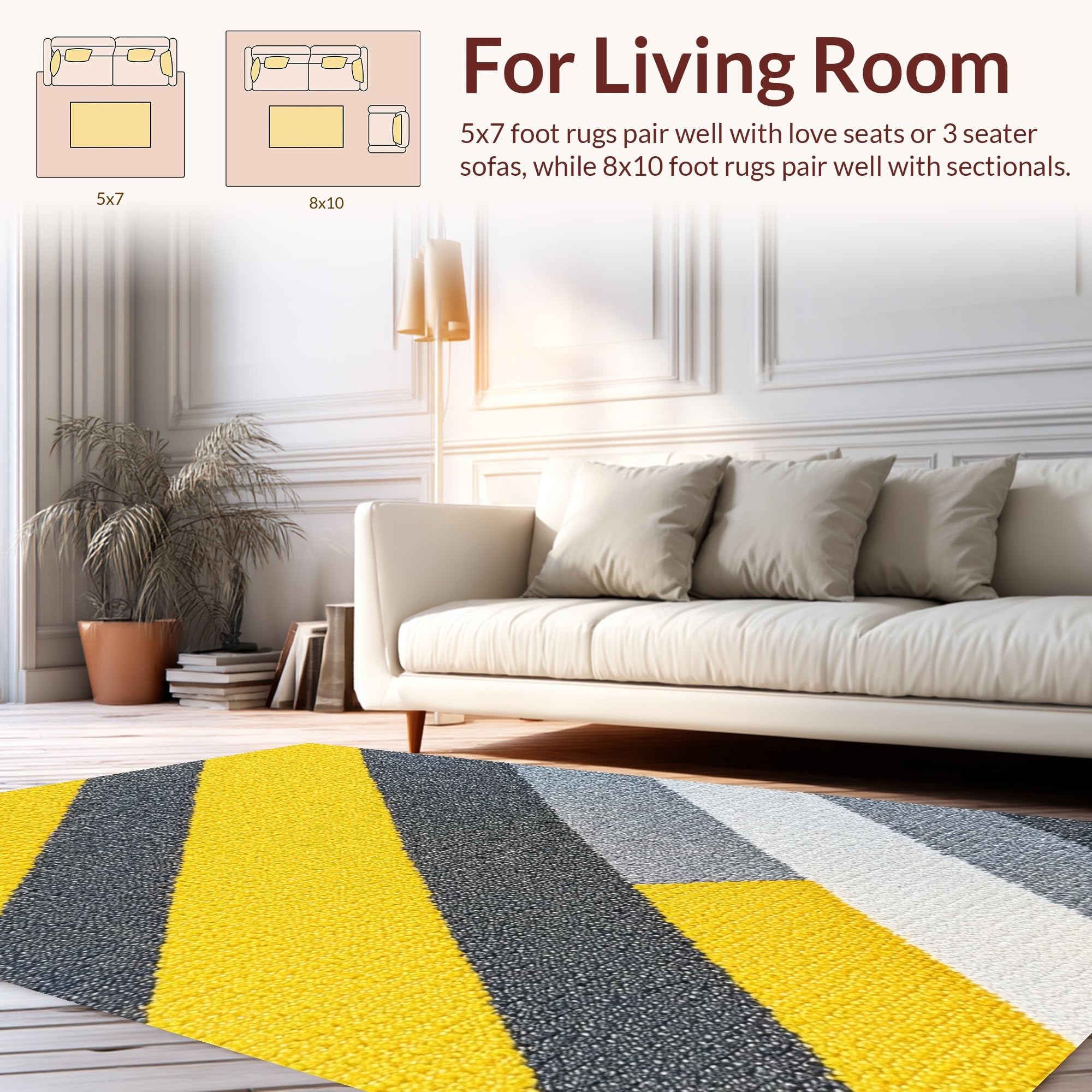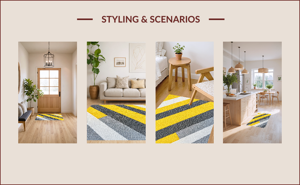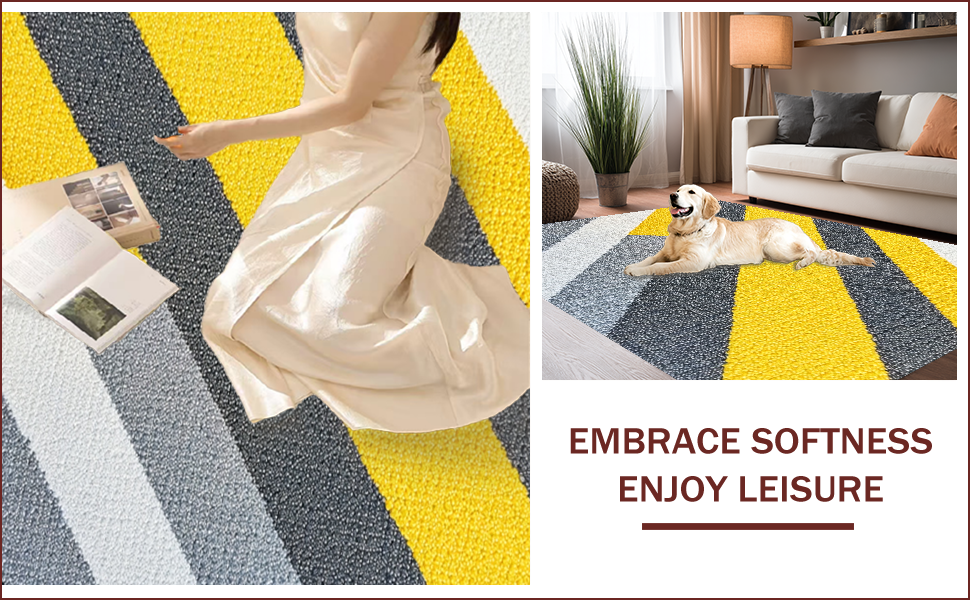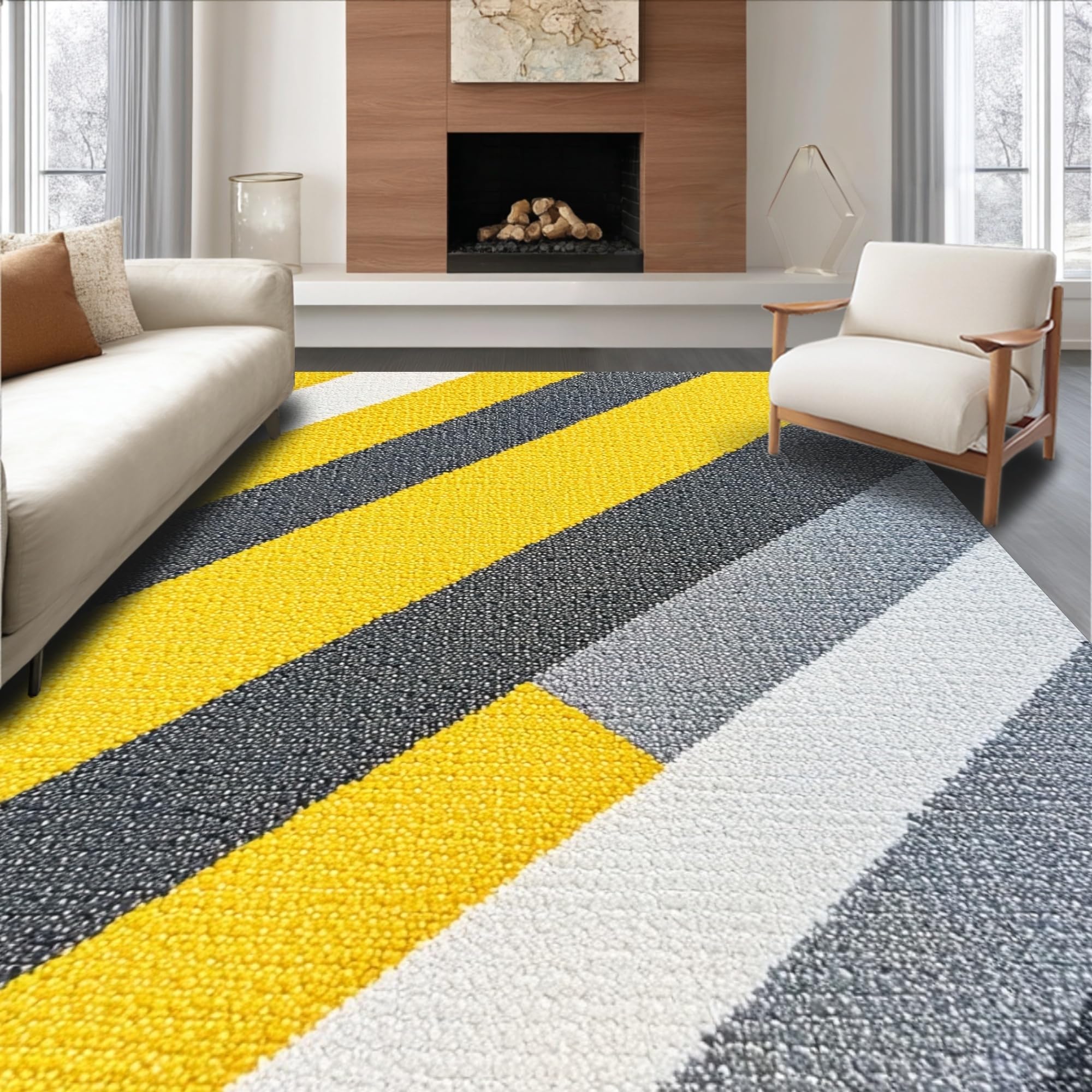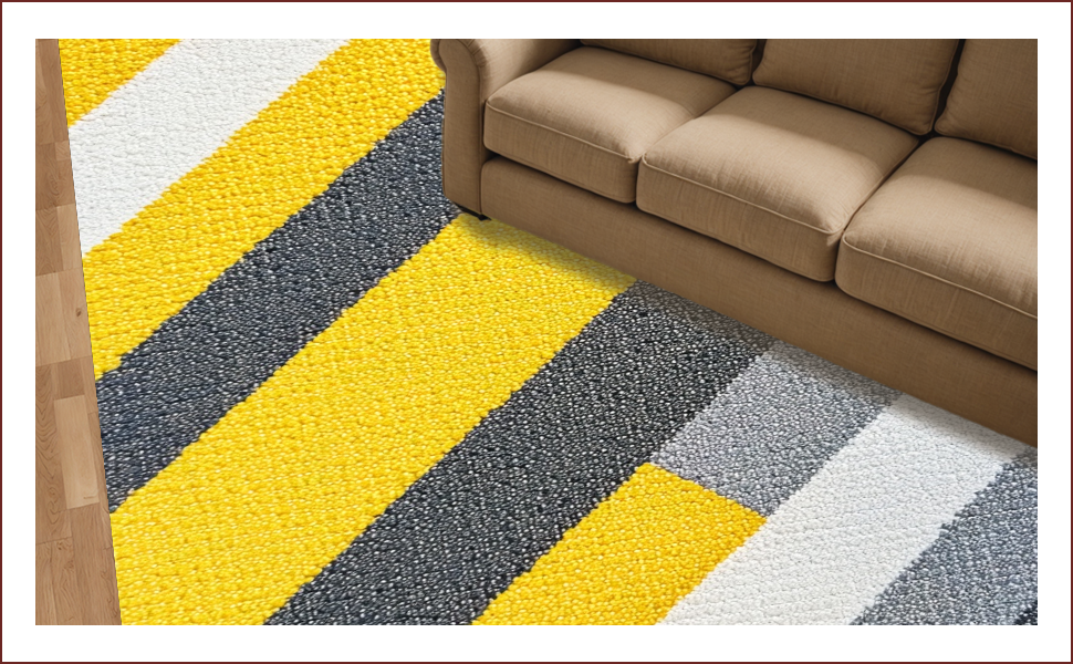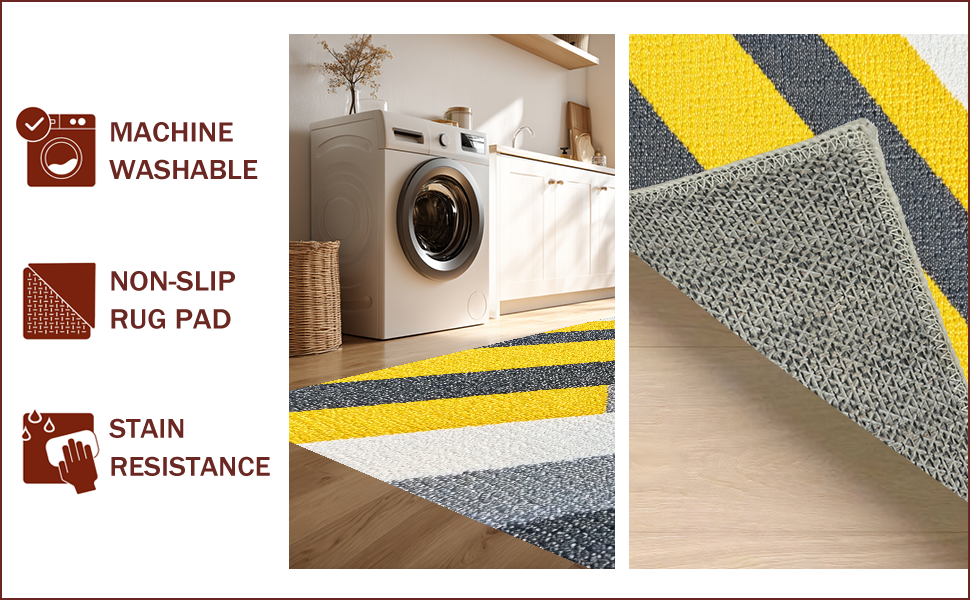 Ultra Soft Area Rug, Non Slip, Stain Resistant, Washable Area Rugs for Living Room, Bedroom, Modern Striped Yellow Grey Bathroom Quick Dry Rug(Yellow) Overview: