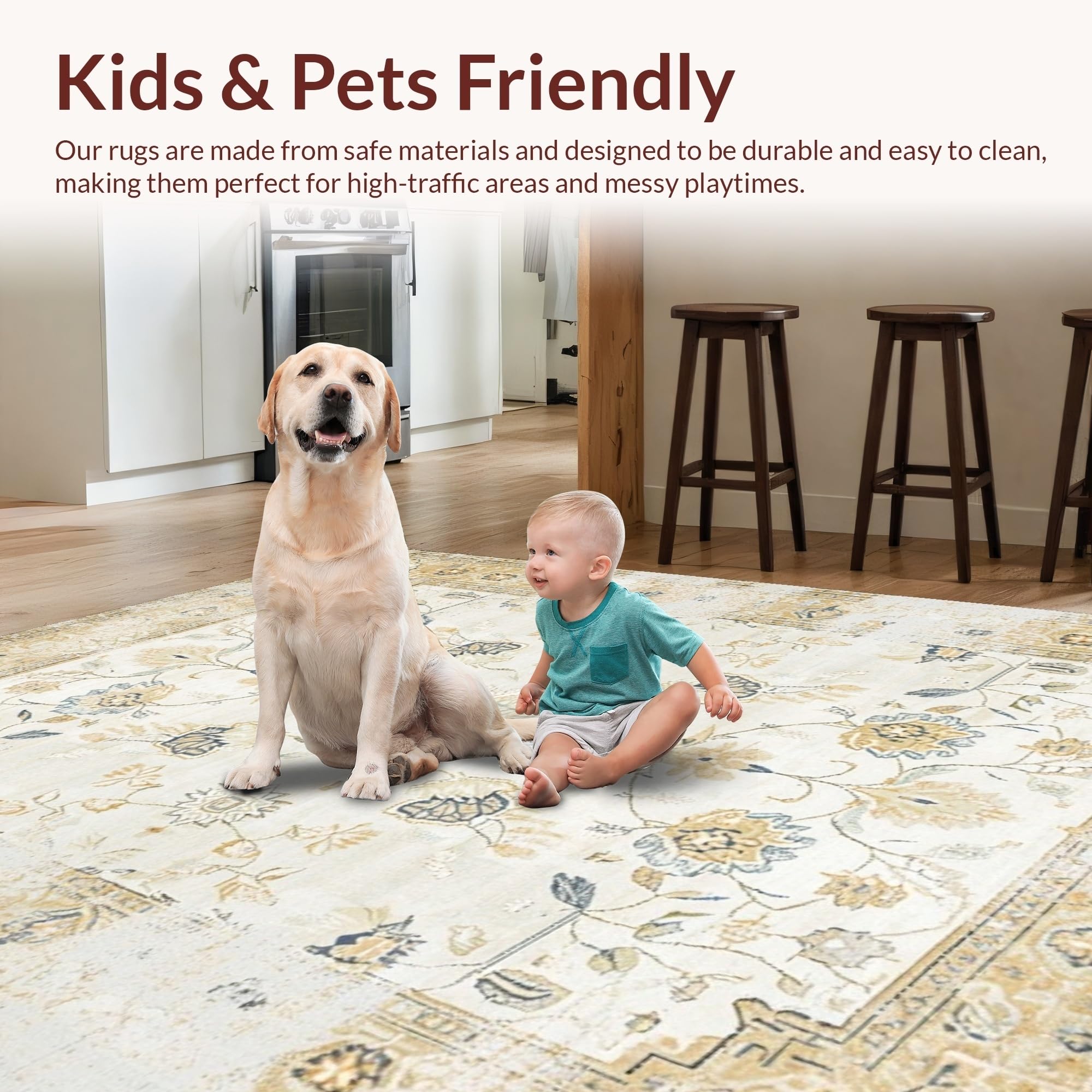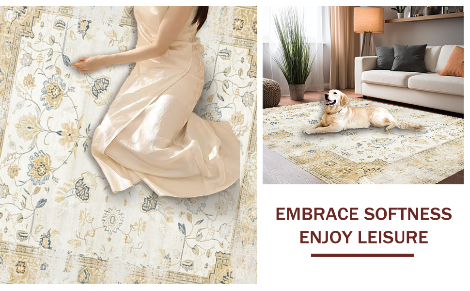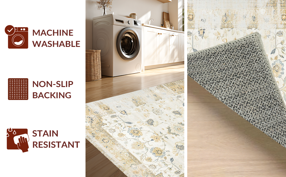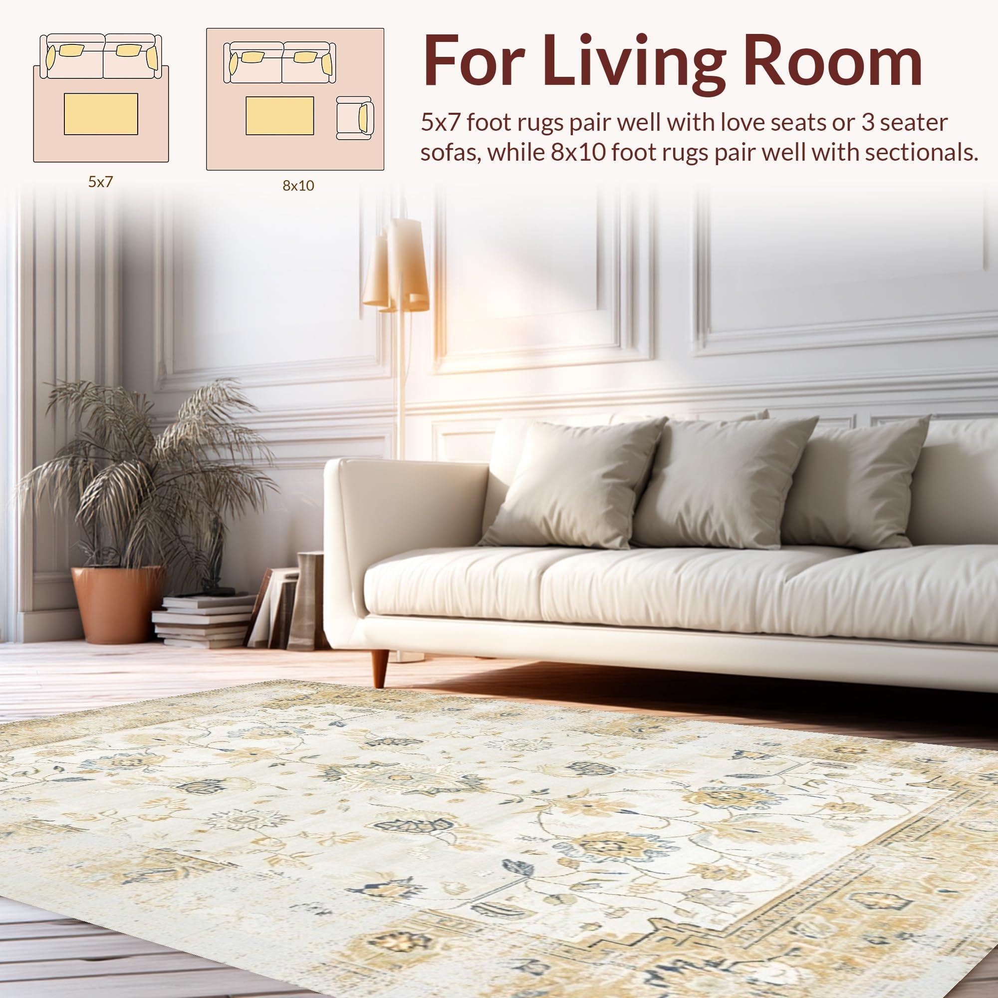Ultra Soft Area Rug, Non Slip, Stain Resistant, Washable Area Rugs for Living Room, Bedroom, Modern Subdued Floral Arrangement(Beige) Overview: