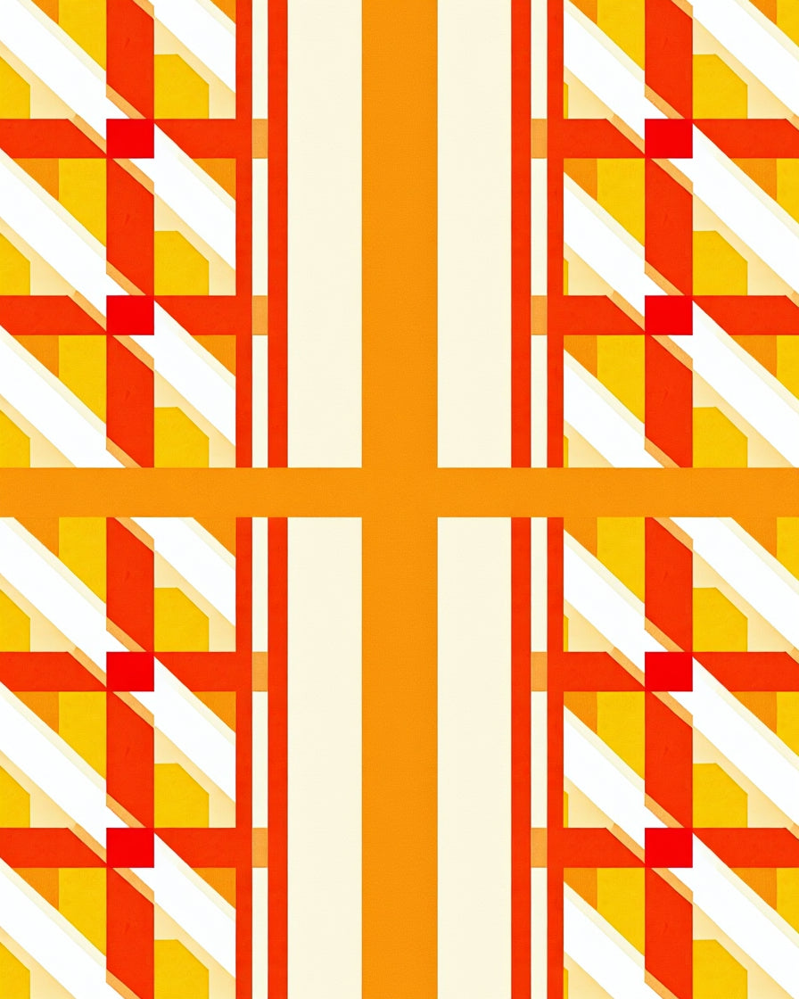 Modern Sunset Tartan Patterned Interlocking Grid Accent Art(Orange)