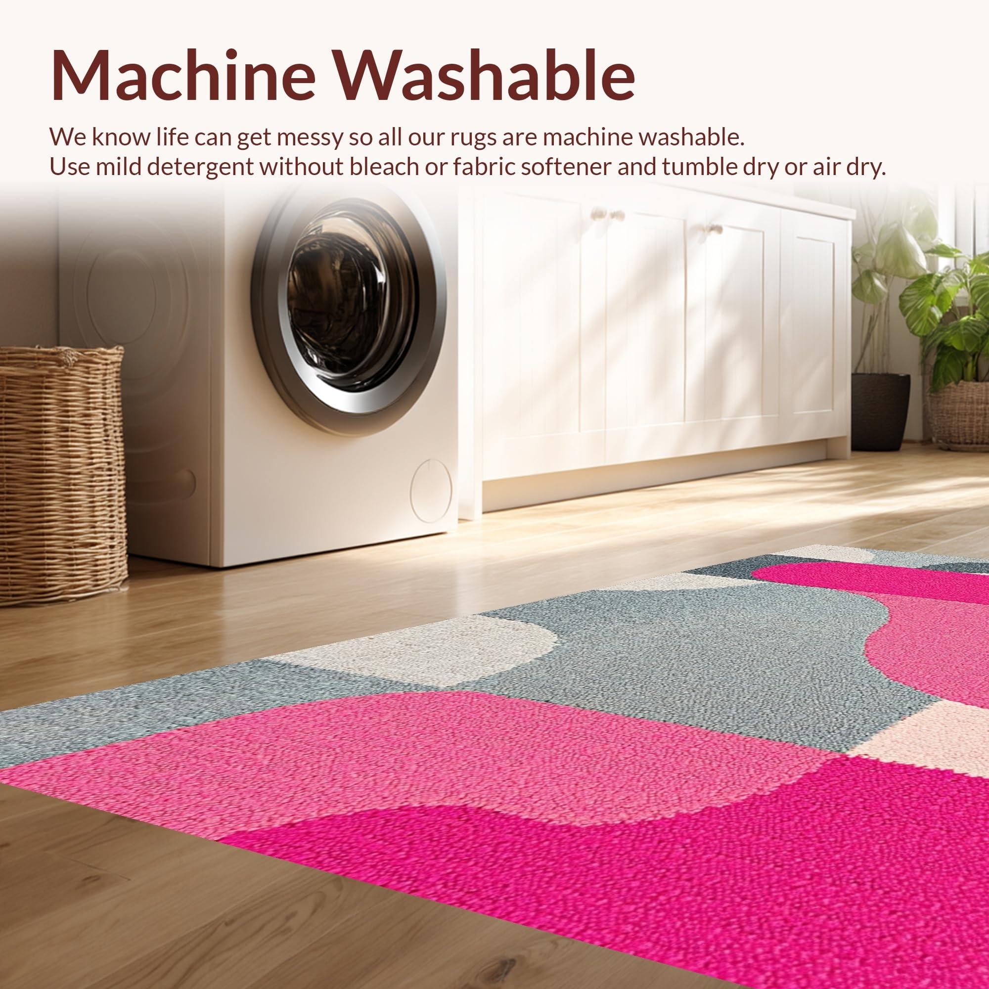 - Machine Washable: Our rugs can be easily thrown in the wash machine.