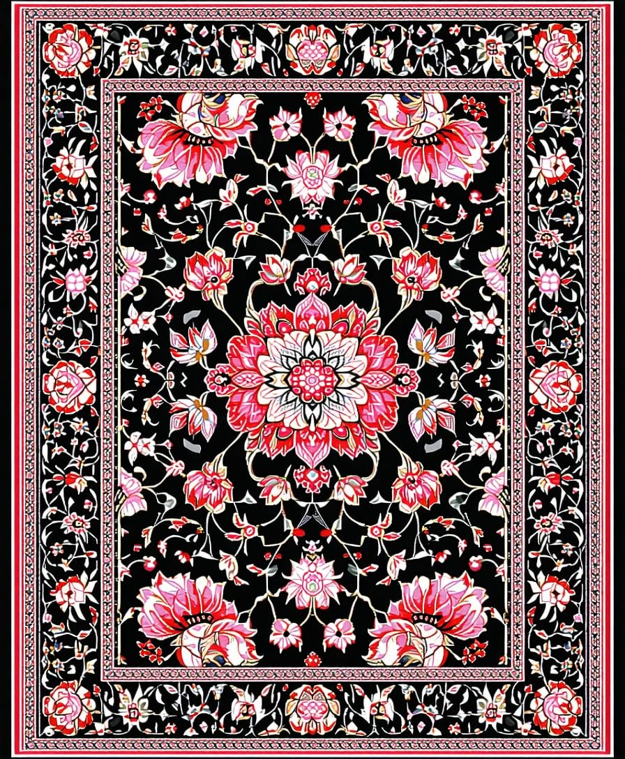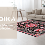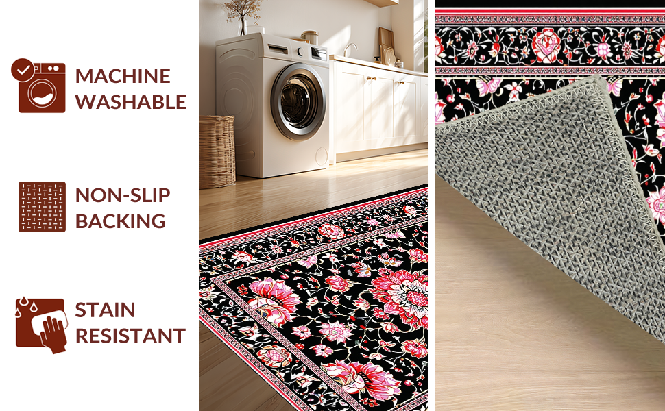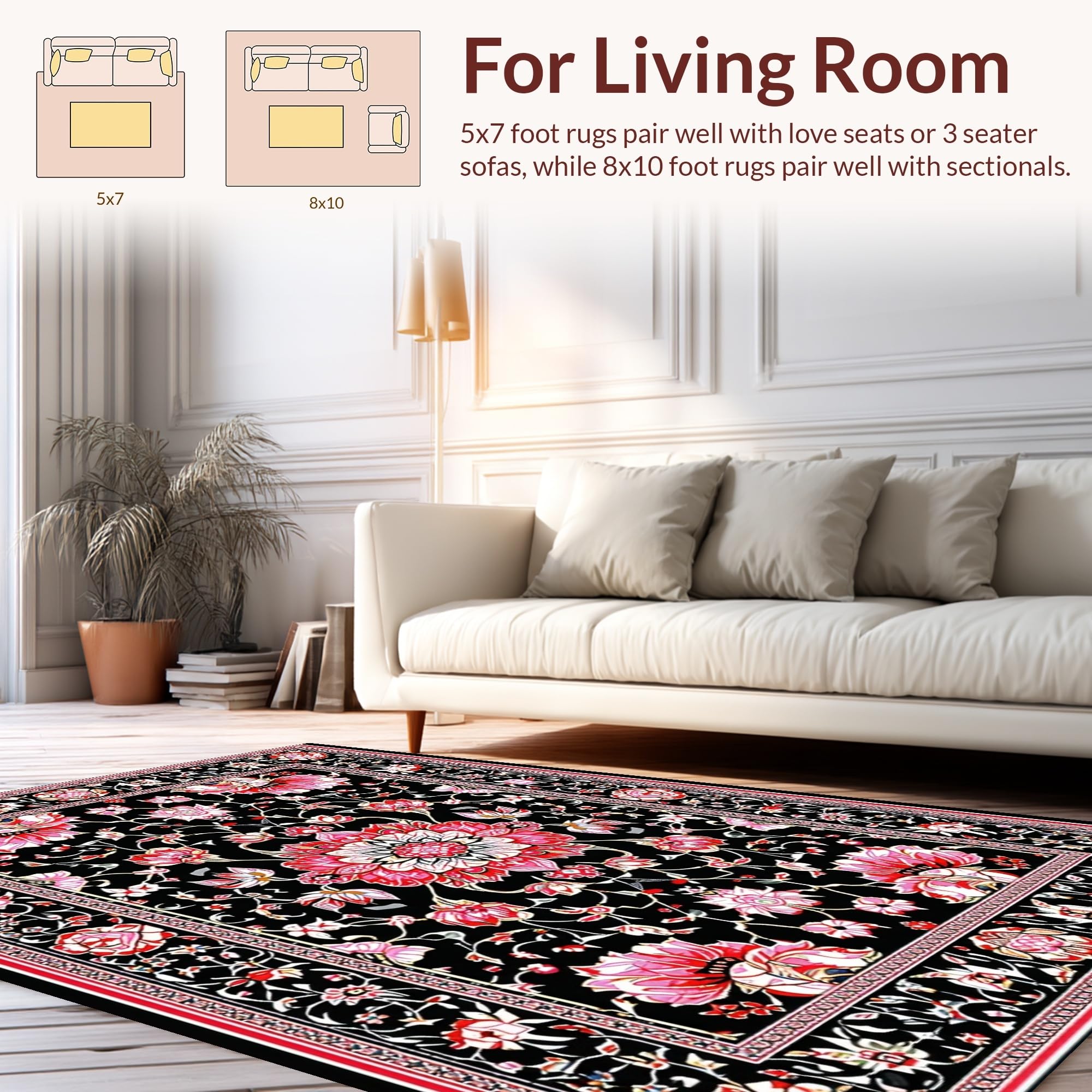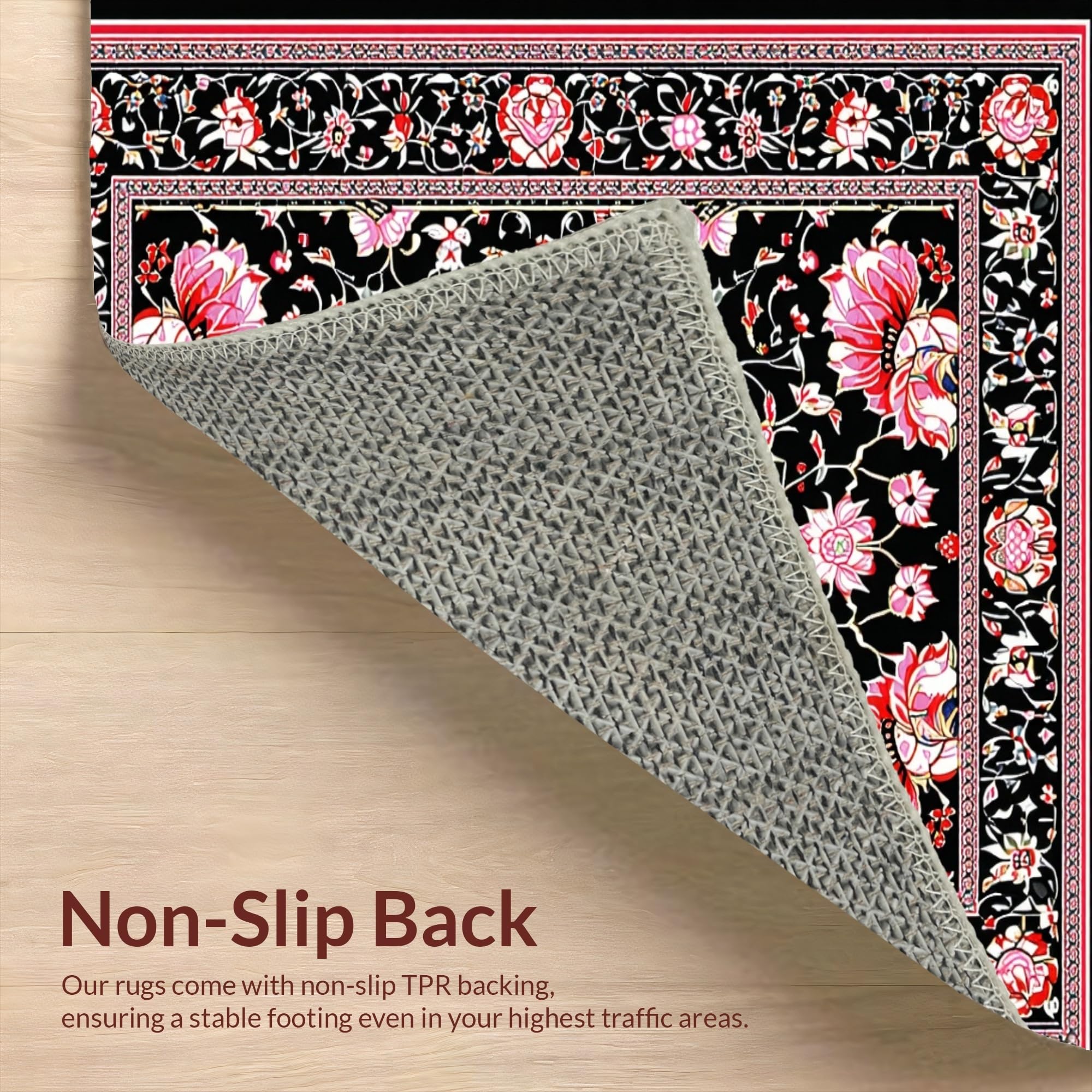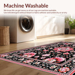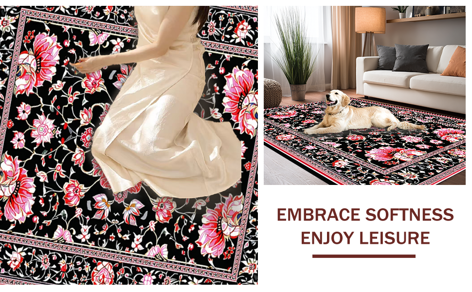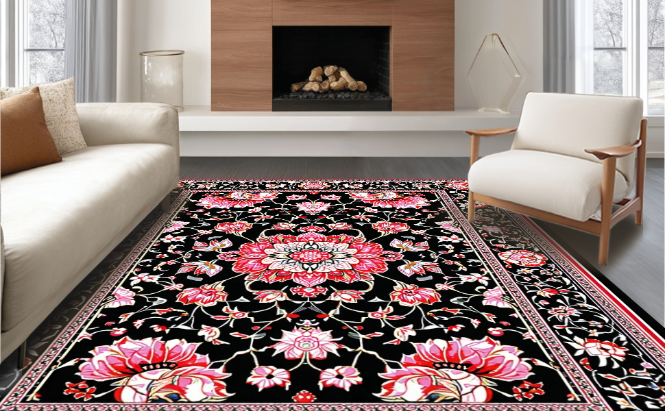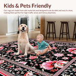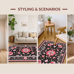 Ultra Soft Area Rug, Non Slip, Stain Resistant, Washable Area Rugs for Living Room, Bedroom, Modern Tiled Floral Aesthetic(Black) Overview: