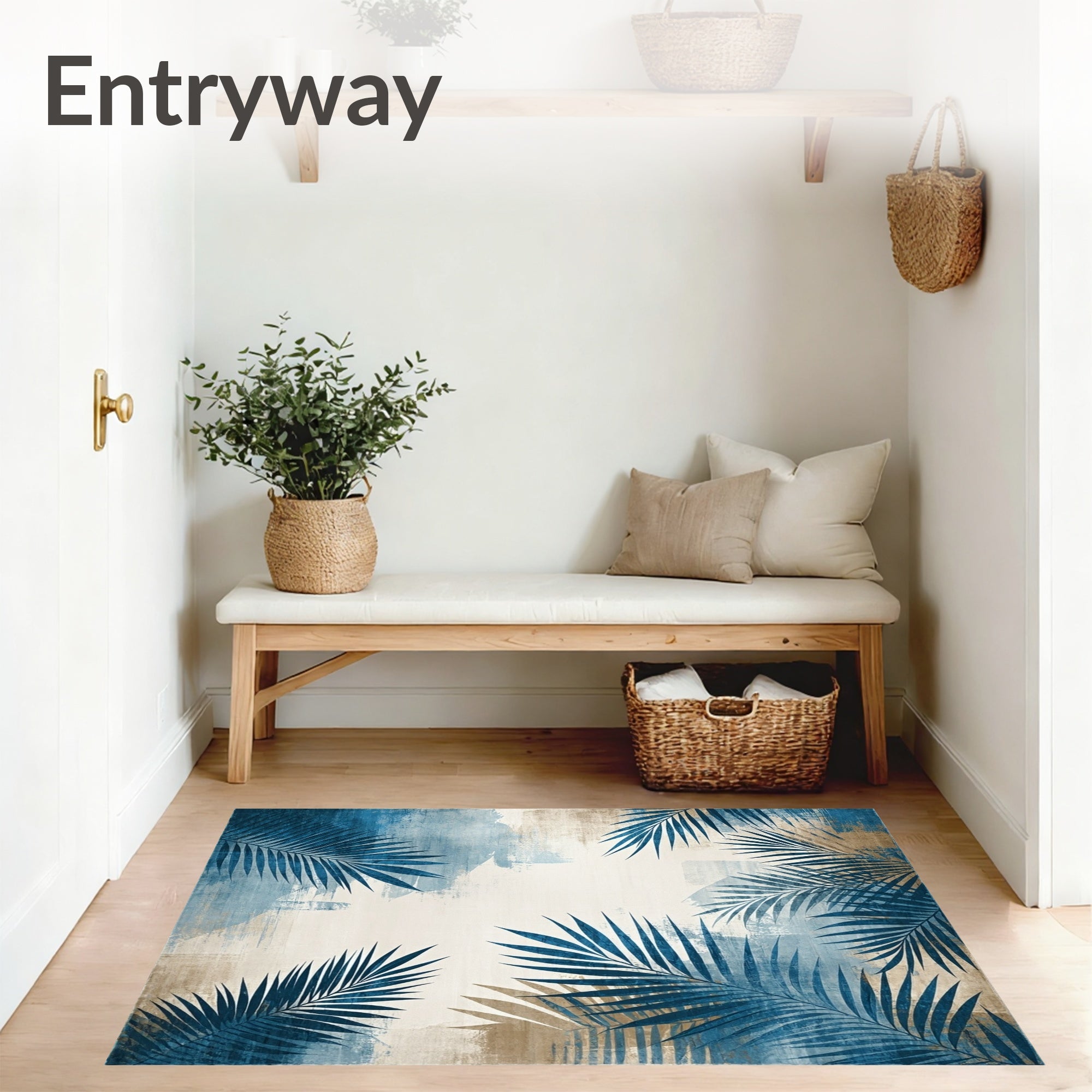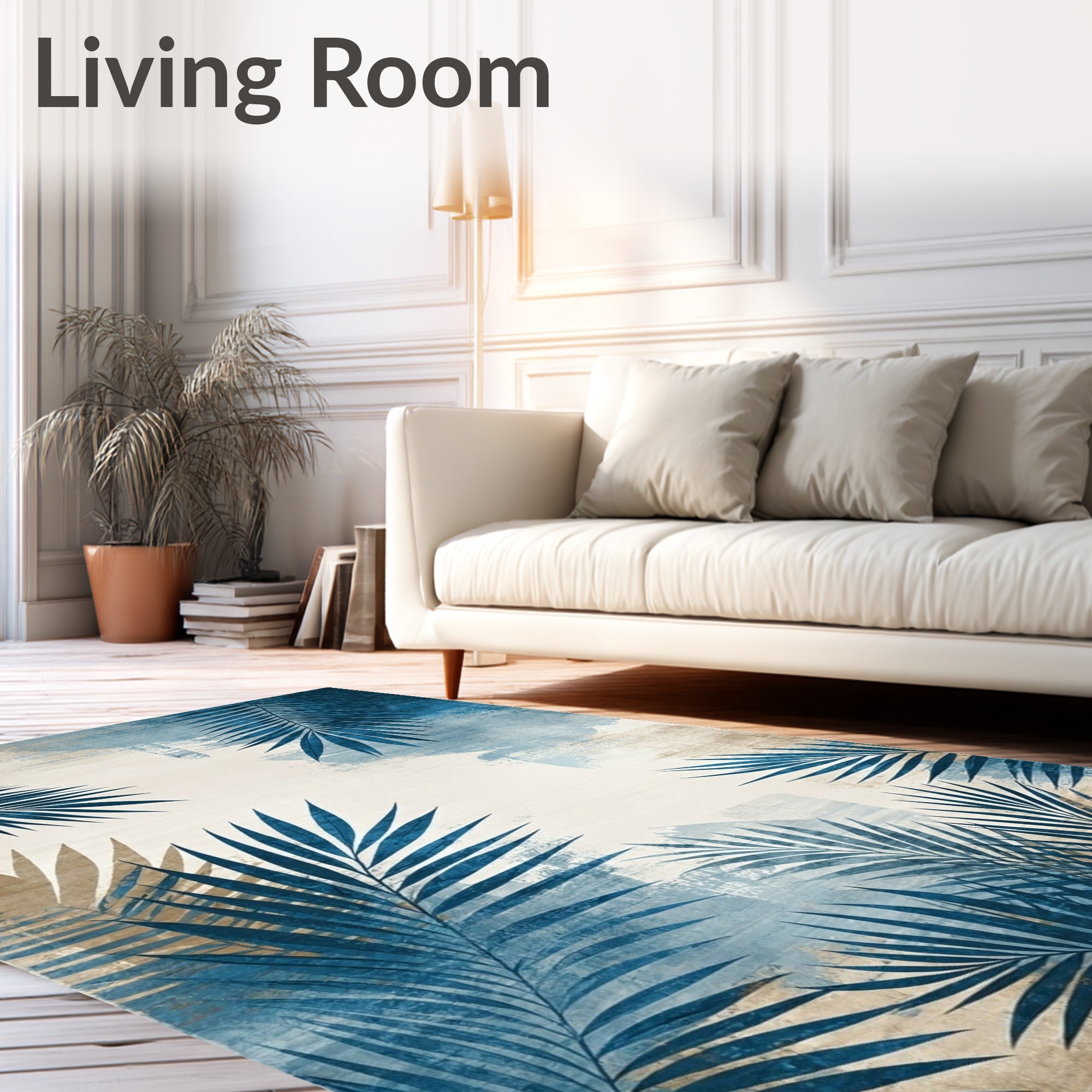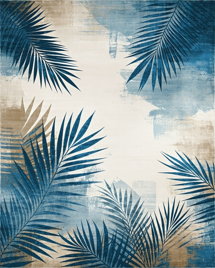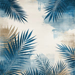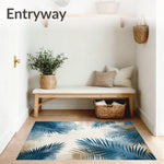 Flatwoven High Traffic Area Rug, Modern Tropical Leaf in Grey Beige Tones, Non Slip, Stain Resistant, Washable Area Rugs for Living Room, Bedroom (Blue) Overview: